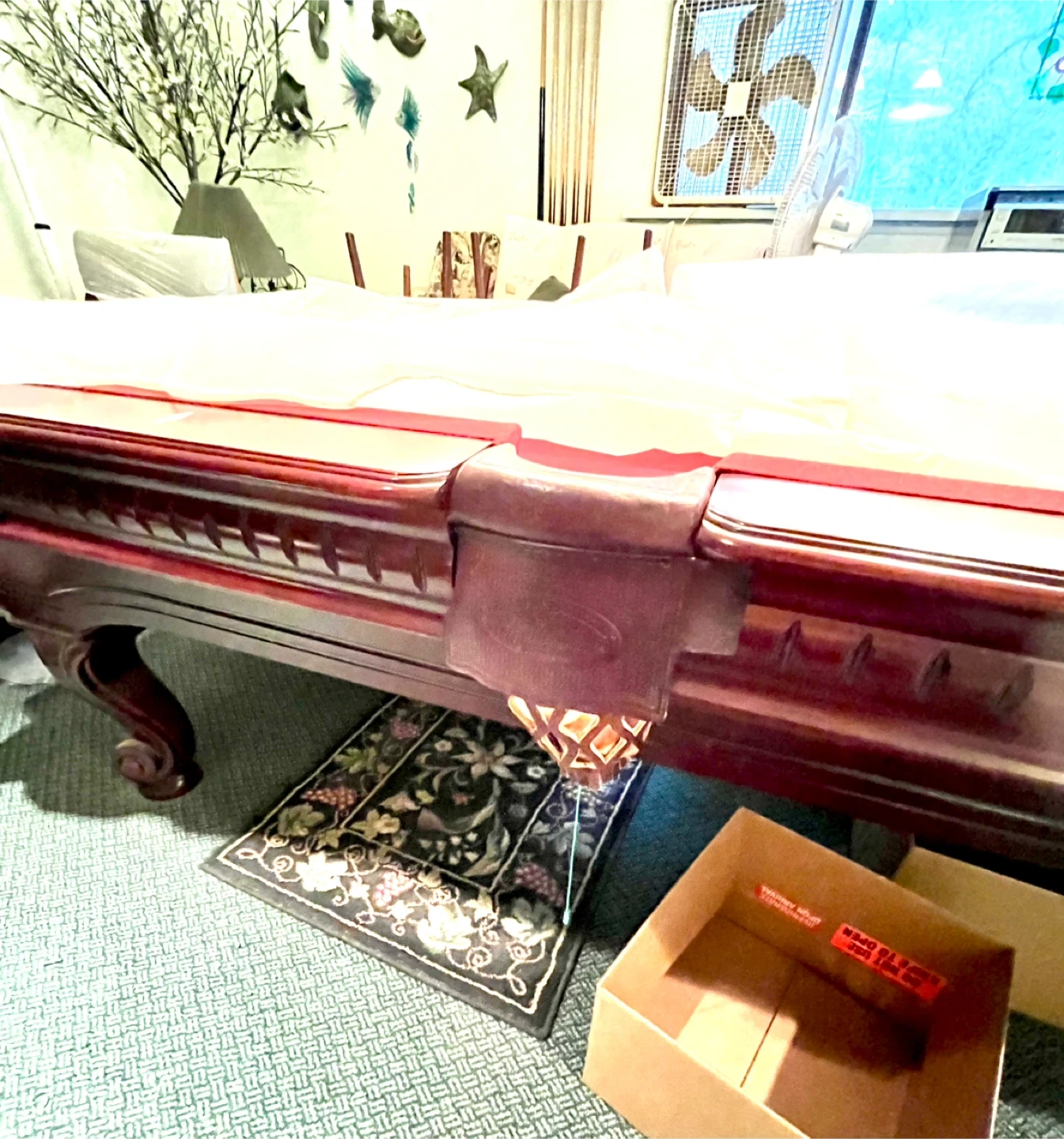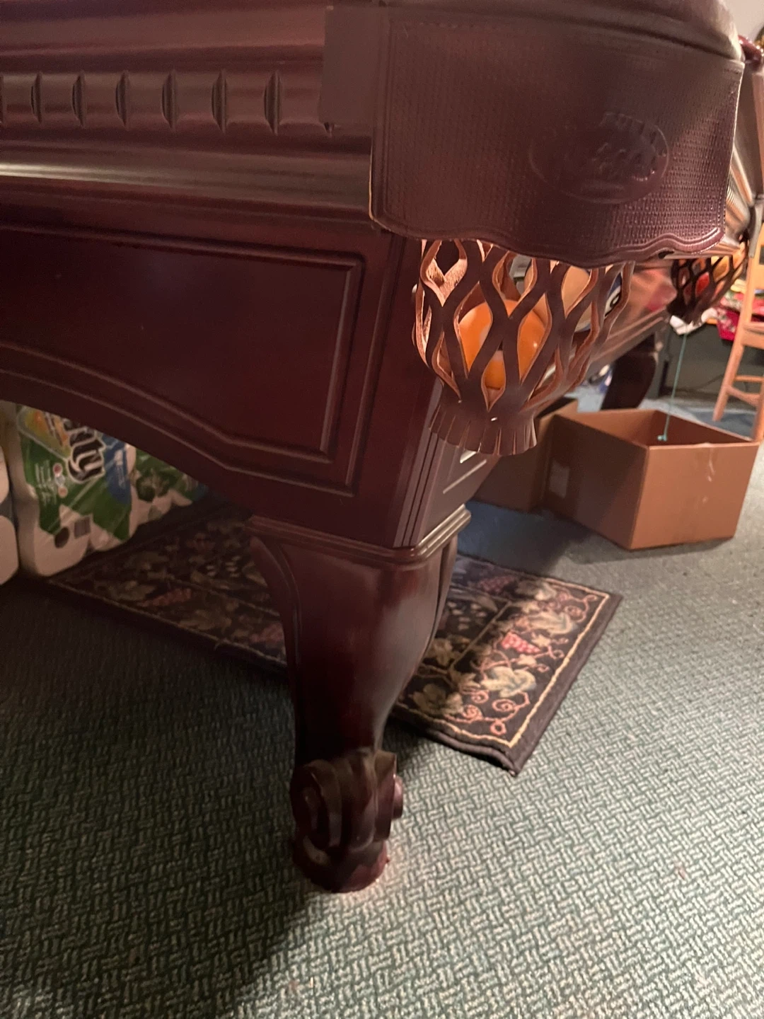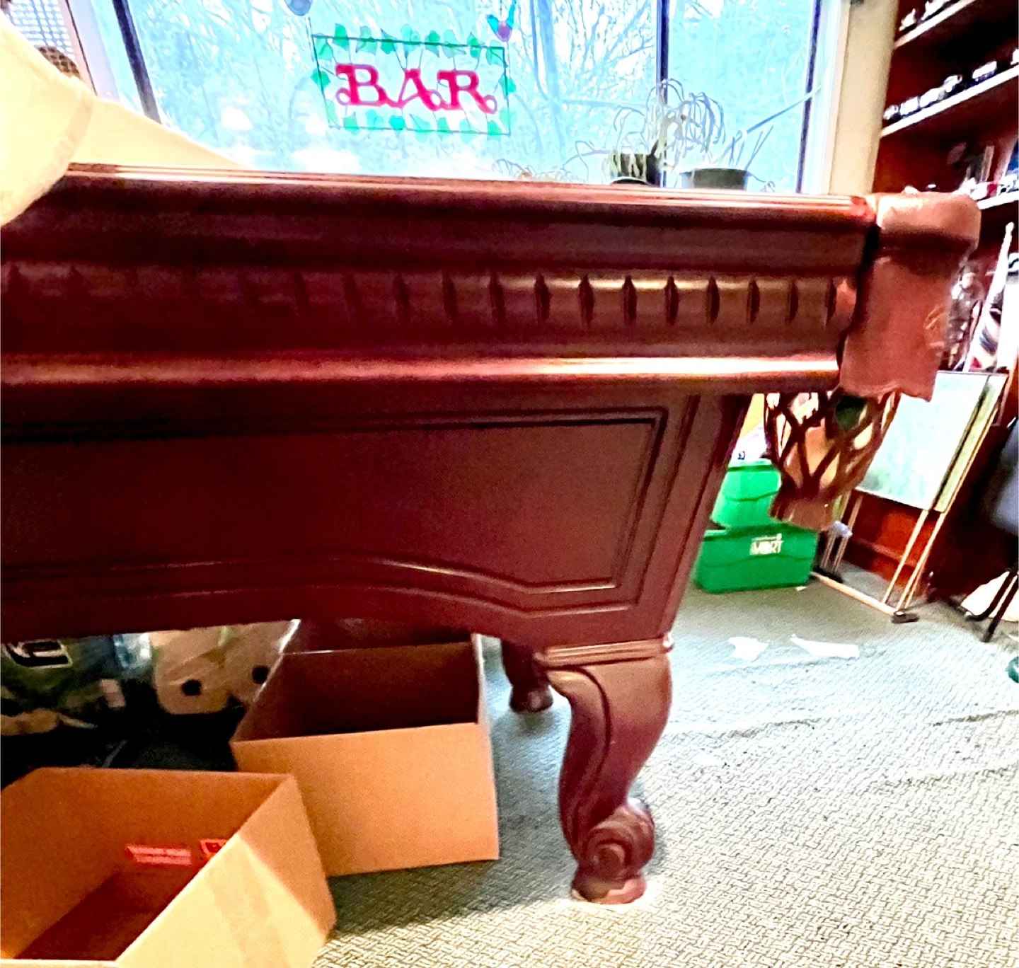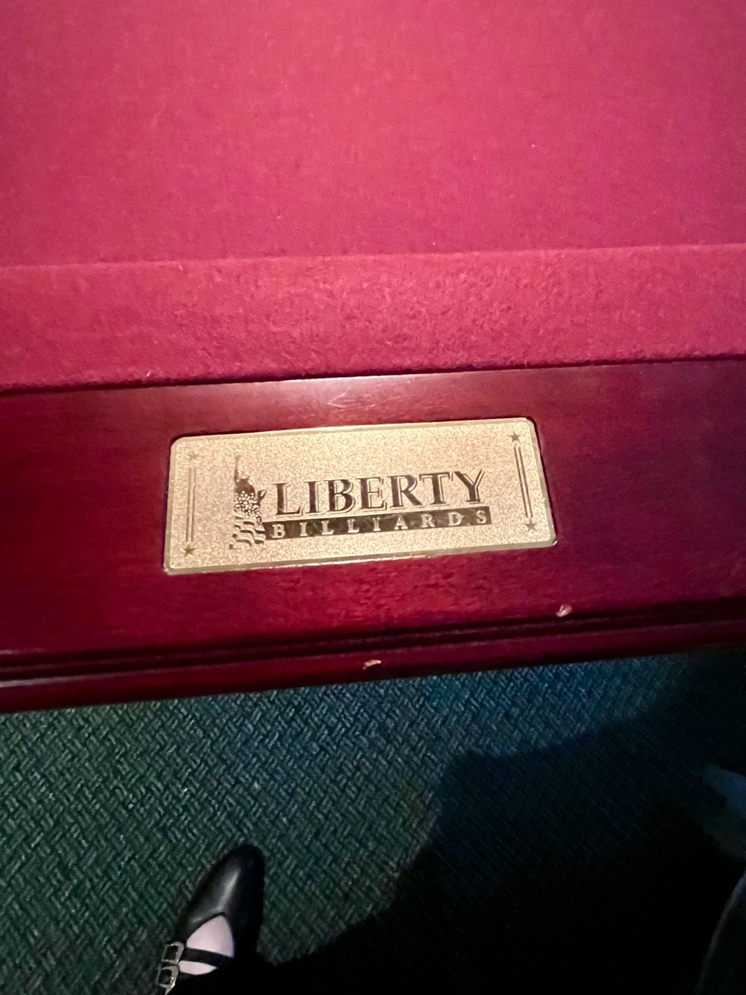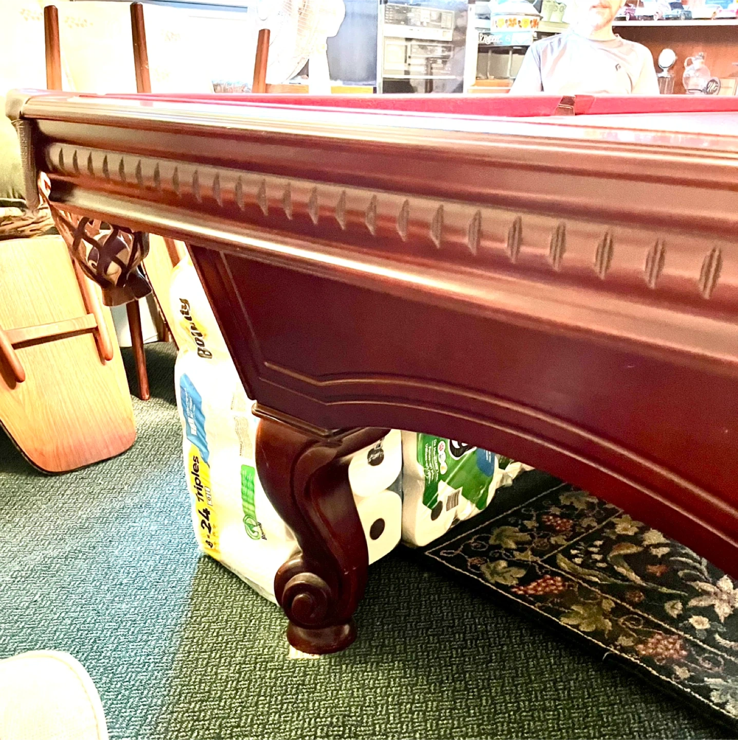 Selling a beautifully crafted Liberty Billiards pool table. Mahogany or Cherry wood I believe. It's in excellent condition and ready for a new home! The felt is red. Perfect for a games room or rec room.