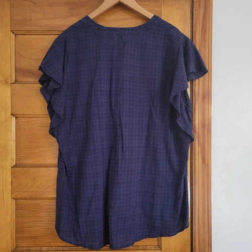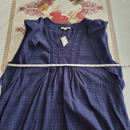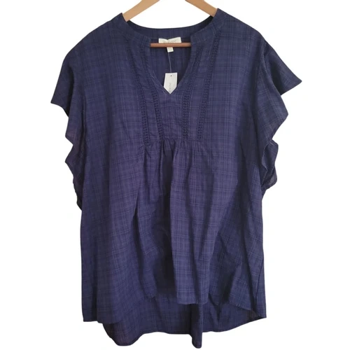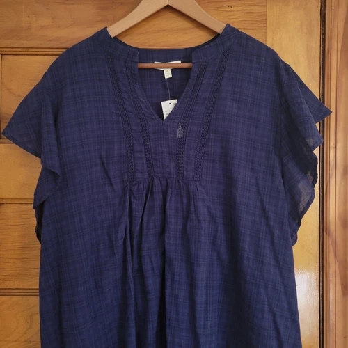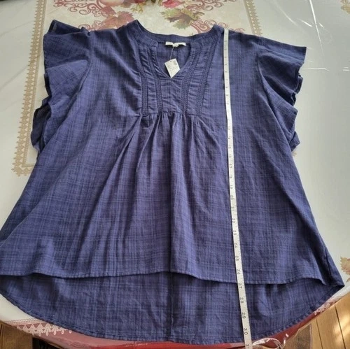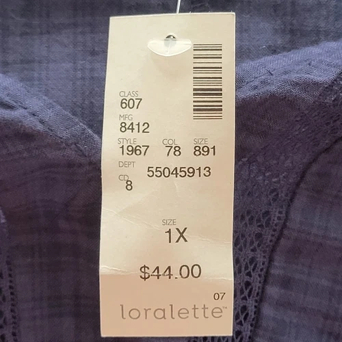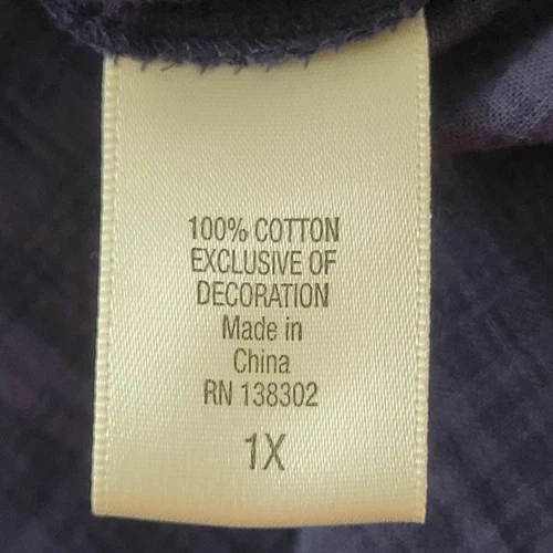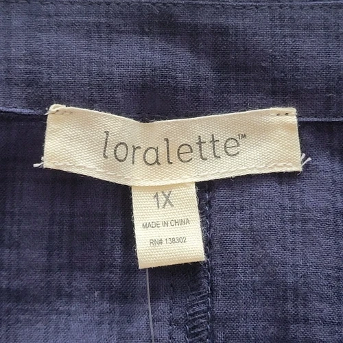 Loralette Tunic Blouse Womens 1X Navy Blue Cotton