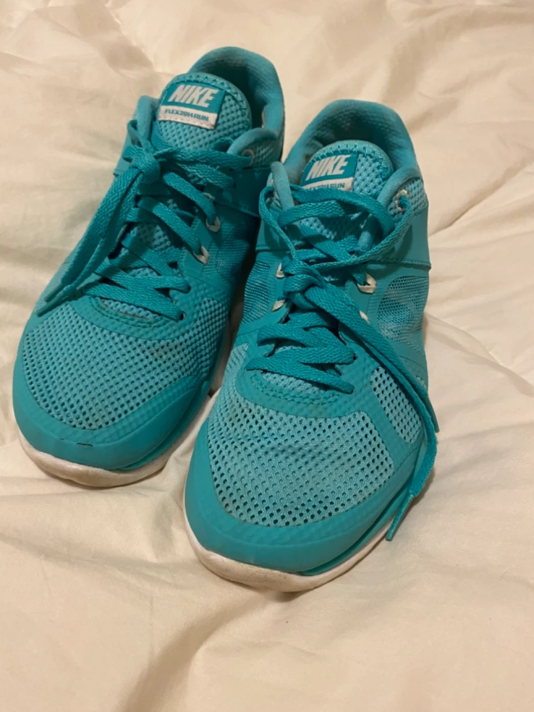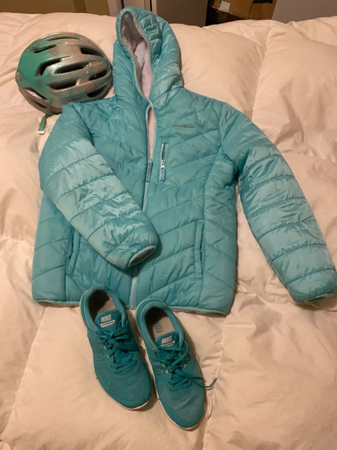 Eddie Bauer jacket in youth size XL (14/16). light blue colour new condition, with matching Nike Flex size 6.5 sneakers.