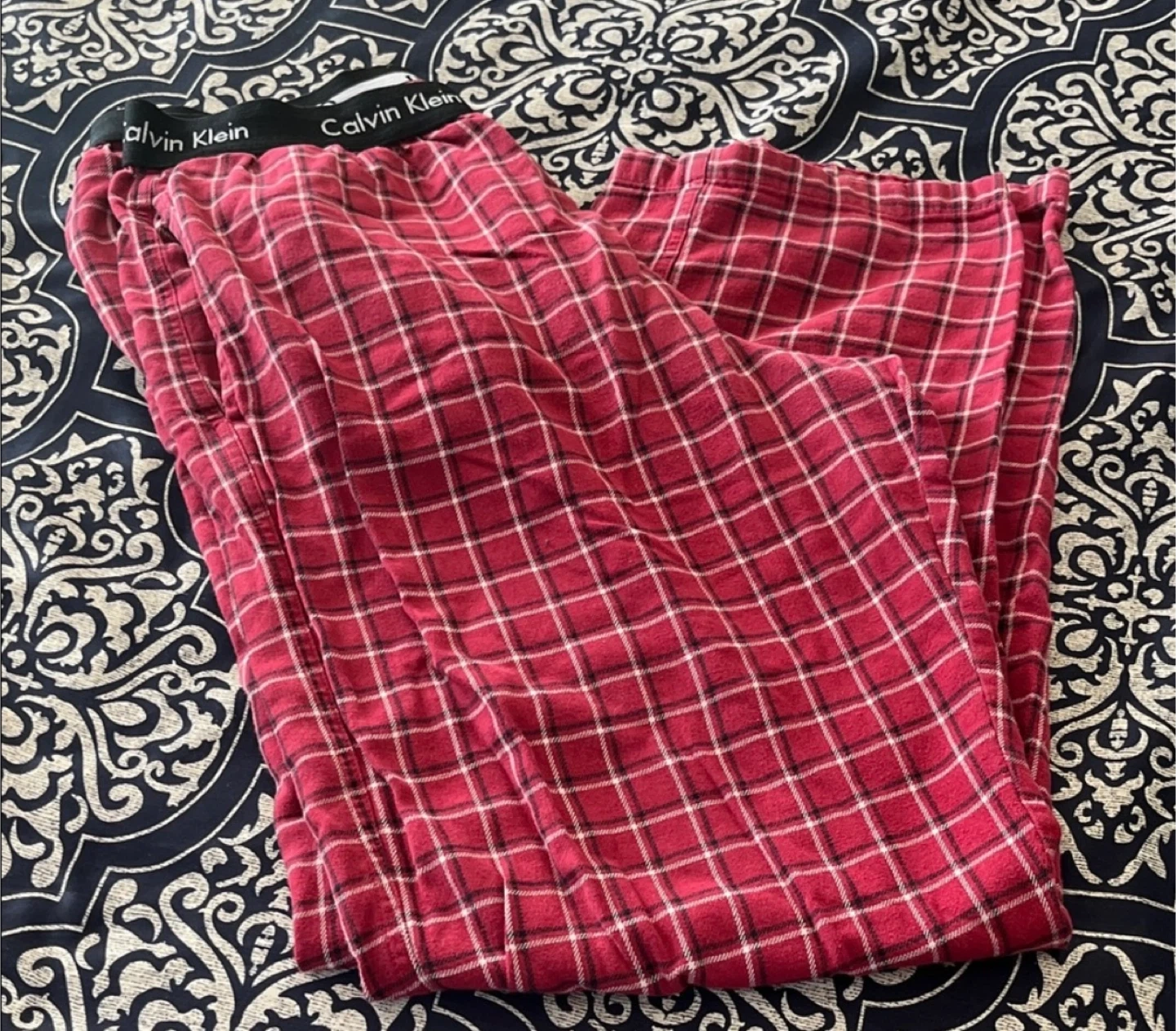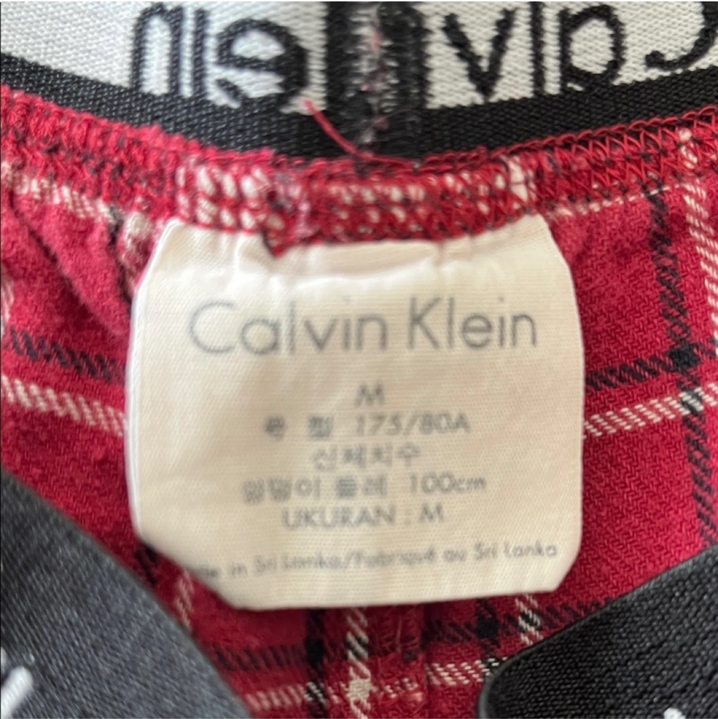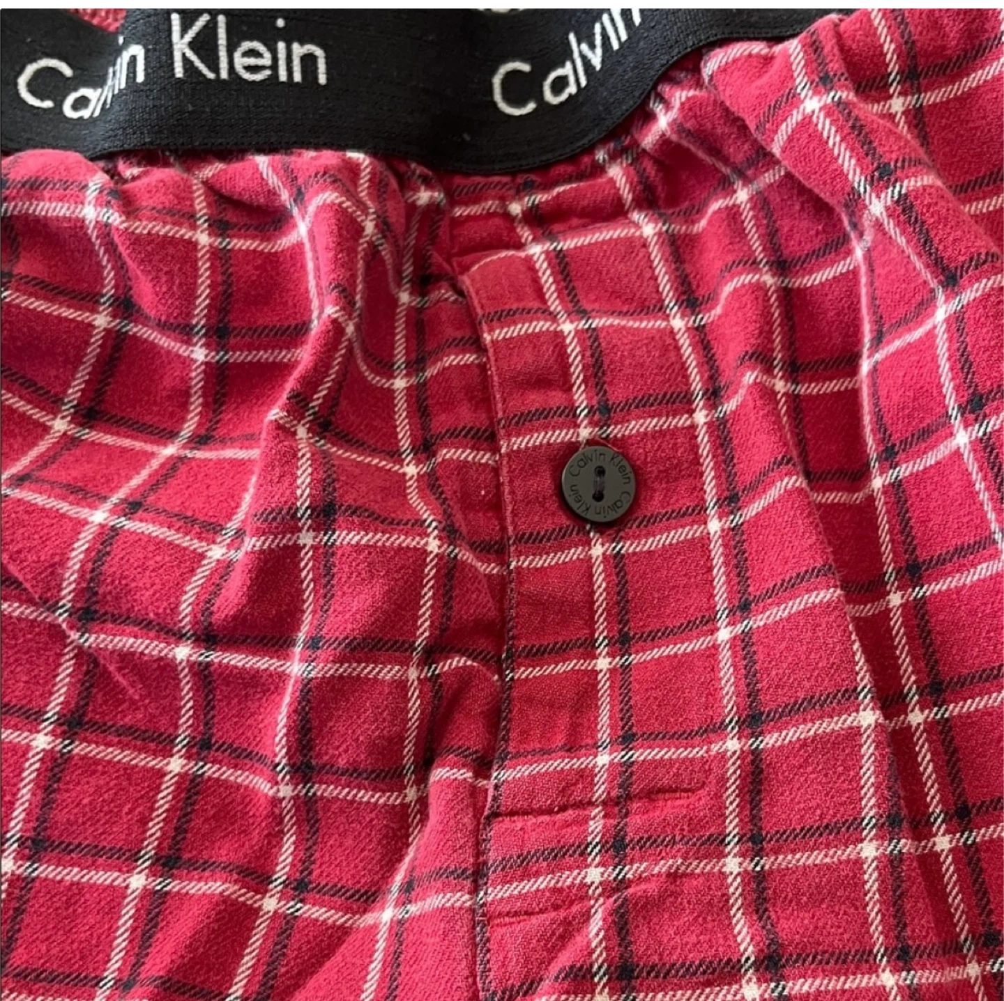 Cozy up with these Calvin Klein flannel pajama pants! They feature a classic red plaid pattern and a comfortable elastic waistband with the Calvin Klein logo. These are a size medium and are perfect for lounging around the house or a good night's sleep