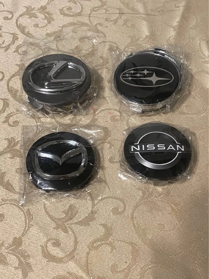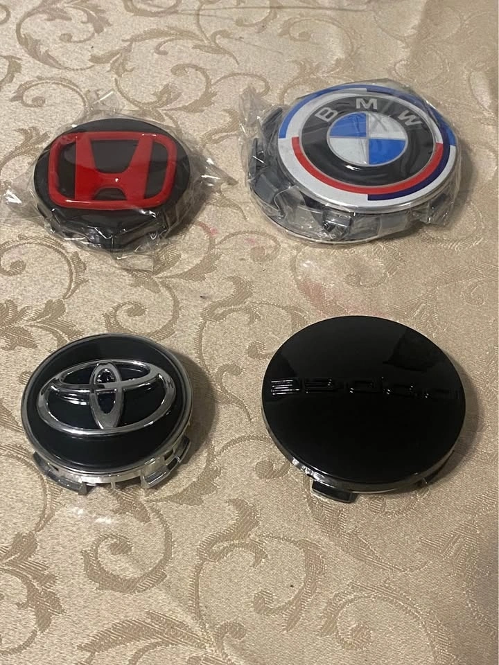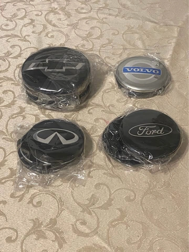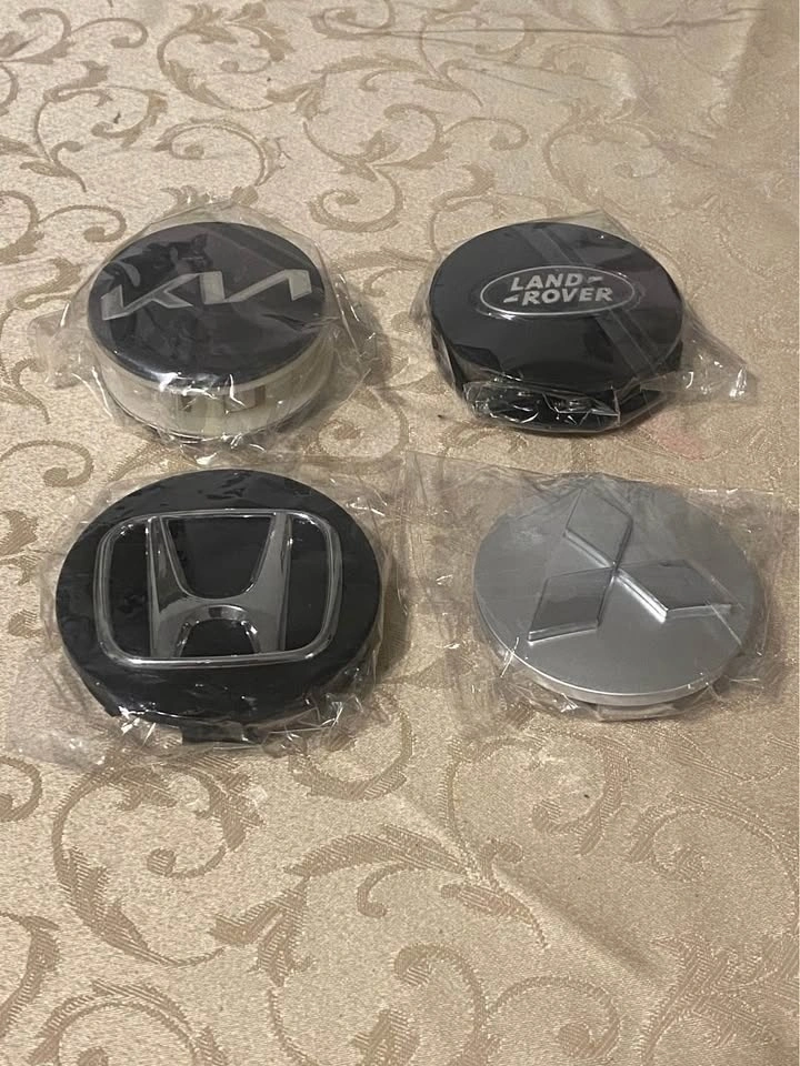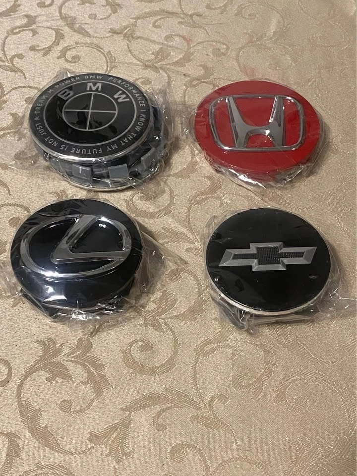 Brand new. 4 center caps available each item. Different size available. Different colour available. For original rims and aftermarket. Please send your car full information. I will send you what I have will fit your rims. Pick up anytime.