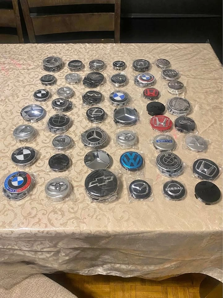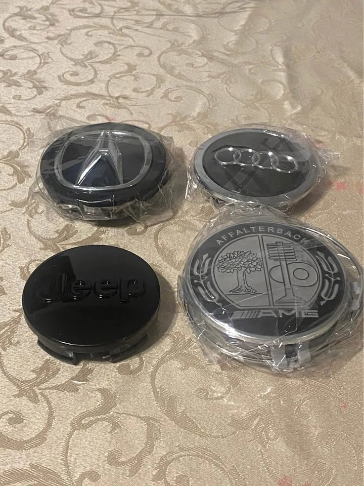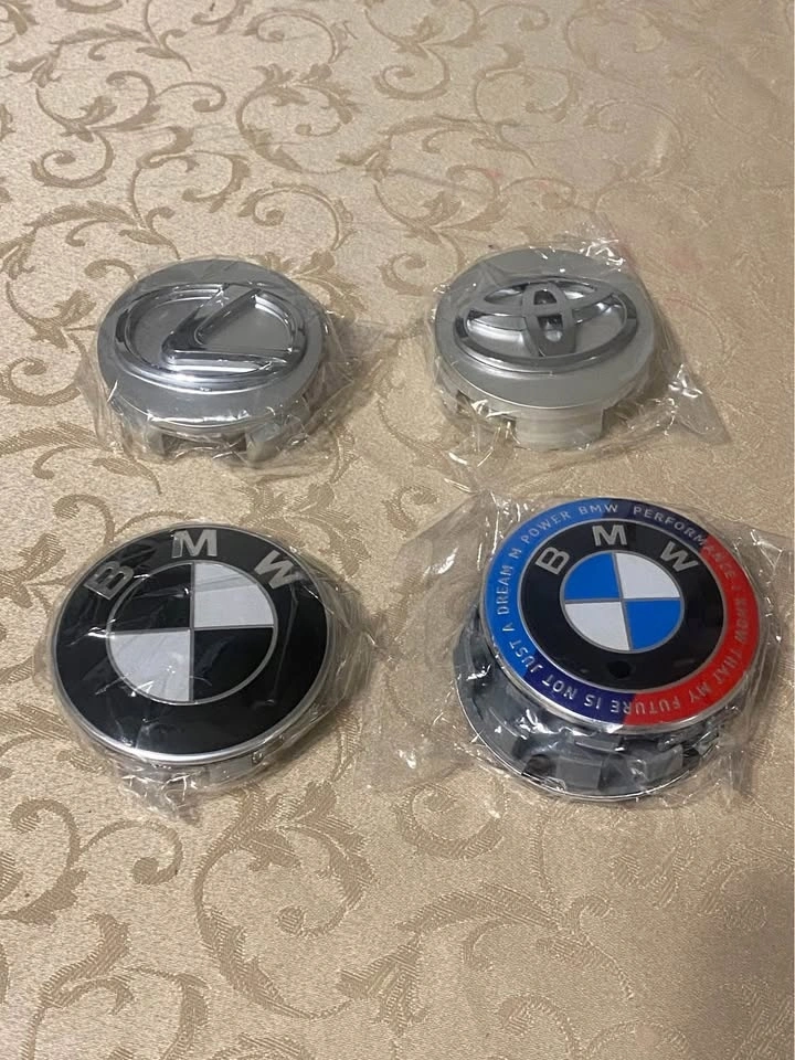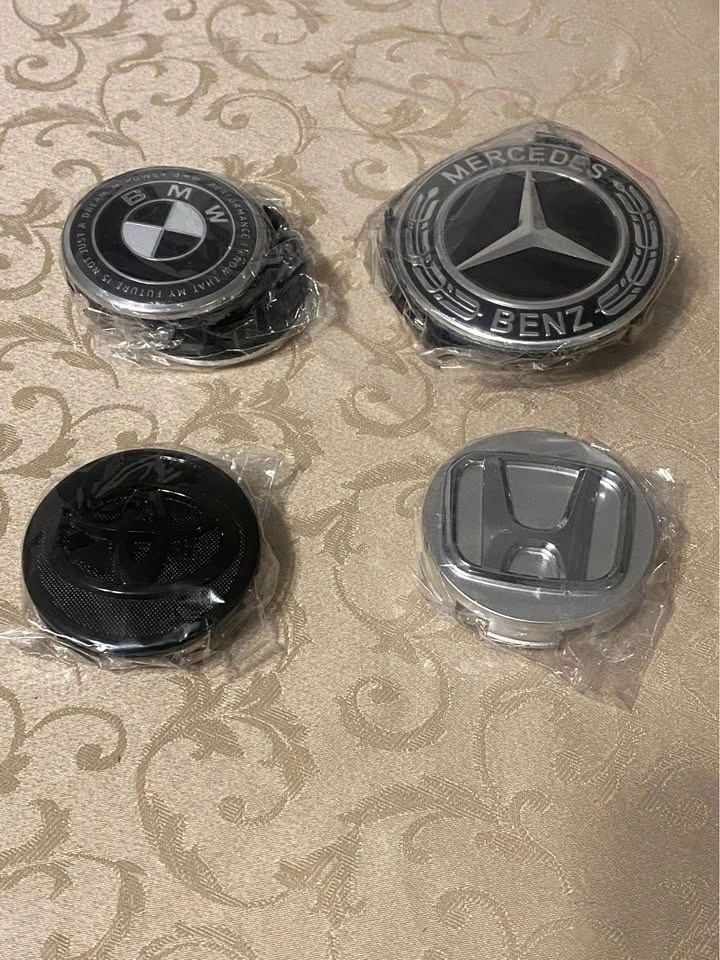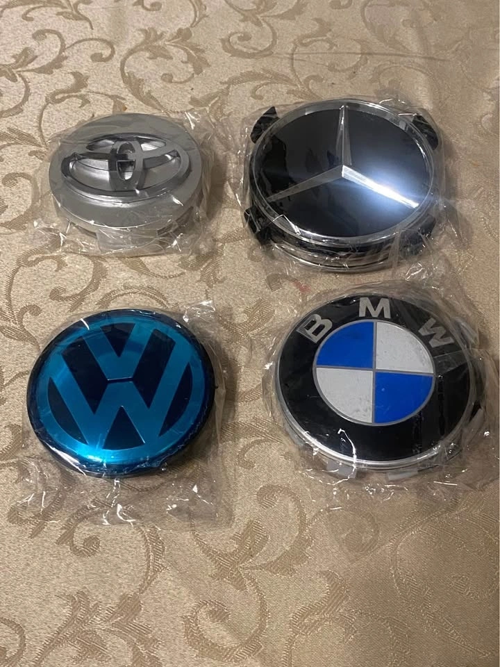 Brand new. 4 center caps available each item. Different size available. Different colour available. For original rims and aftermarket. Please send your car full information. I will send you what I have will fit your rims. Pick up anytime.