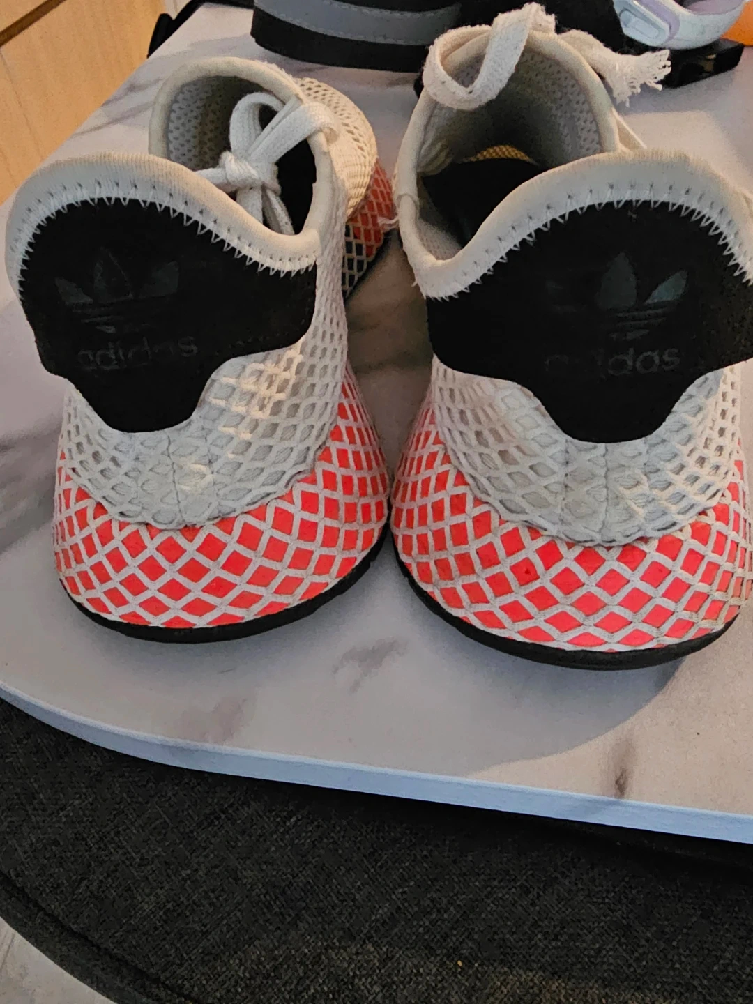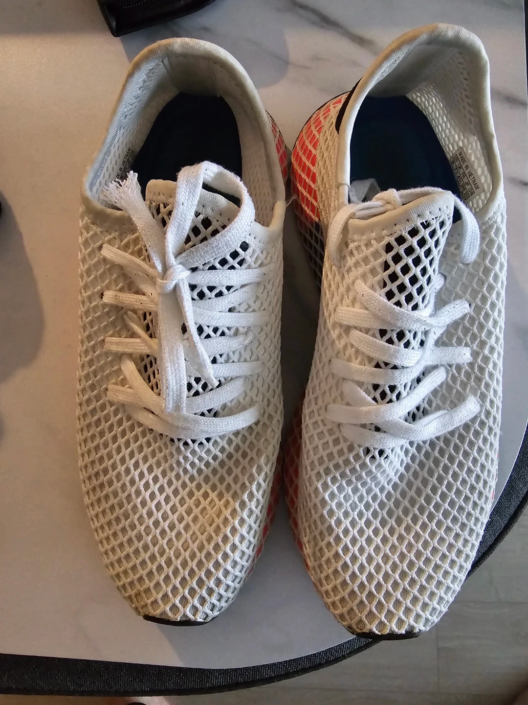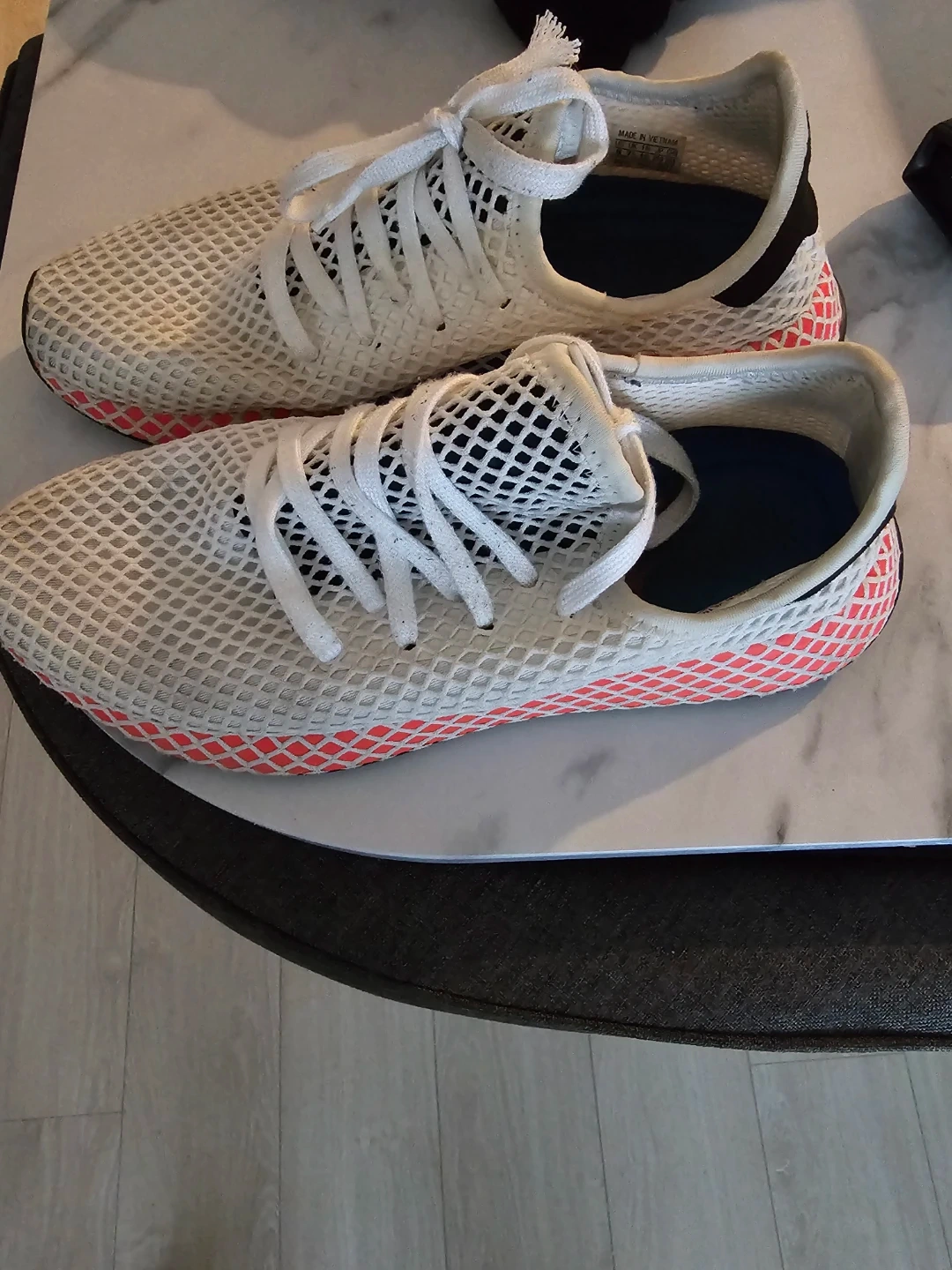 Selling a pair of Adidas Deerupt Runner shoes. They feature a distinctive web-covered design and a lightweight feel. Great for casual wear! Gently used