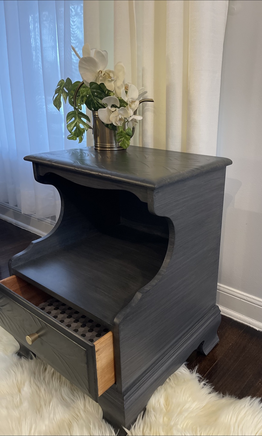 Beautiful nightstand redone in Modern Gray - Brushed finish.