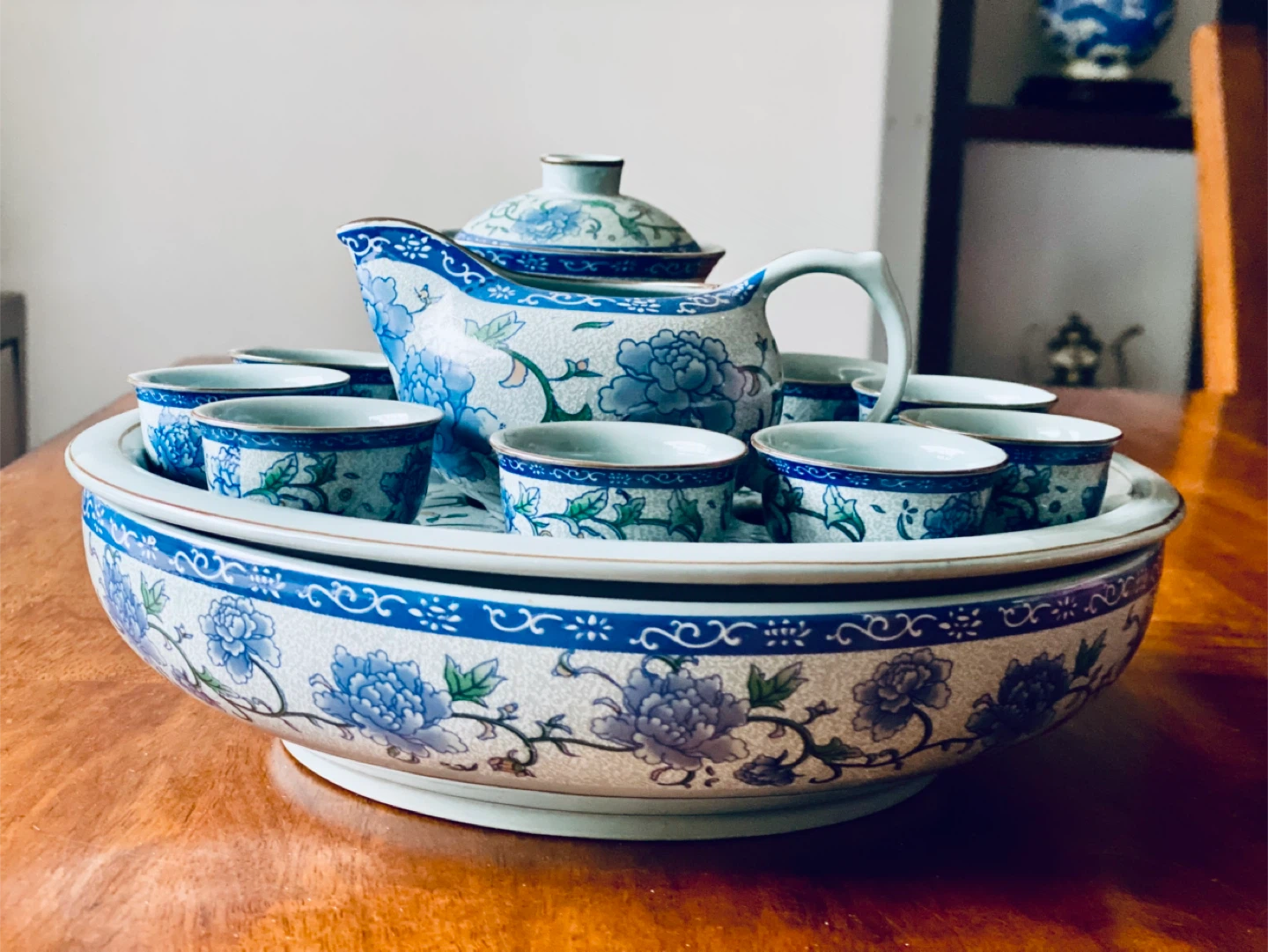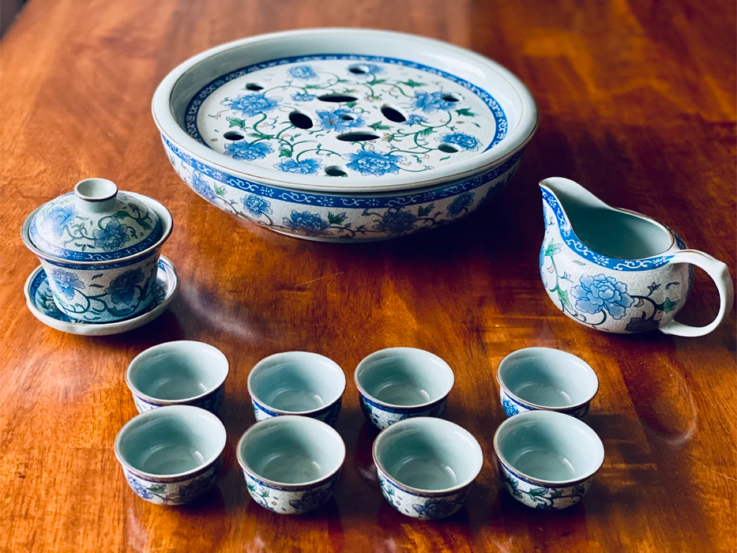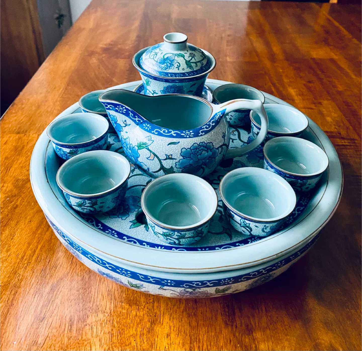 Beautiful complete Chinese porcelain tea ceremony set in LIKE NEW condition, used for display only.