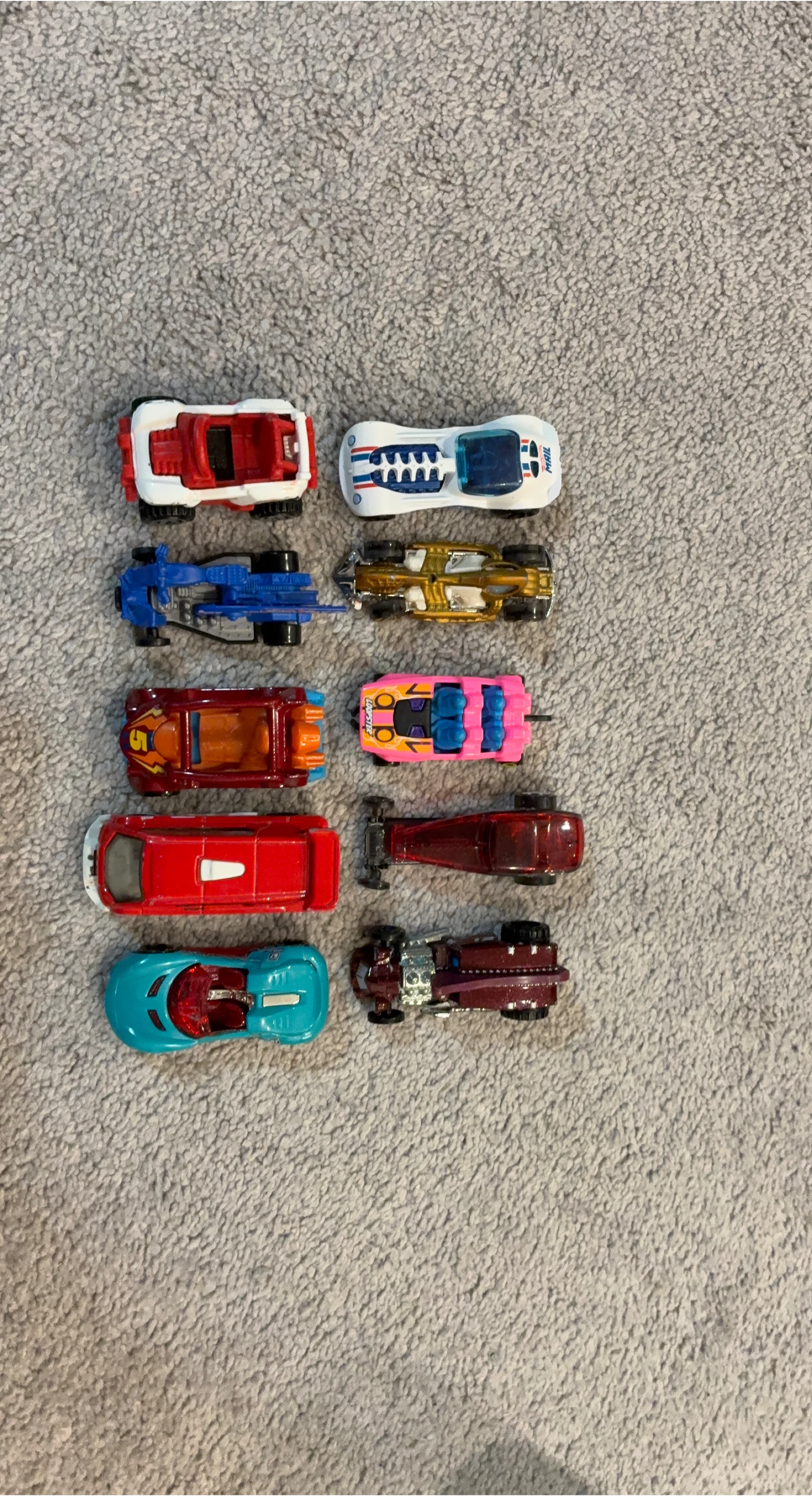 Selling 10 unique and rare Hot Wheels toy cars. They're in great shape and ready for a new collection or playtime!