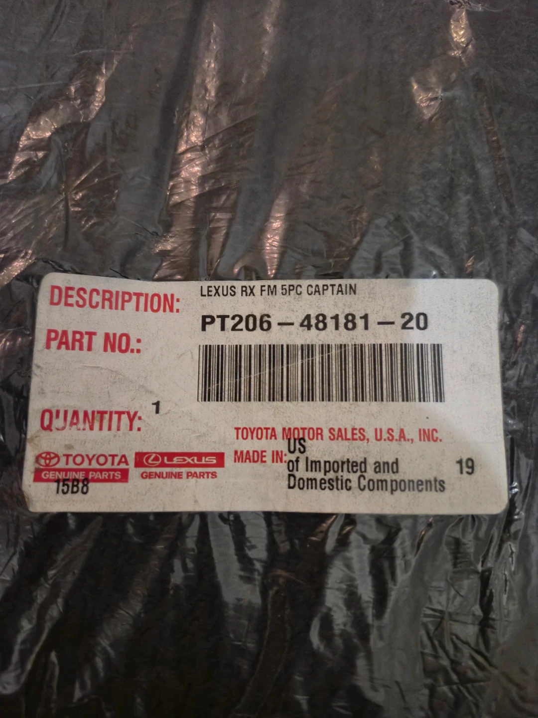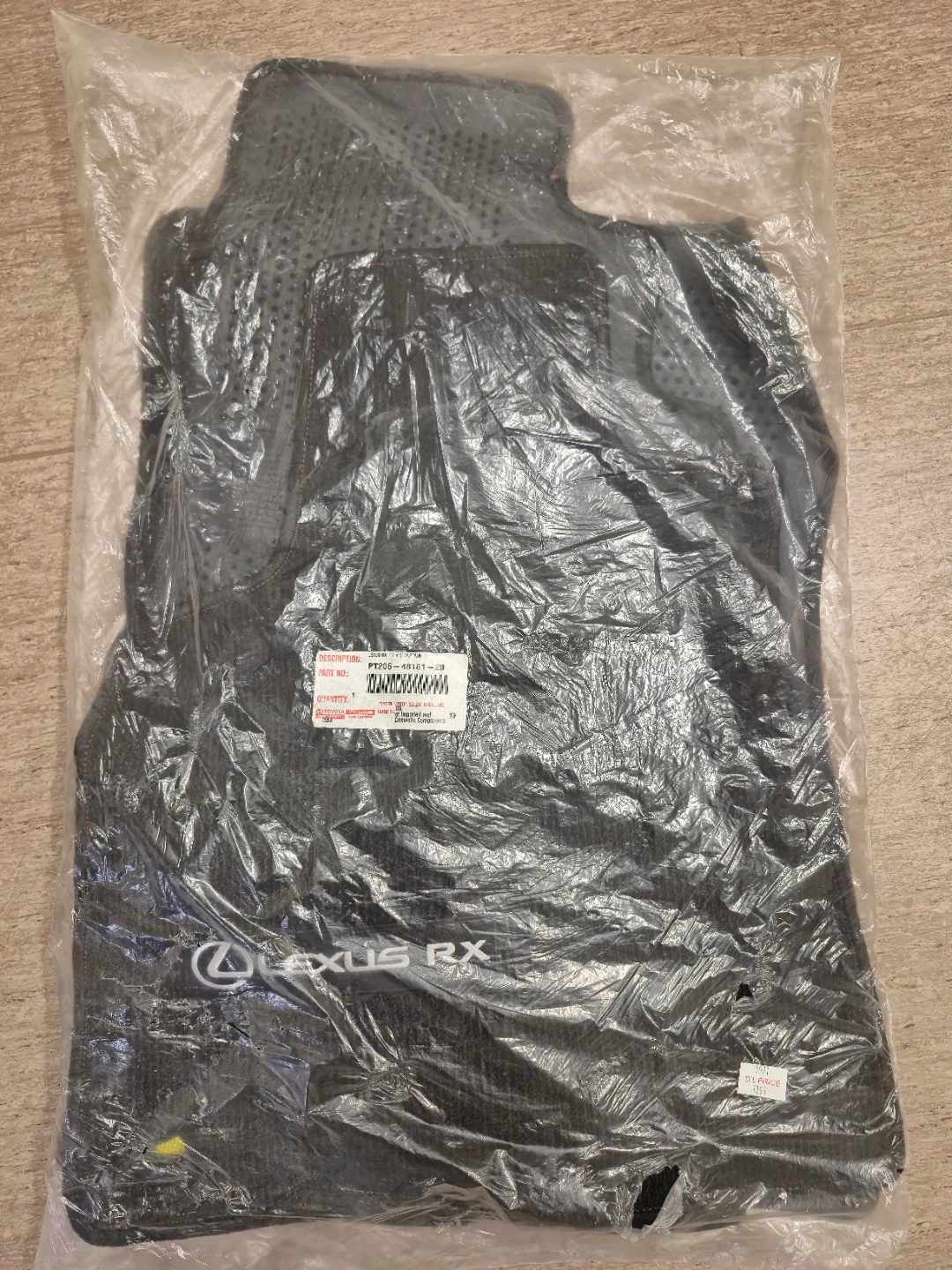 Selling a brand new set of Lexus RX floor mats, still in the original packaging! The part number is PT206-48181-20. These are genuine Toyota/Lexus parts, made in the US with imported and domestic components.