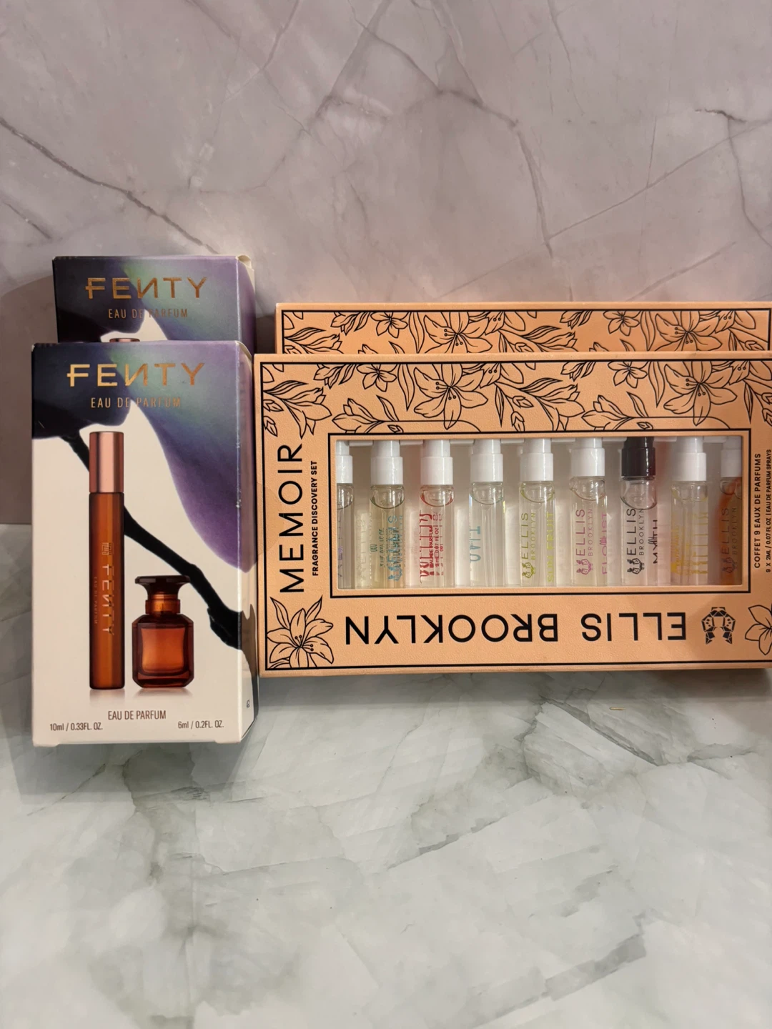 Selling two fragrance discovery sets! One is from Fenty and the other is from Ellis Brooklyn. Both are great ways to sample different scents before committing to a full bottle. Perfect for trying out new fragrances! price per each