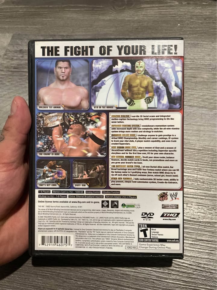 1 / 41 / 4Buy & SellSmackdown vs Raw 2006 on PS2!Smackdown vs Raw 2006 on PS2!$20Came from my personal collection! CIB and disc is in very good condition! Asking $20! Pick up in St. CatharinesWHERE TO MEETCheck LocationView MapSELLERAydan StinsonQueenston806 reviews0 chats·0 favorites·2 viewsSEND CHAT TO SELLERHi Aydan Stinson! I’m interested in your listing.Hi Aydan Stinson! I’m interested in your listing.Get the Karrot app to chatSign In to chat
