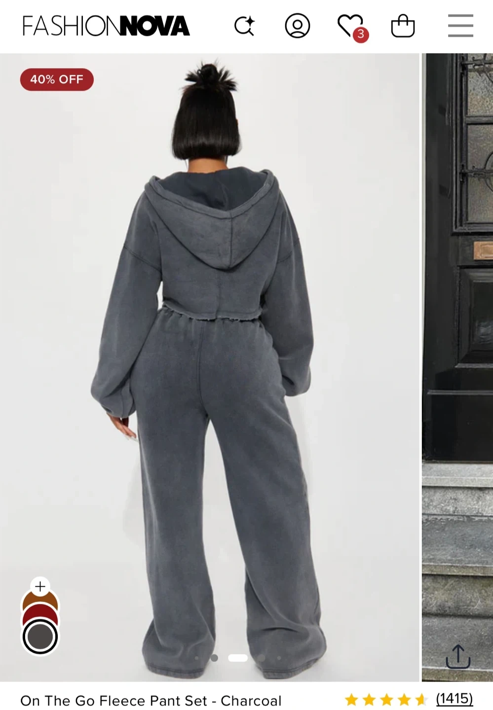 Selling 2 Fashion Nova “On The Go Fleece Pant Sets” in burgundy and charcoal. Each set features a cropped hoodie and wide-leg pants with super soft fleece lining (60% cotton, 40% polyester).
