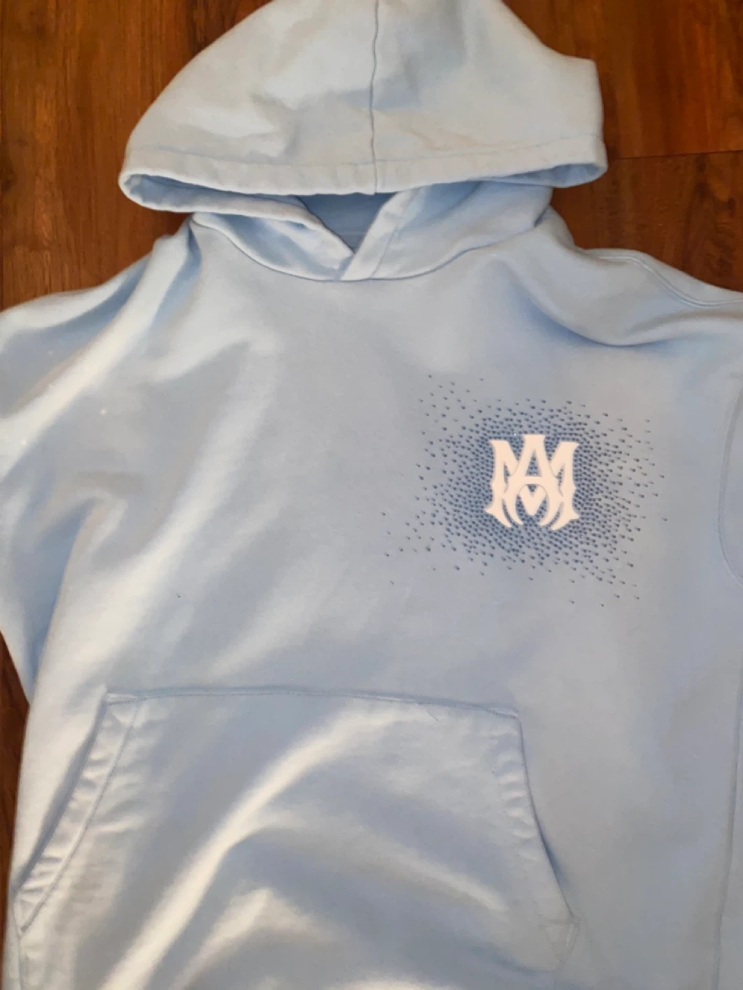 Selling a light blue AMIRI hoodie. It's in great condition and features the brand's logo on the front and back. Perfect for adding a stylish touch to your wardrobe missing tag i accept trades