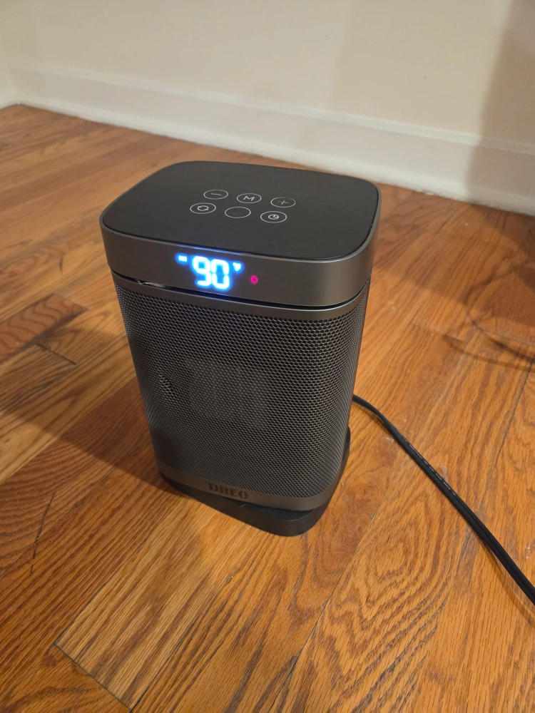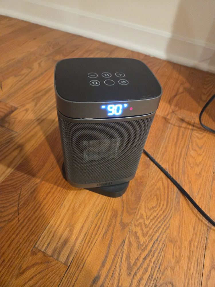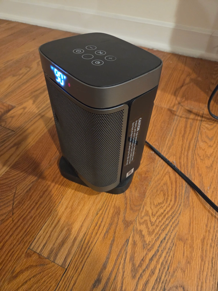 powerful space heater. rotates. fully operational. 5 different modes. high and low temp. can be used as a fan as well.