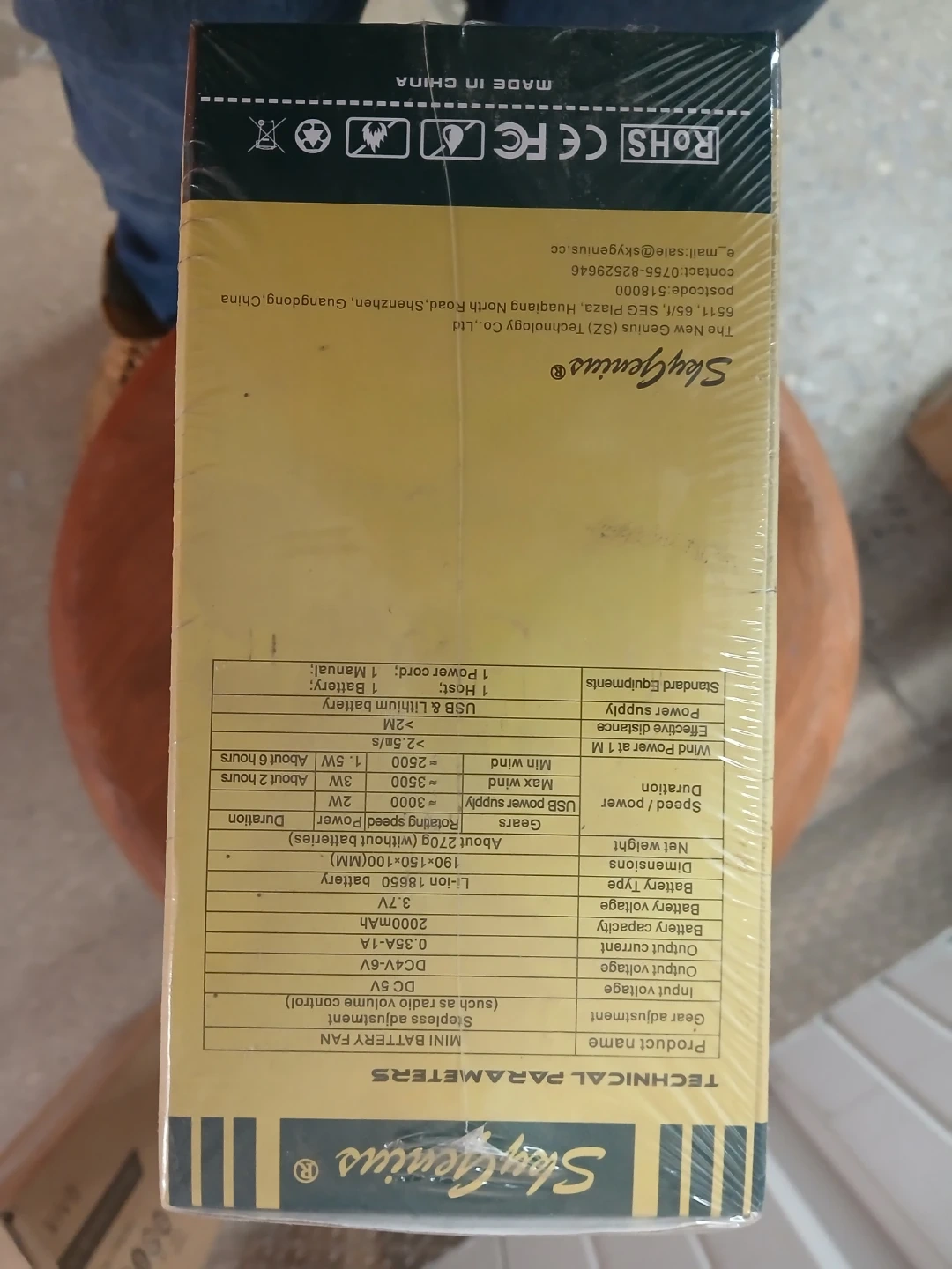 This is a brand new SkyGenius Mini Battery Fan still in its original packaging! It's a clip-on style fan, perfect for staying cool on the go. It features both horizontal and vertical 360-degree rotation. The box includes 1 host, 1 USB Lithium battery, and 1 power cord