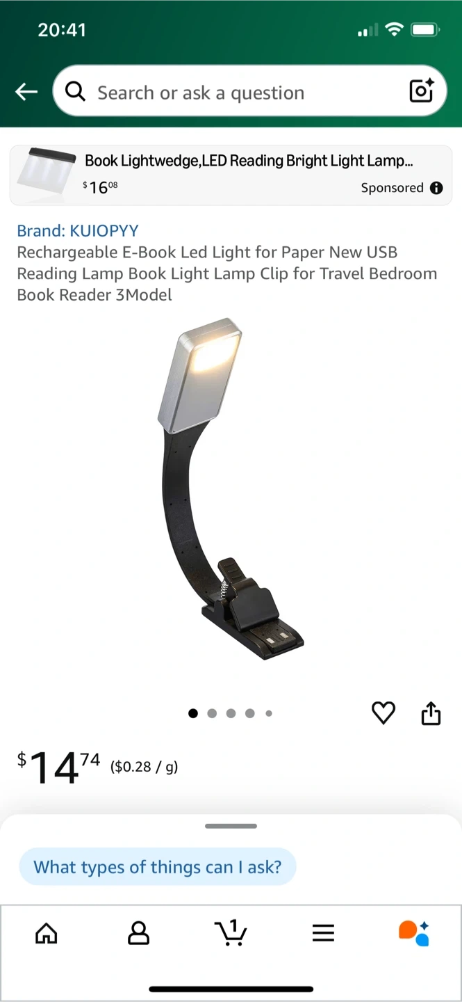 I'm selling a brand new KUOPYY rechargeable E-Book LED light. It's perfect for reading in bed or while travelling. It clips easily onto books and iPads. Originally bought for $14.74