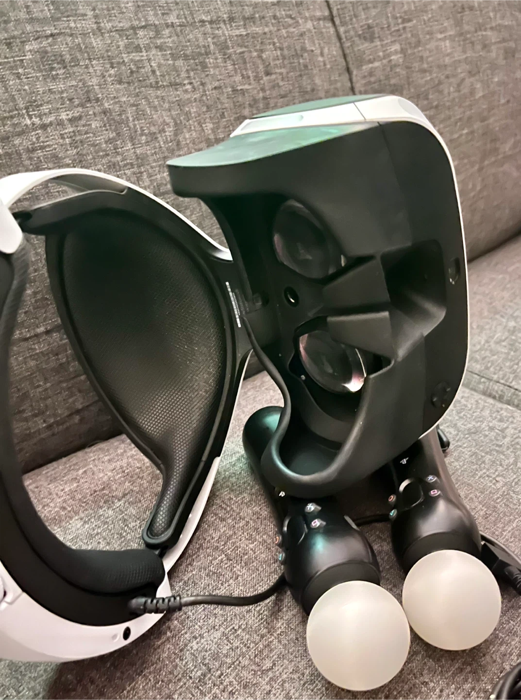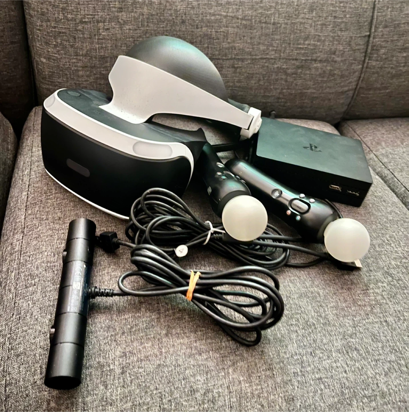 Playstation VR Headset, it is in perfect condition and comes with chargers, power supply, and all the required cords for the VR