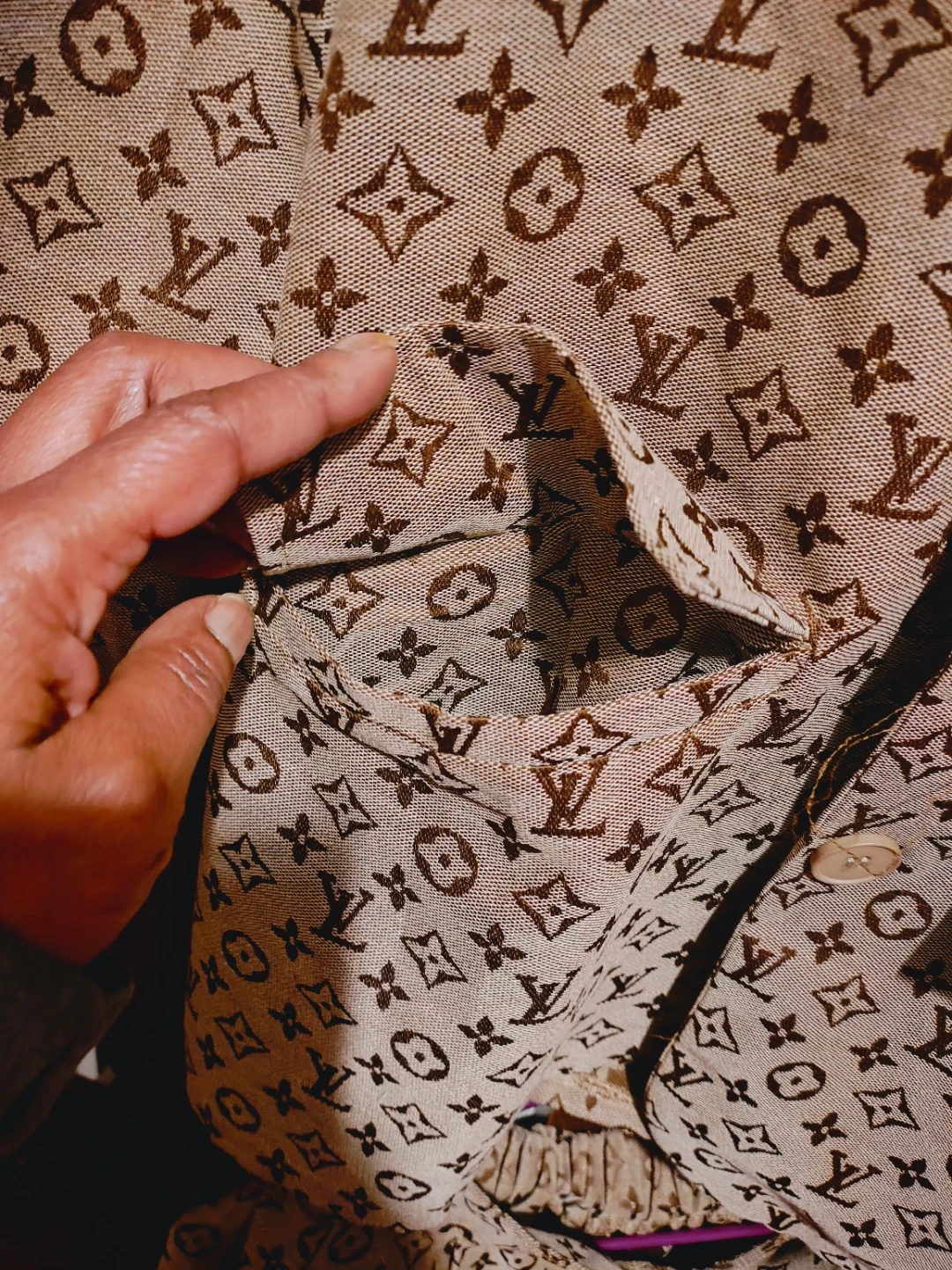 Selling a Louis Vuitton Pantsset. It's a roomy Size Medium. Could possibly fit a slider Size large. The set features the iconic LV monogram pattern. Perfect for any occasion in style! Has one missing button.