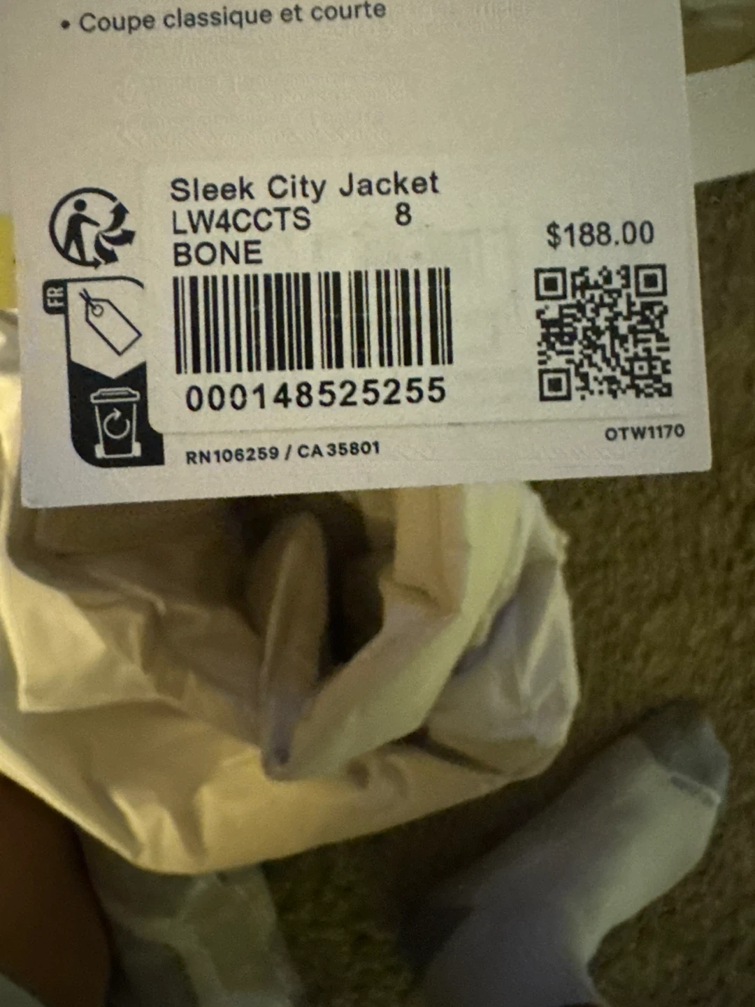 Selling a Lululemon Sleek City Jacket in a beautiful bone color. This jacket is a size 8 and comes with the original packaging. The tag shows the original price which is $188. It's brand new and ready for you !