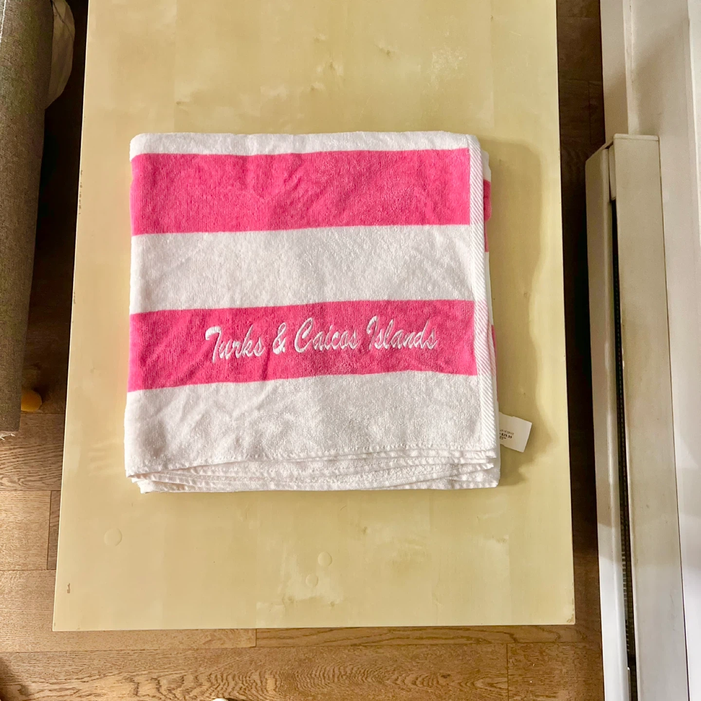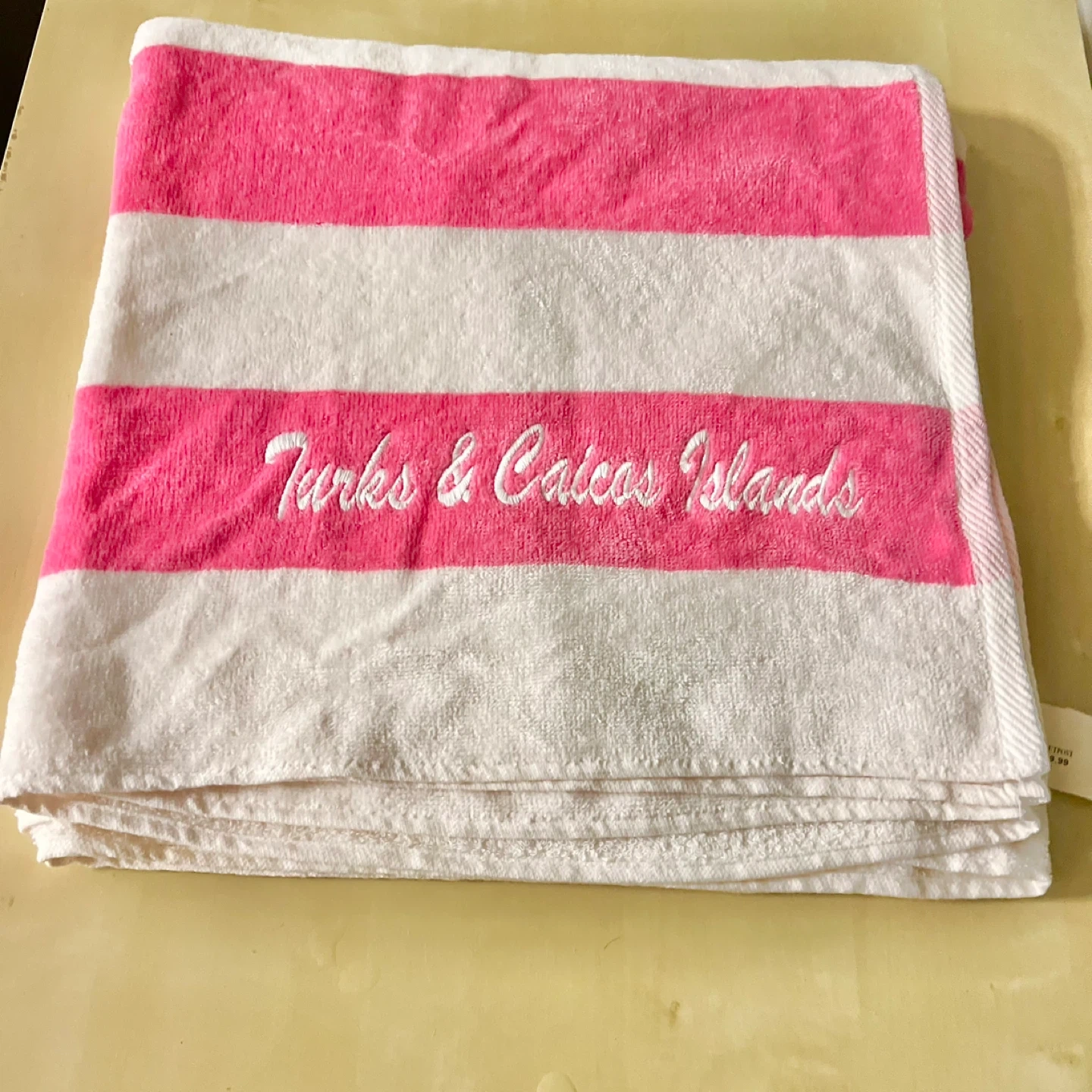 New bough as a gift from Turks and Caicos Vacation. Very cute big beach towel. Original price is 30$.
