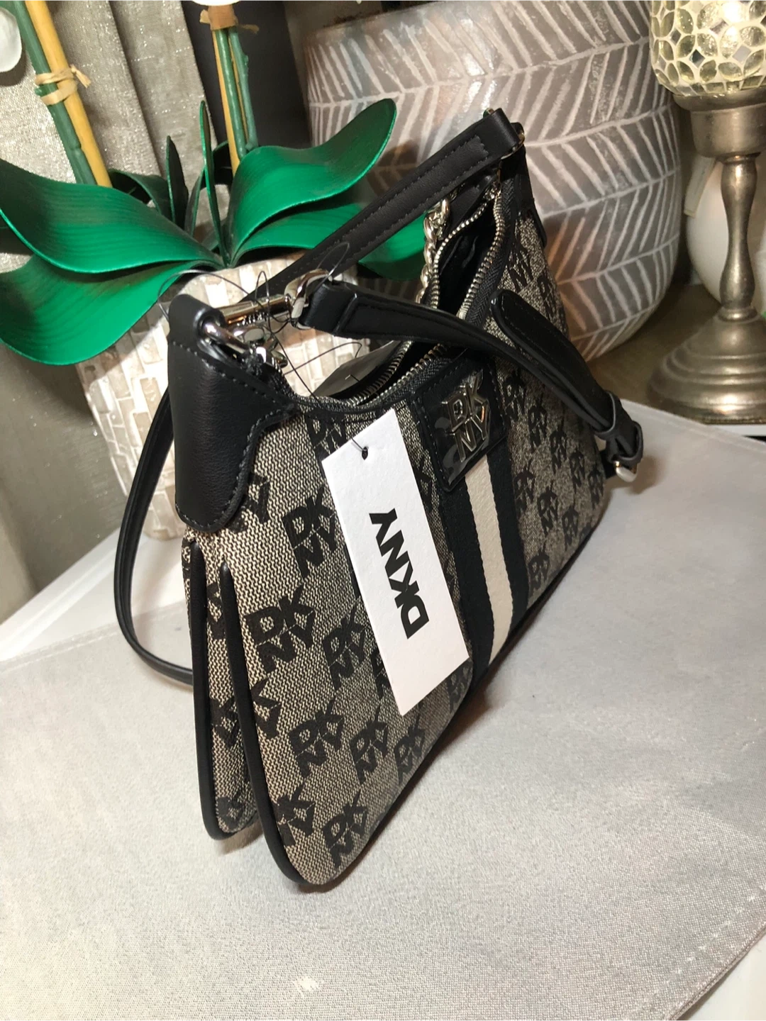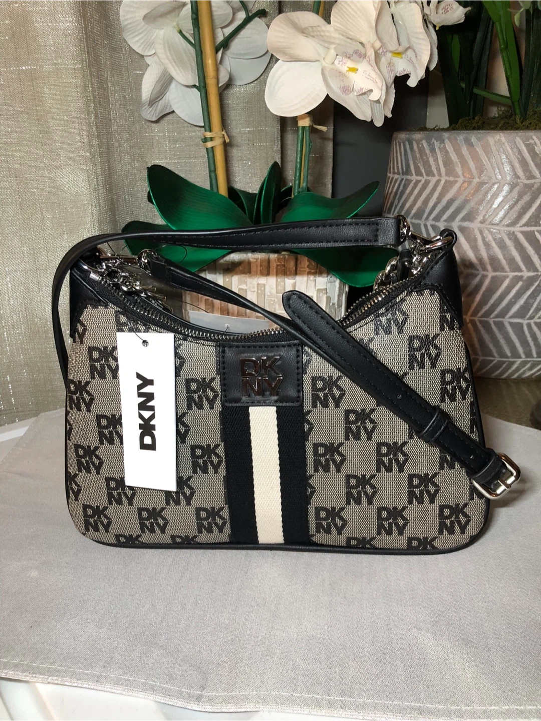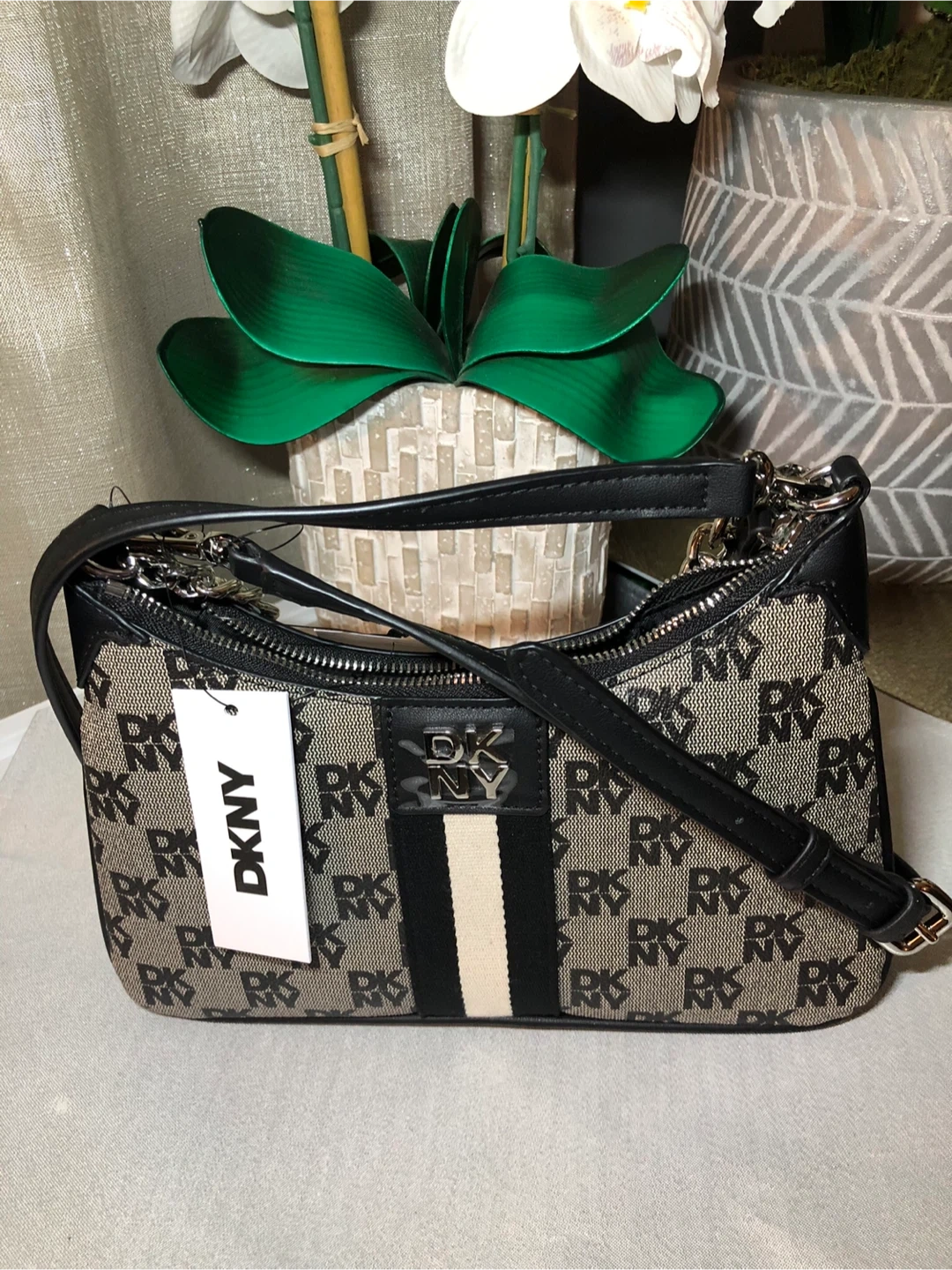 This is a new DKNY shoulder bag with tags still attached! The original price on the tag says $148. It's a stylish purse that can be dressed up or down!