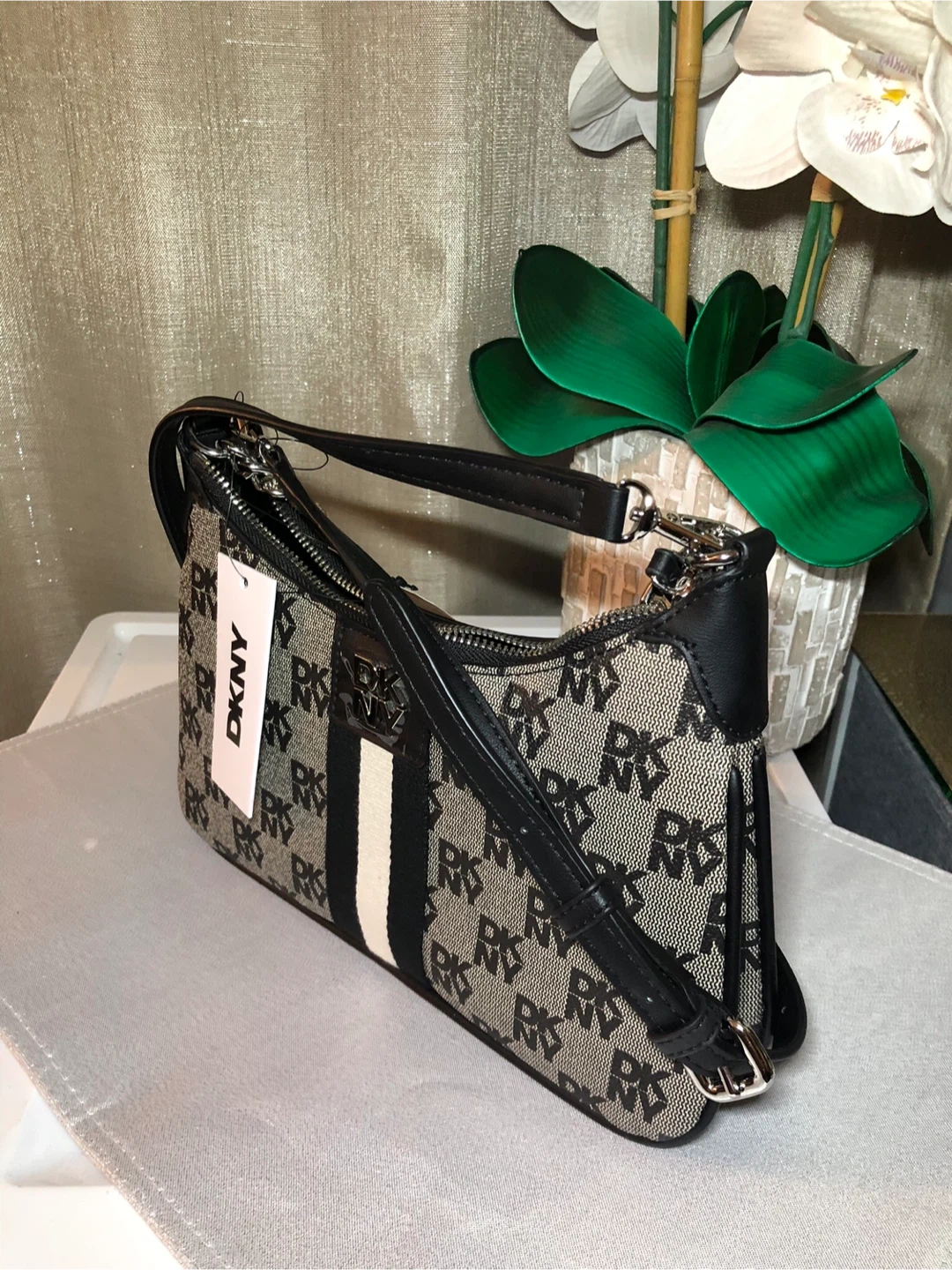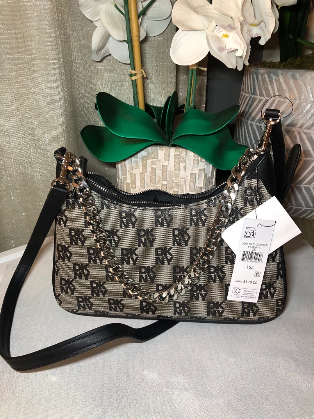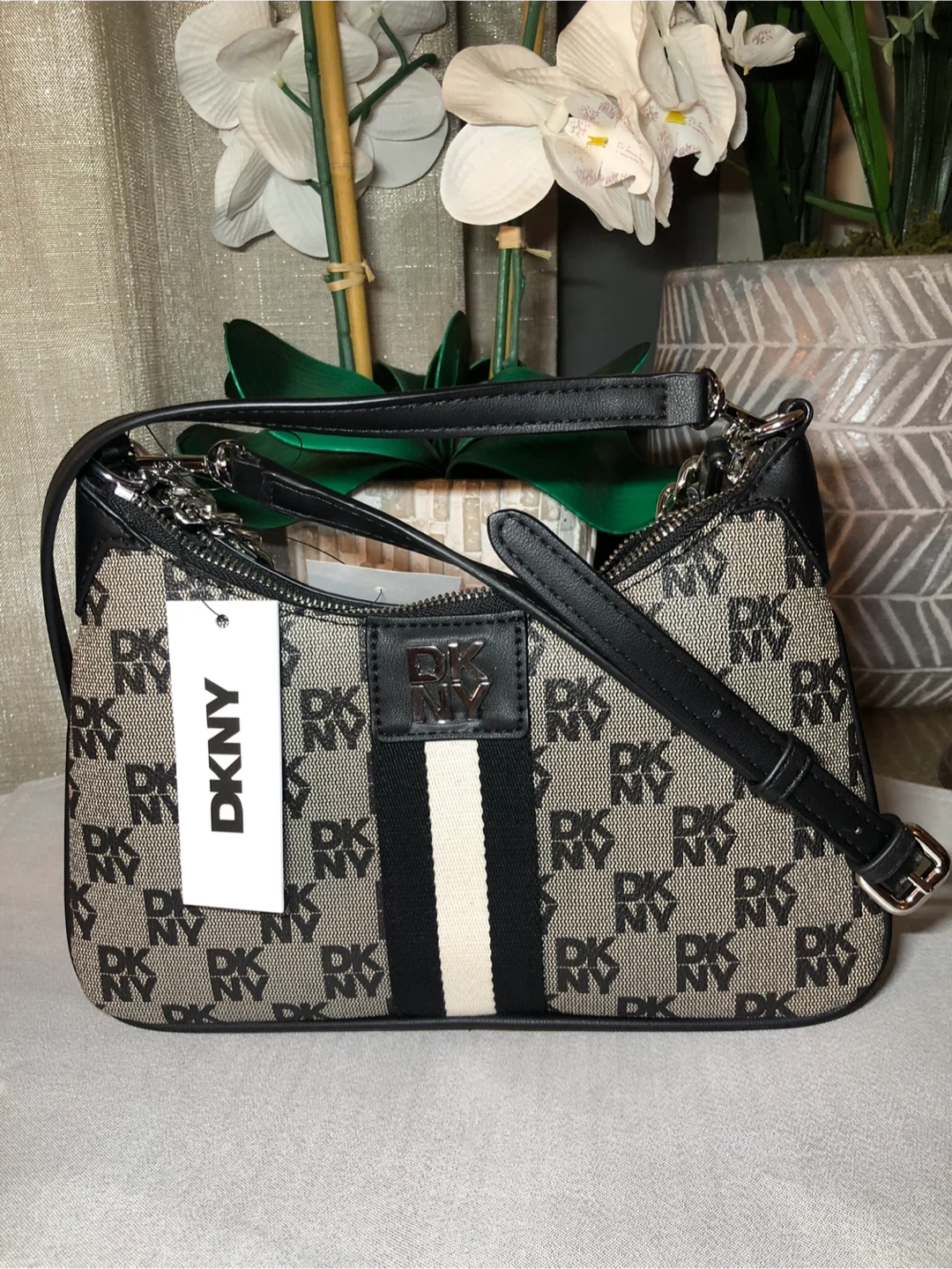 This is a new DKNY shoulder bag with tags still attached! The original price on the tag says $148. It's a stylish purse that can be dressed up or down!