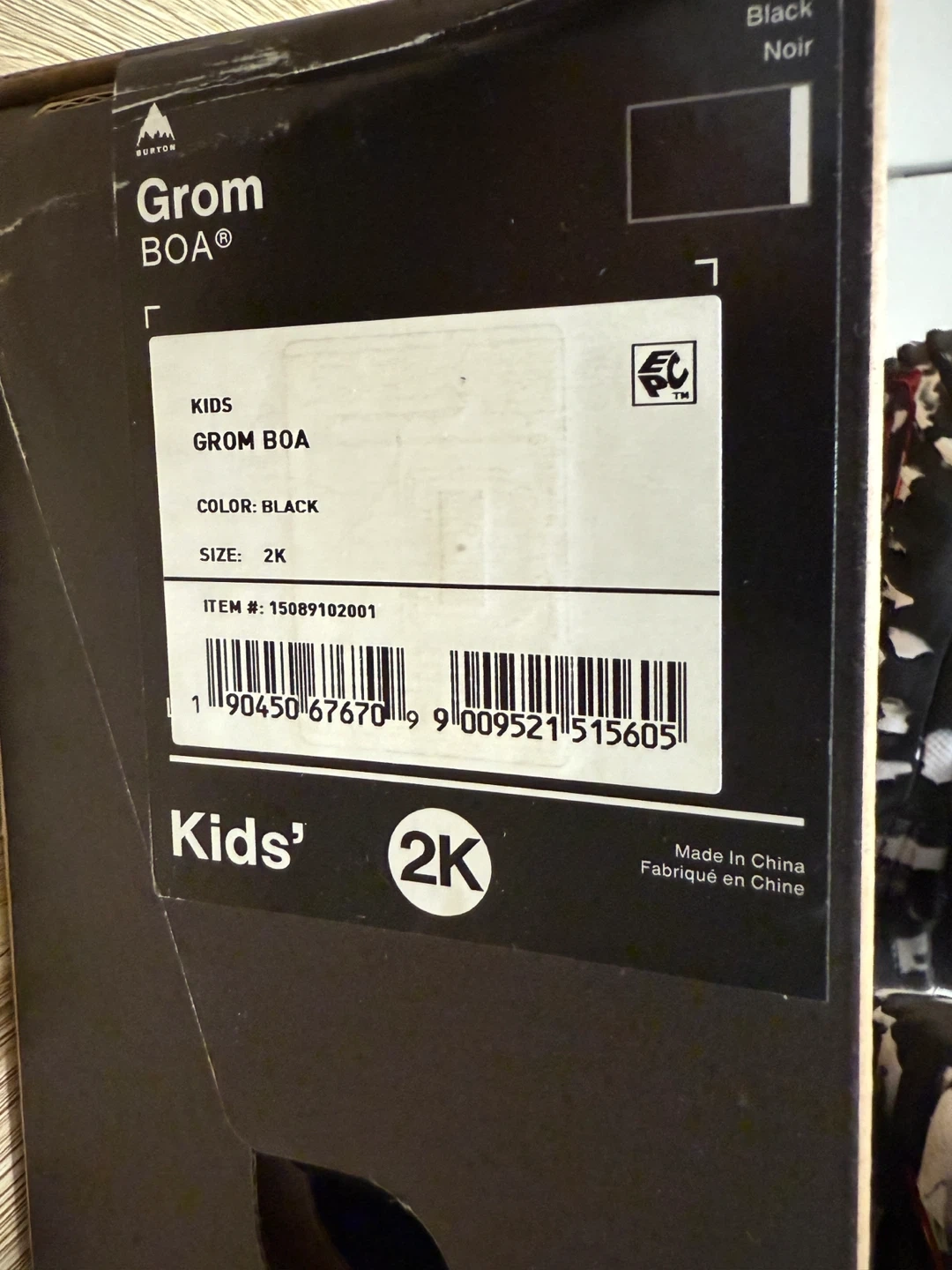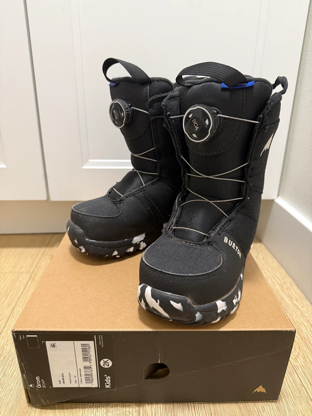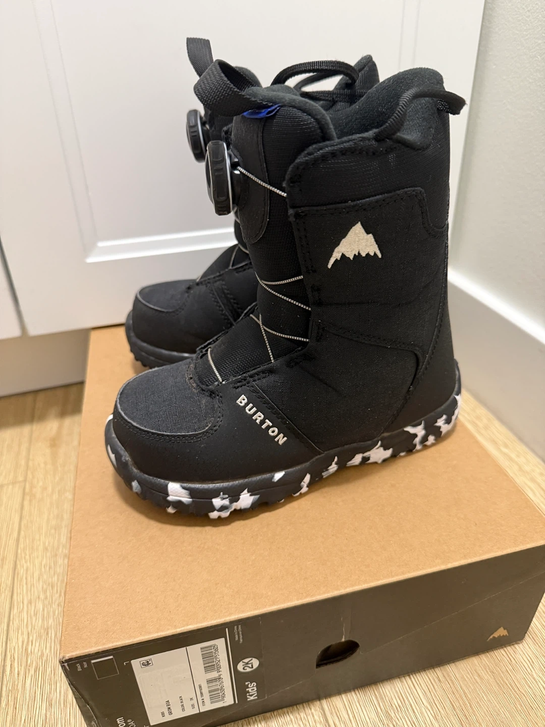 Selling a pair of Burton Grom BOA kids' snowboard boots in black, size 2K!