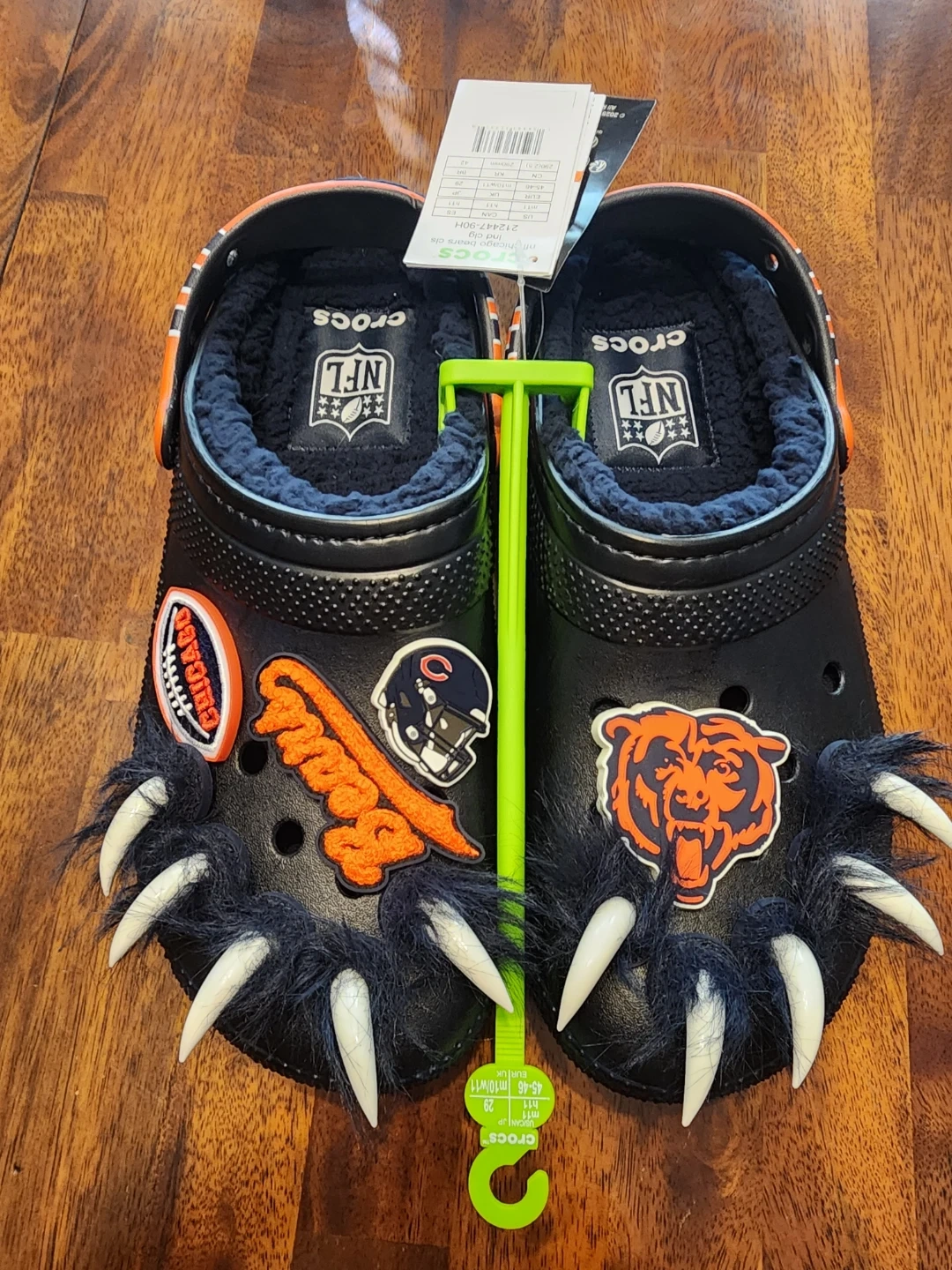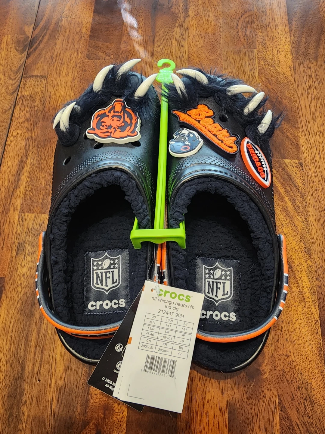 Selling a brand new pair of Crocs NFL Chicago Bears clogs in size 11! These are super unique and perfect for any Bears fan. They feature fun details like the team logo and claw accents. Grab these comfy and stylish clogs while you can! SOLD OUT!!!