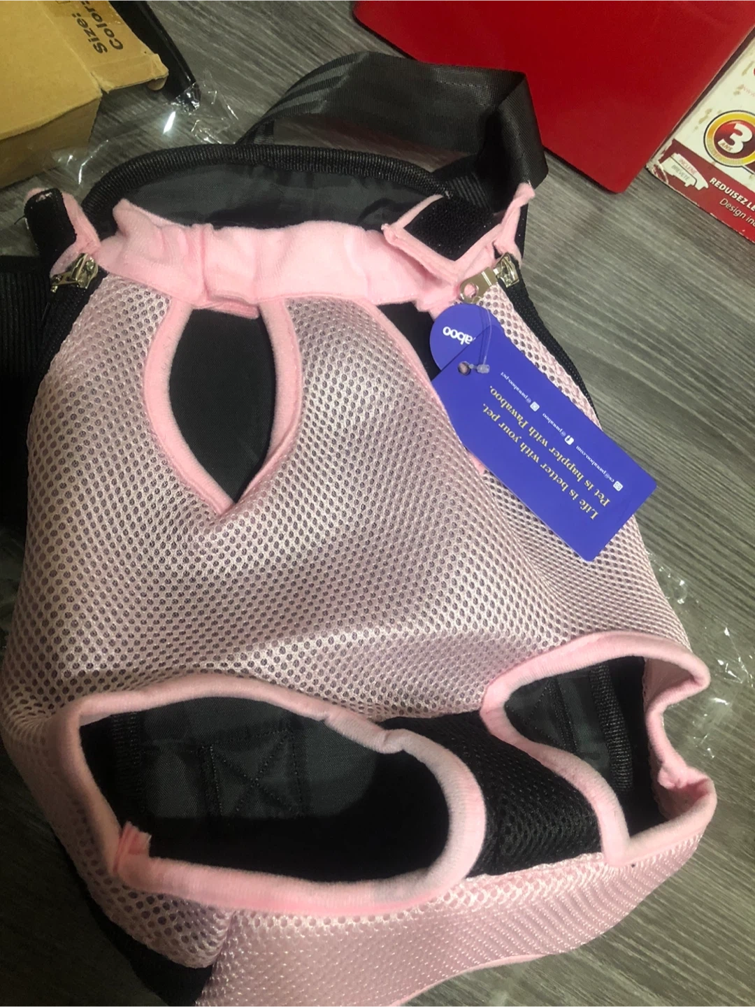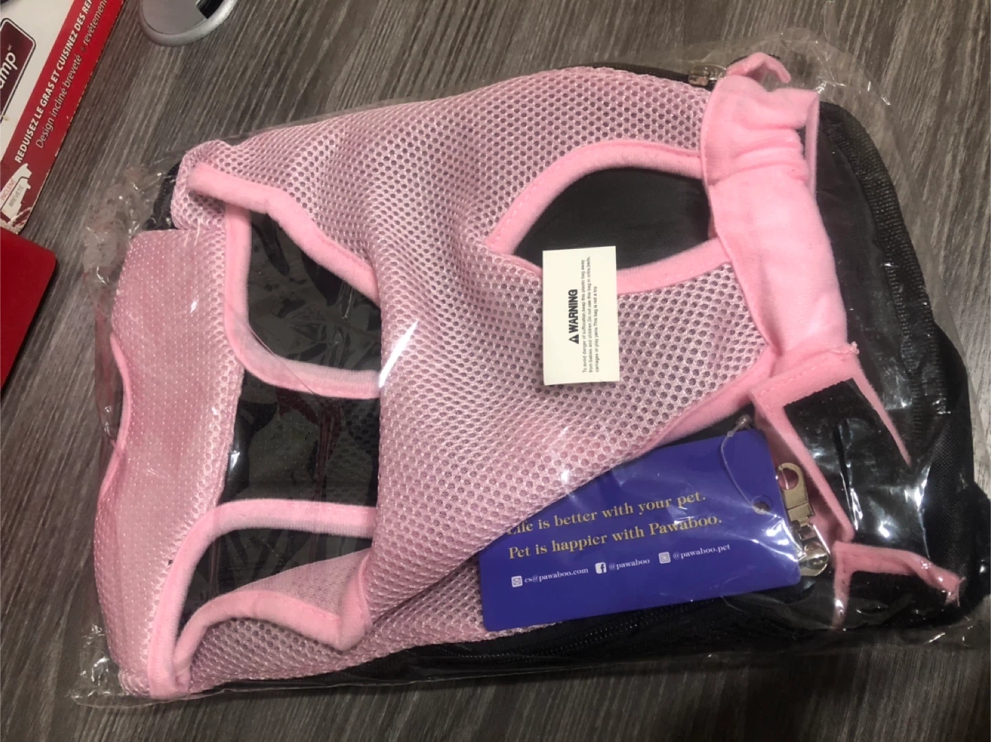 Selling a brand new Pawaboo pet carrier! It's a size medium and features a cute pink and black design. Perfect for keeping your furry friend safe and comfy on your travels!