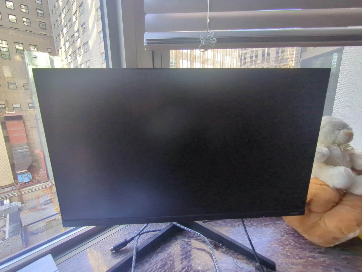 Selling a Samsung 27" monitor with no bezels on three sides. It comes with a black stand and it is in great condition.