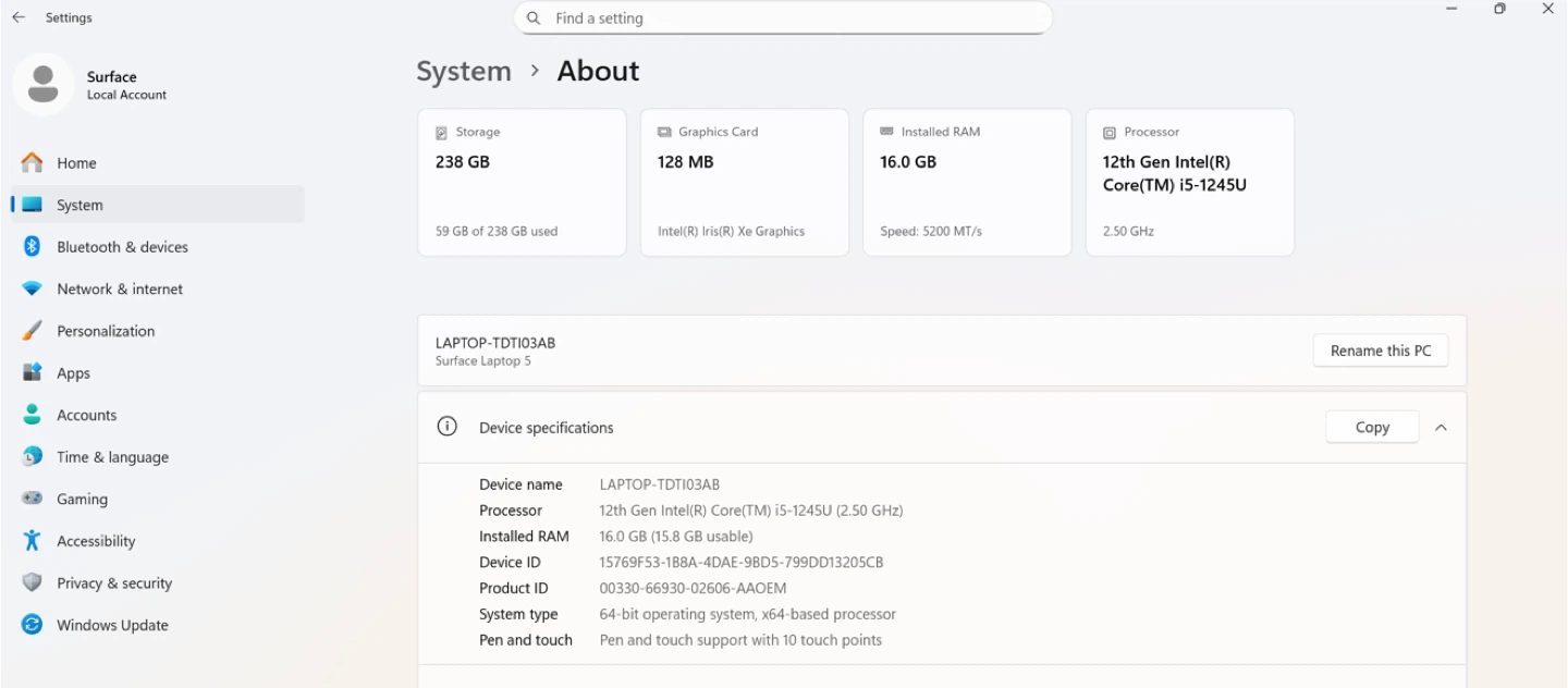 * 12th Gen Intel (R) Core(TM) i5-1245U