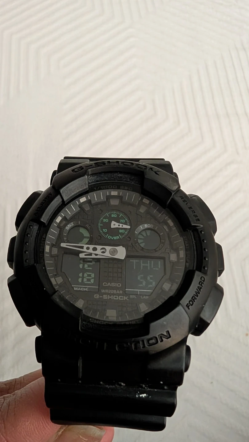 Selling a Casio G-Shock watch, model GA-100MB in black. It's in good condition and ready for a new wrist!