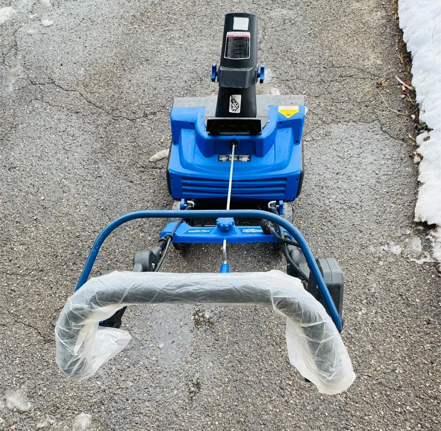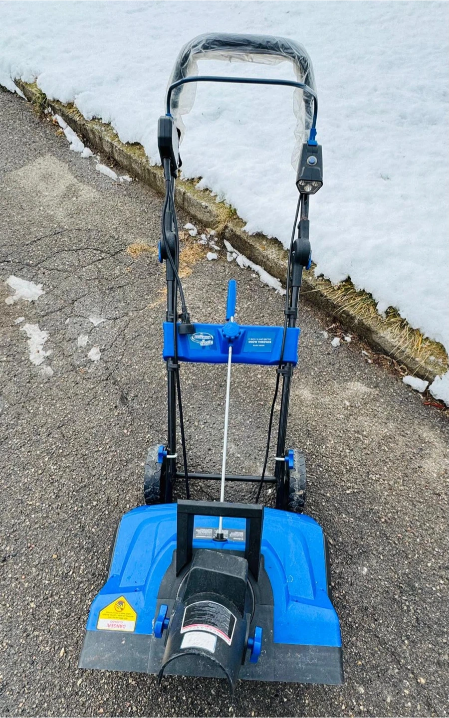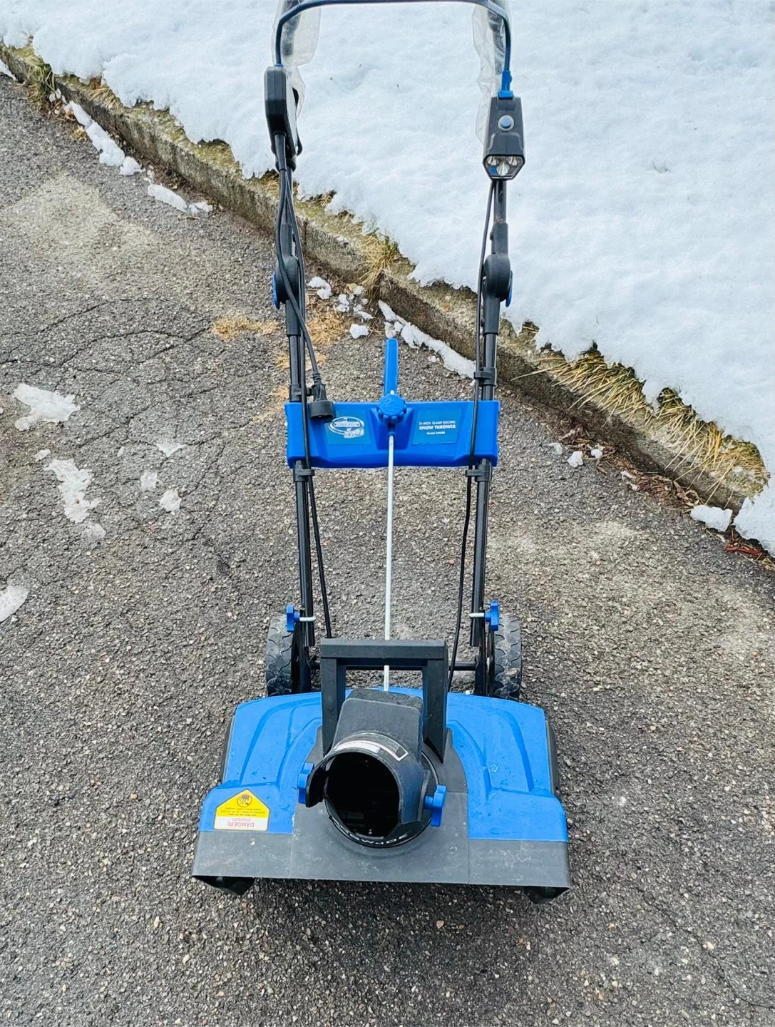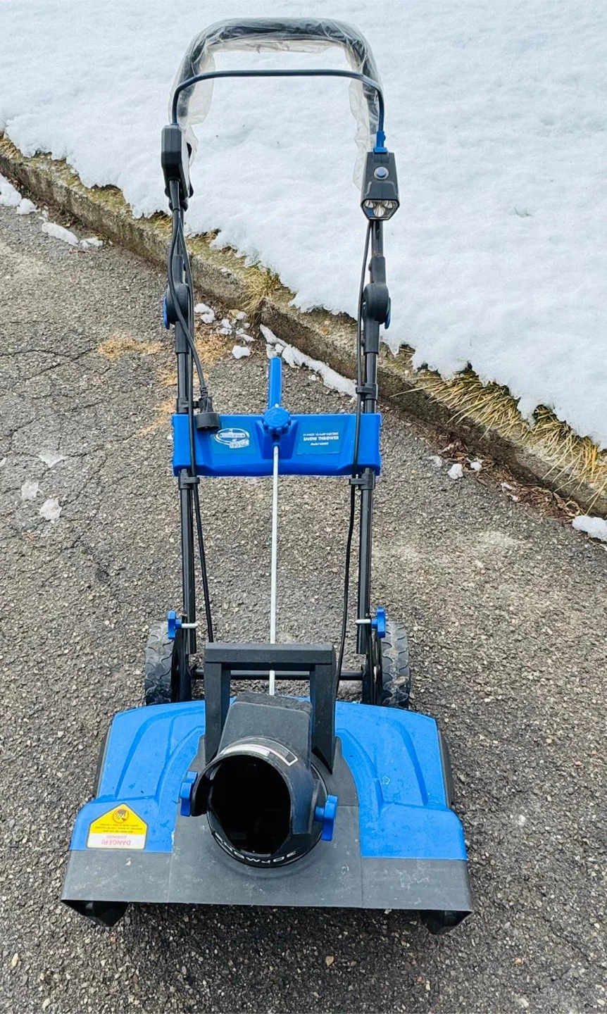 I'm selling a like new Snow Joe electric snow shovel! It's blue in colour and ready to help you clear your driveway or walkway this winter. It's in perfect condition, rarely used.