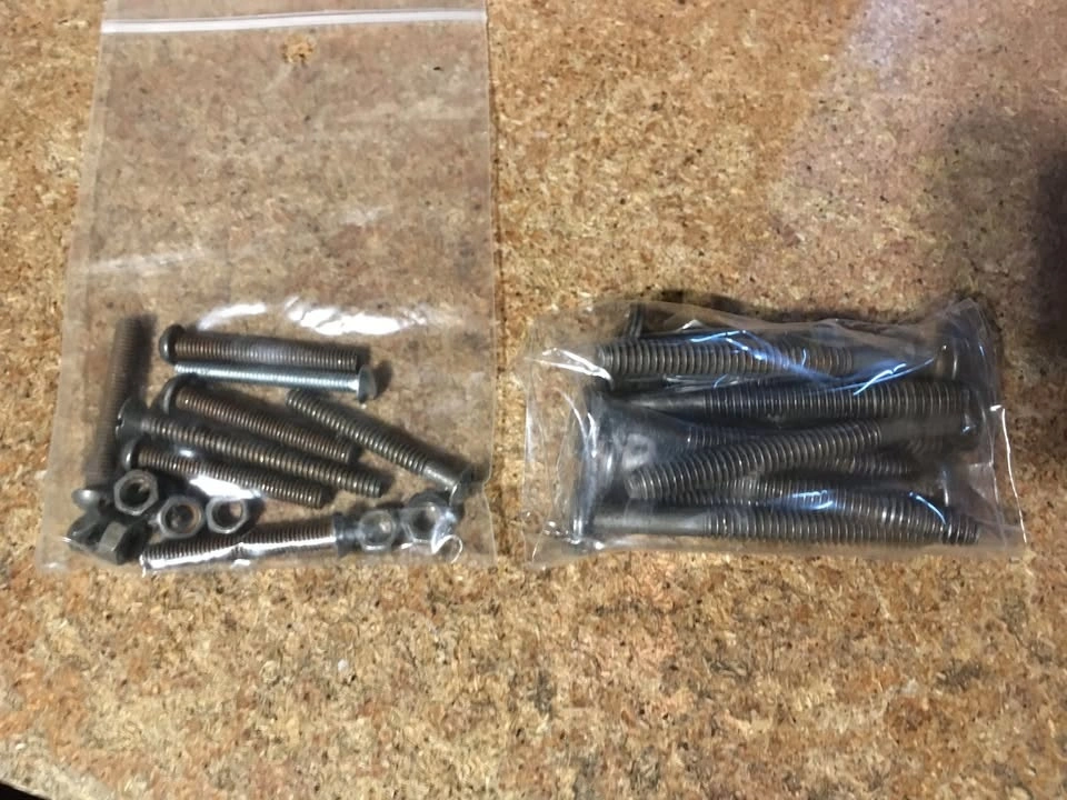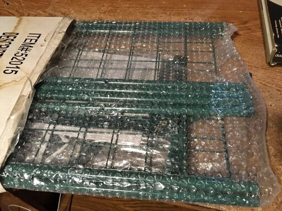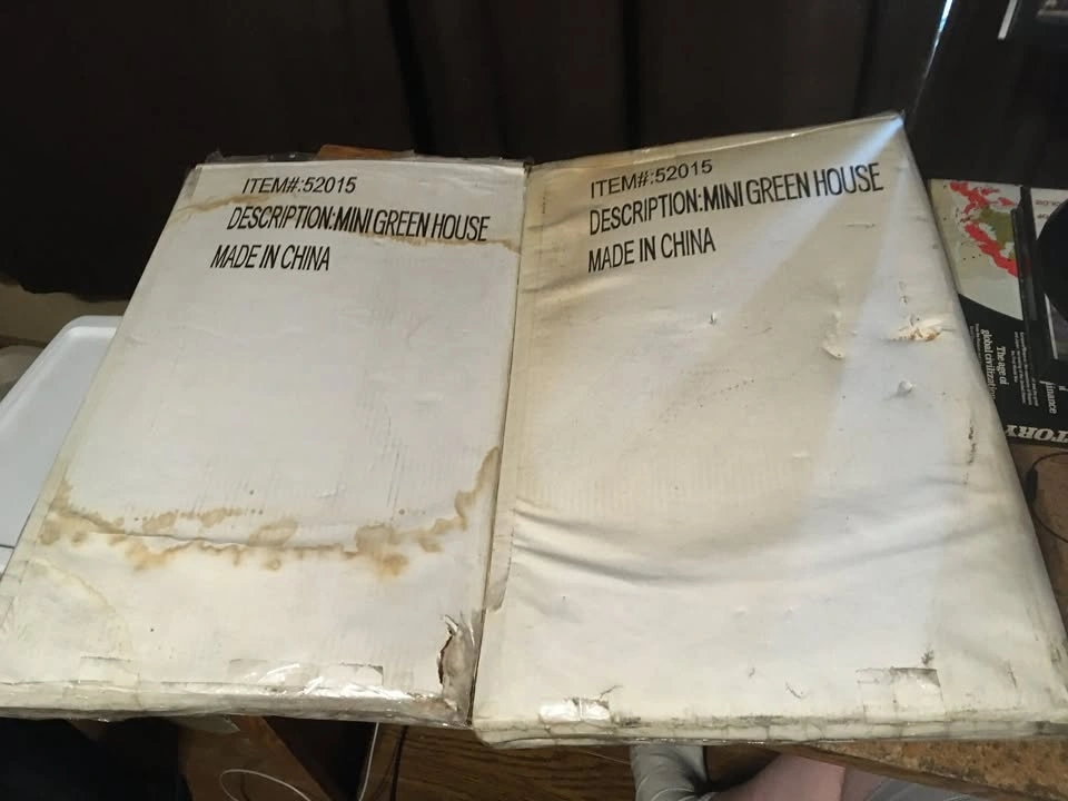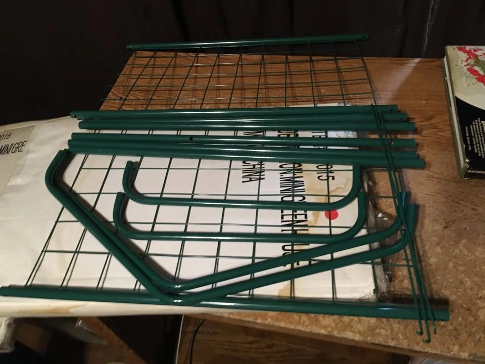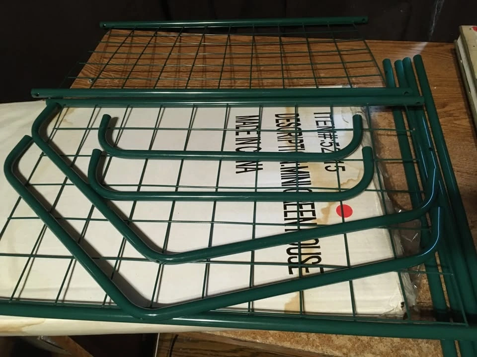 One of them is new never used, but I had to place the screws and nuts. The other on is used, has one of the side broken still in good condition outside and had to replace the screws and nuts. The boxes and stained/damaged, the shelves will work perfectly fine 32 x 22 x 13. Cash only pick up at house.