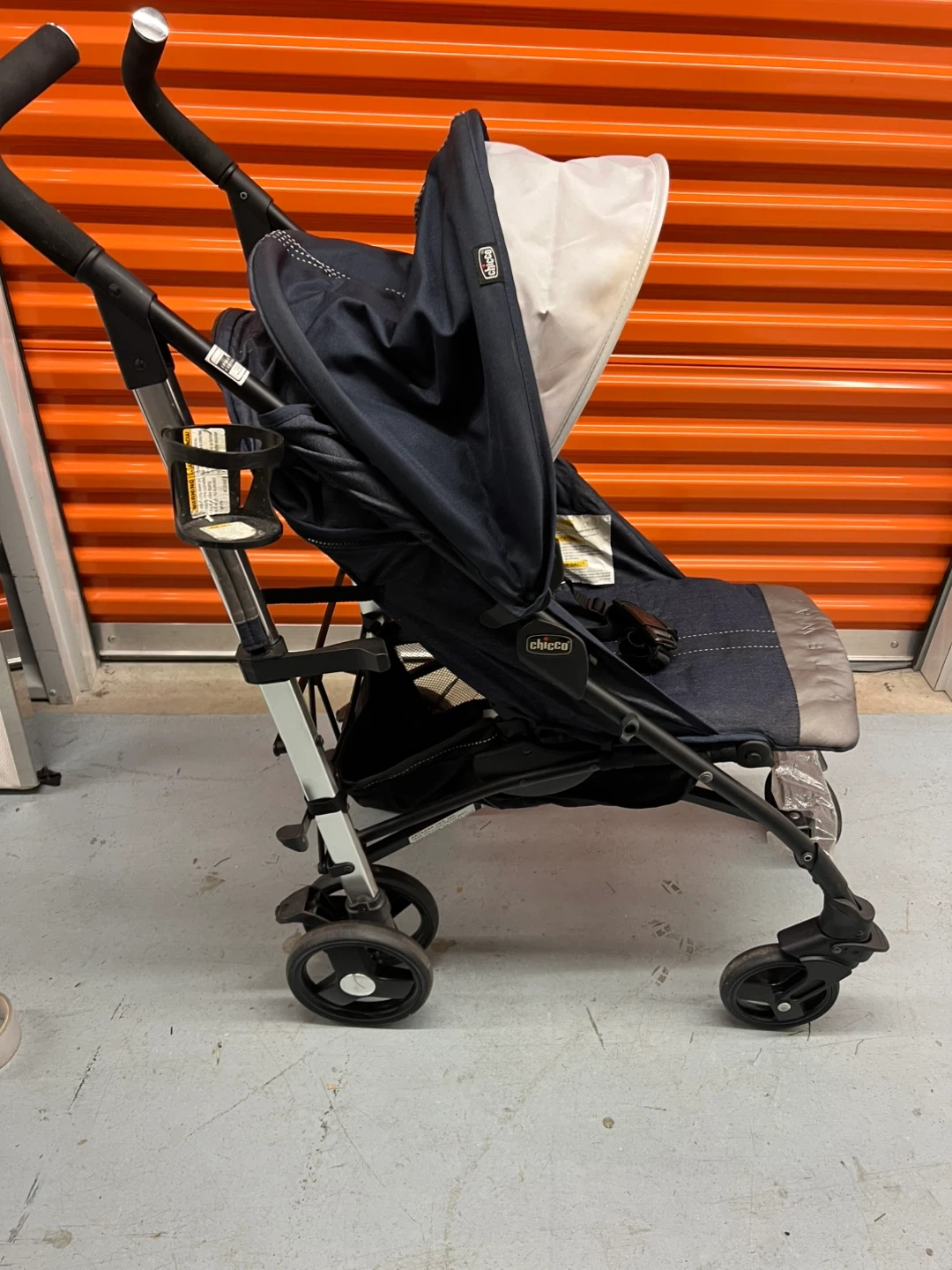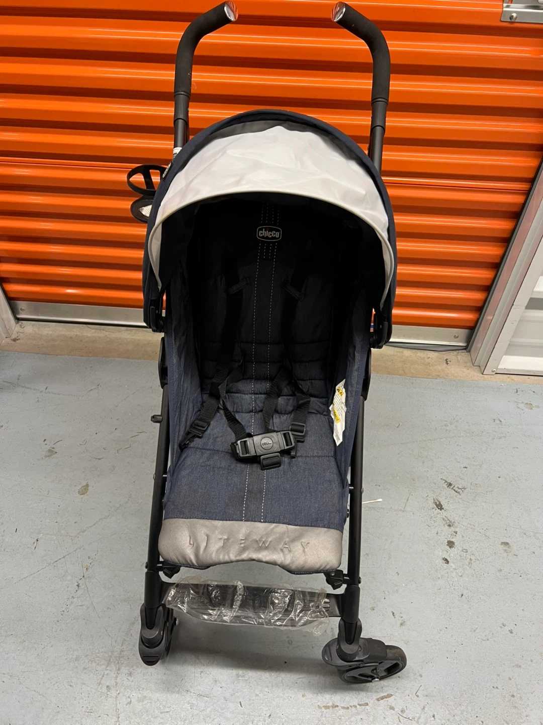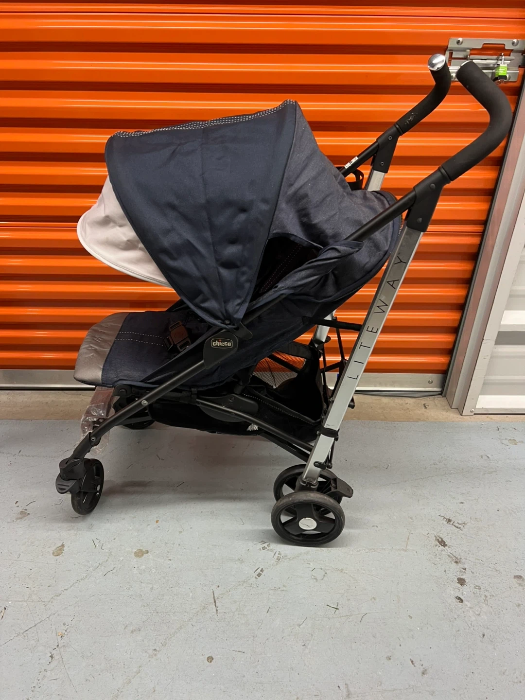 Selling a Chicco Liteway stroller. It is in great condition and ready for a new family! The stroller has a black frame with a blue and gray seat.