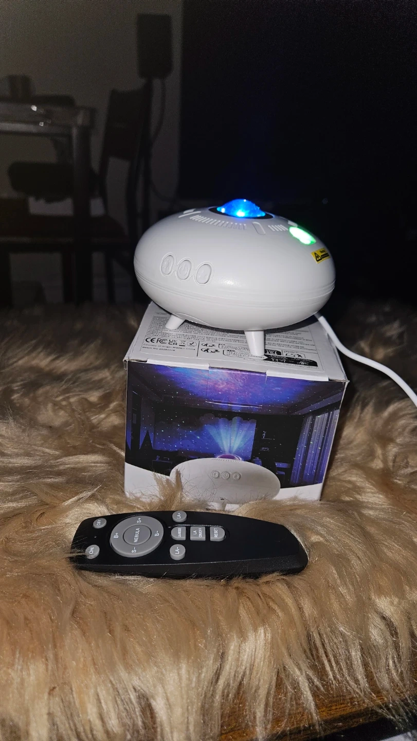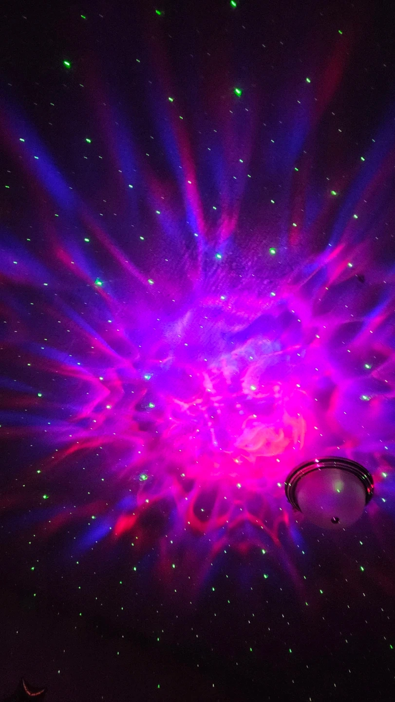 Check out this cool star projector! It transforms your room into a mesmerizing galaxy with colorful lights.
