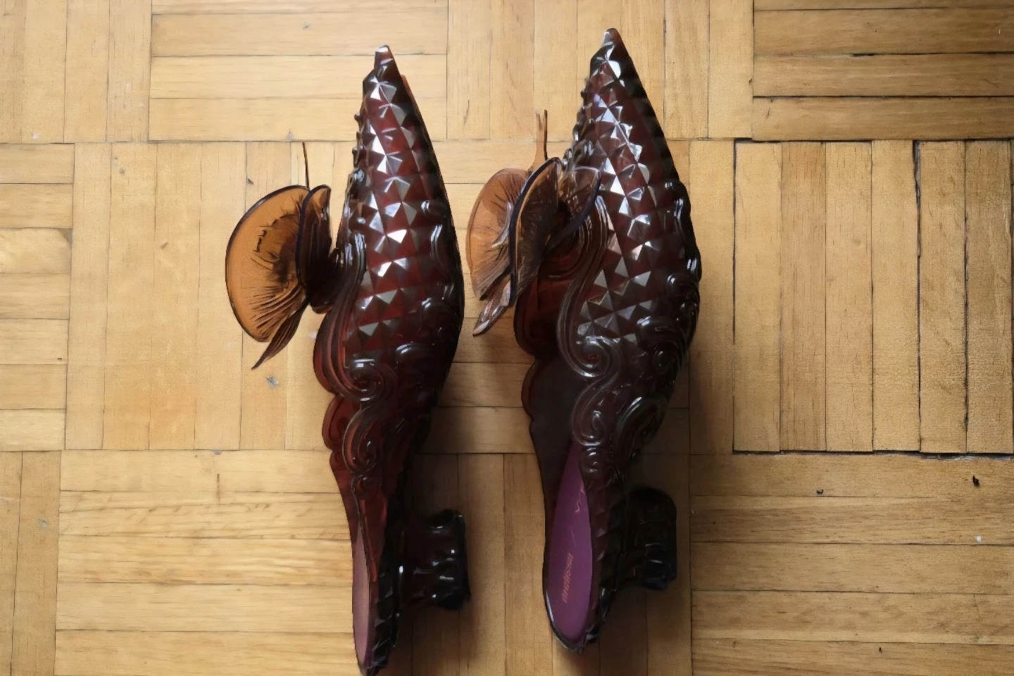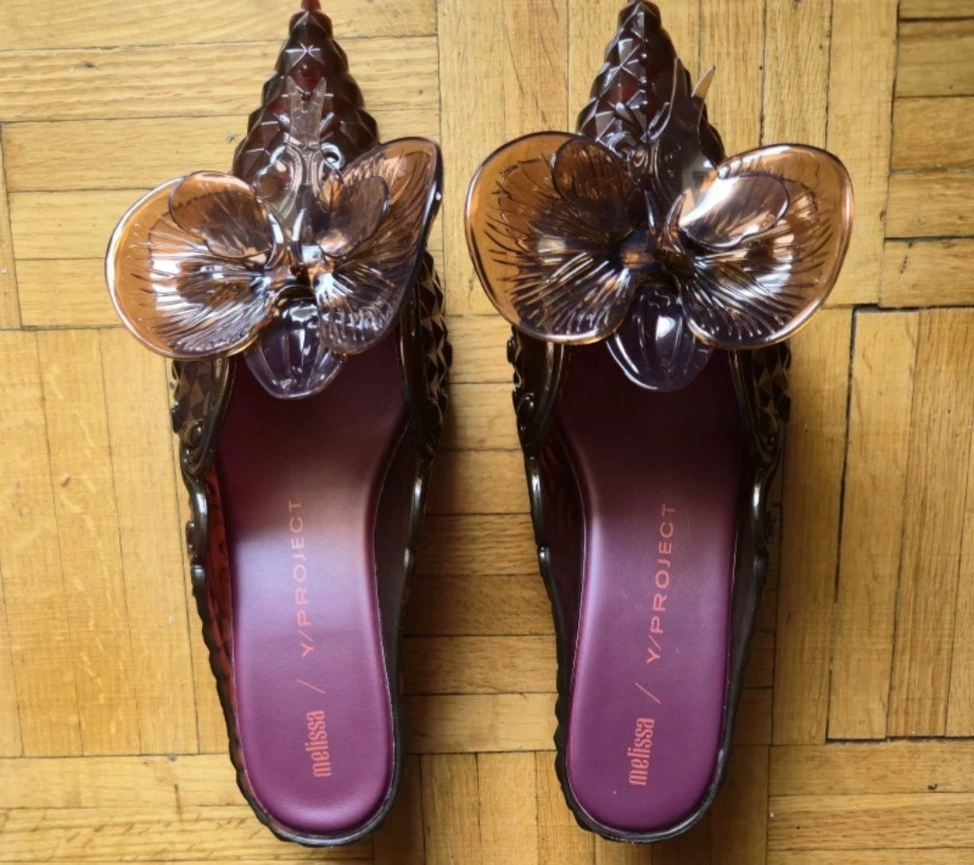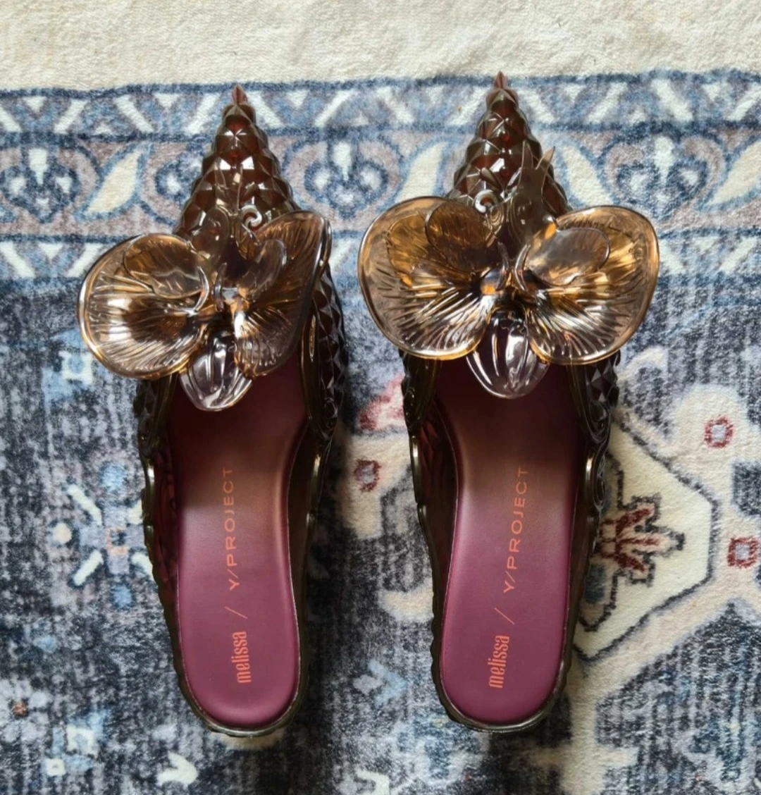 These unique heels are a collaboration between Melissa and Y/Project! They feature a distinctive floral design and a translucent finish.