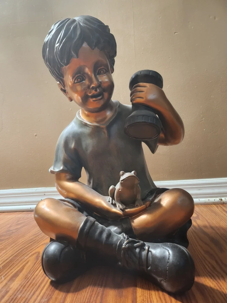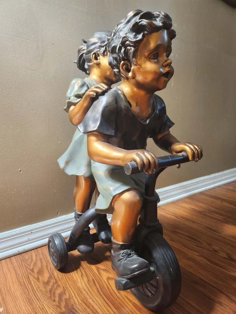 Both pieces are decorative resin or cold-cast bronze–style sculptures. They’re mass-produced home décor statues, very popular in the late 1990s–early 2000s.