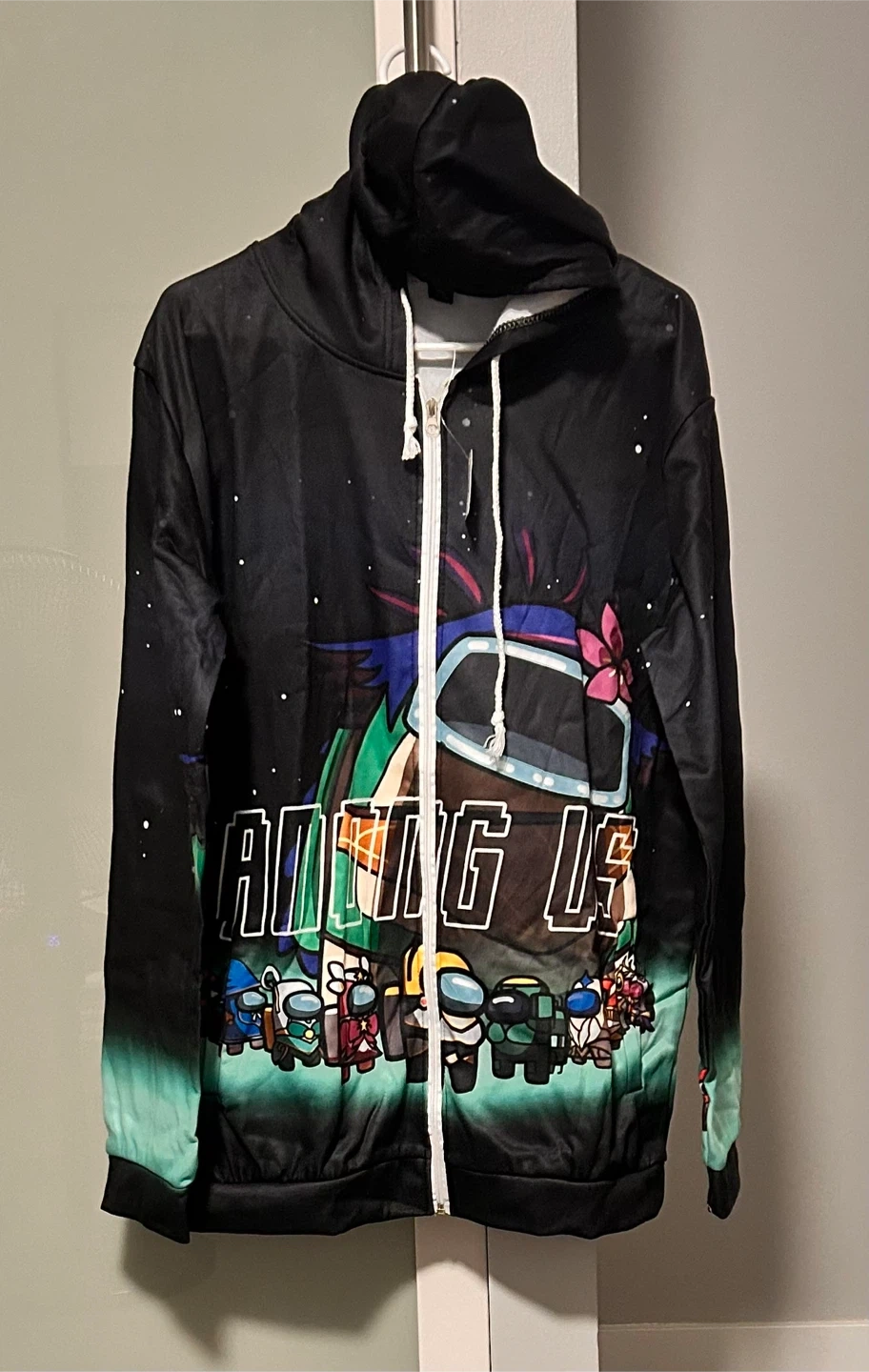 Selling an Among Us hoodie in size 2XL! It has a cool design and would be perfect for any fan of the game.