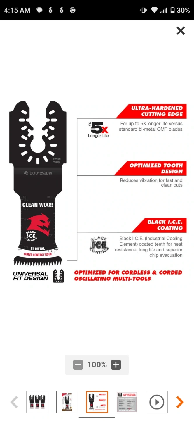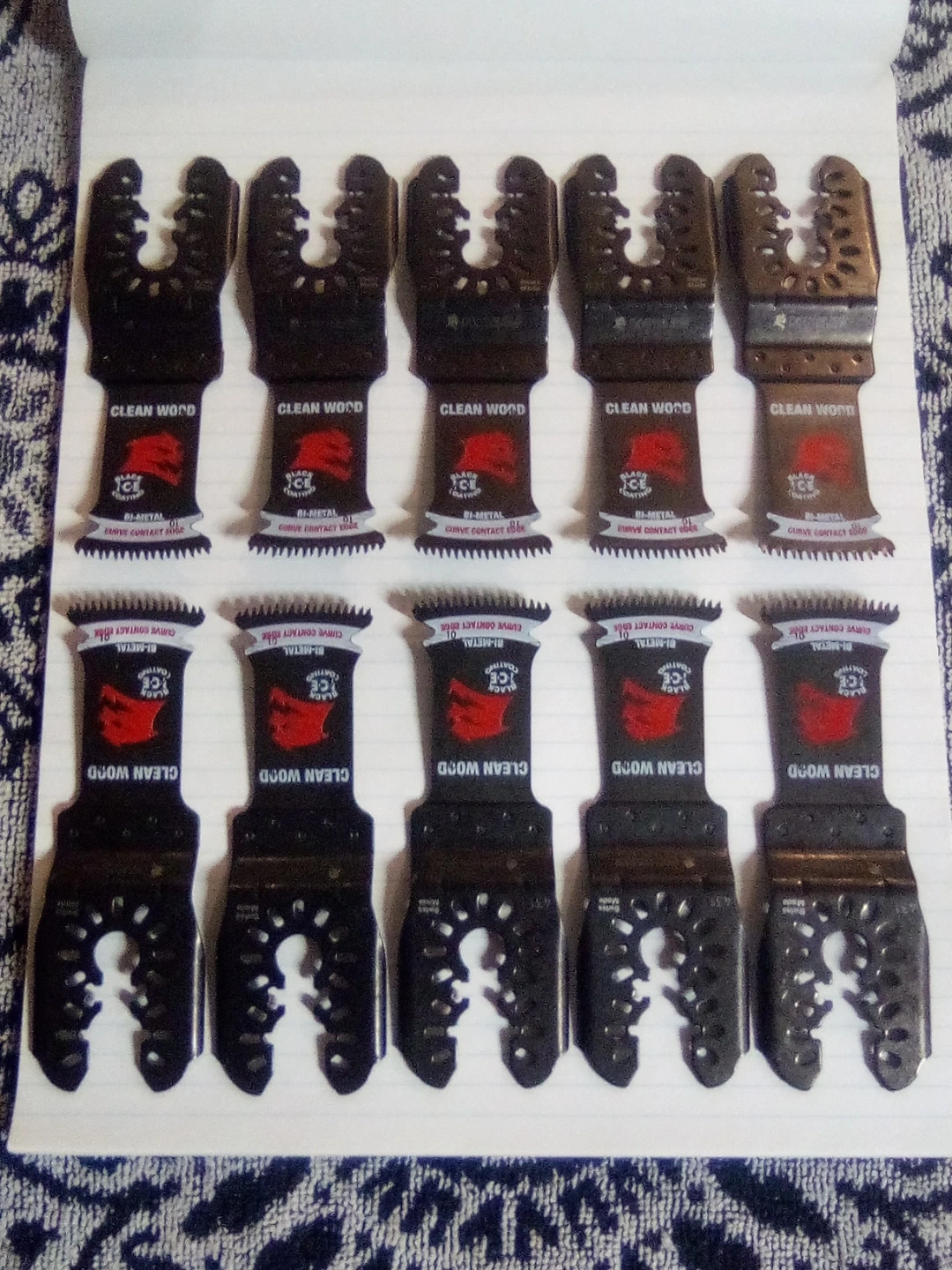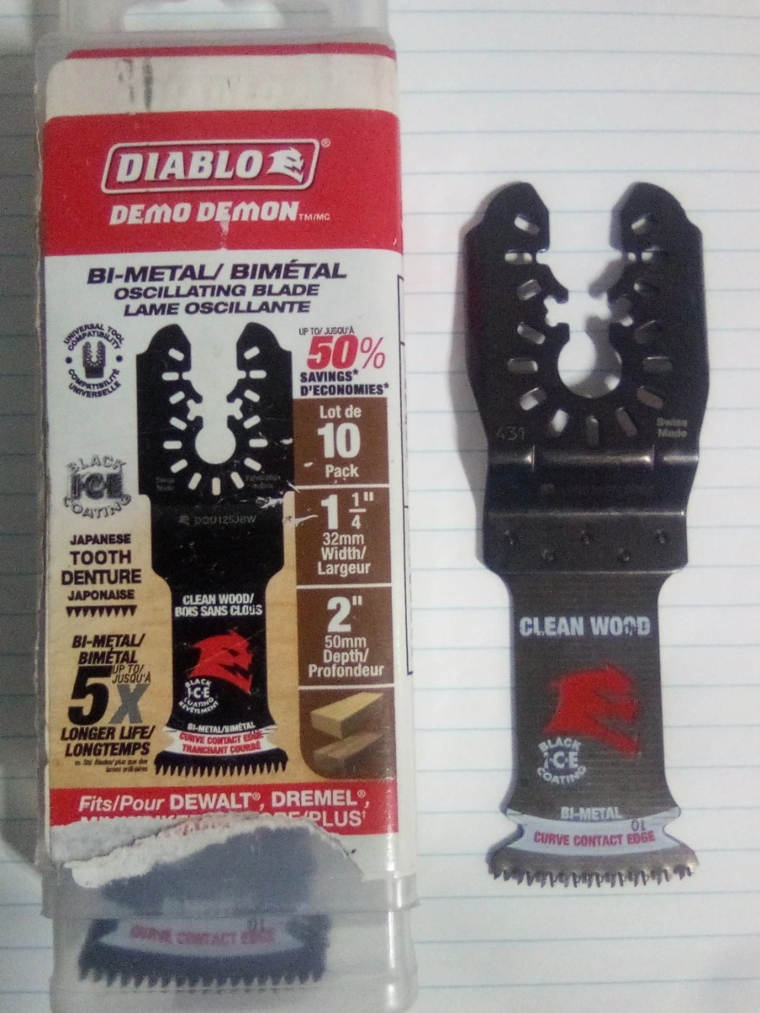 Selling a set of brand-new Diablo Demo Demon Bi-Metal Oscillating Blades for clean wood cuts. These blades feature an ultra-hardened cutting edge for up to 5x longer life and an optimized tooth design for fast, clean cuts. They also have a Black I.C.E. coating for heat resistance and superior chip evacuation. Universal fit design for cordless and corded oscillating multi-tools. The original packaging says they fit DeWalt, Dremel, and more. Comes with the original box, blade's are 1"-3/4 width and 2" depth originally paid $119.00 June/July make an offer