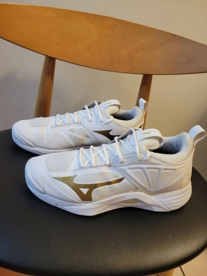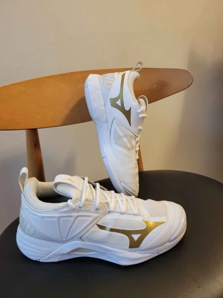 Mizuno Unisex Wave Dimension Volleyball Shoe white and gold design