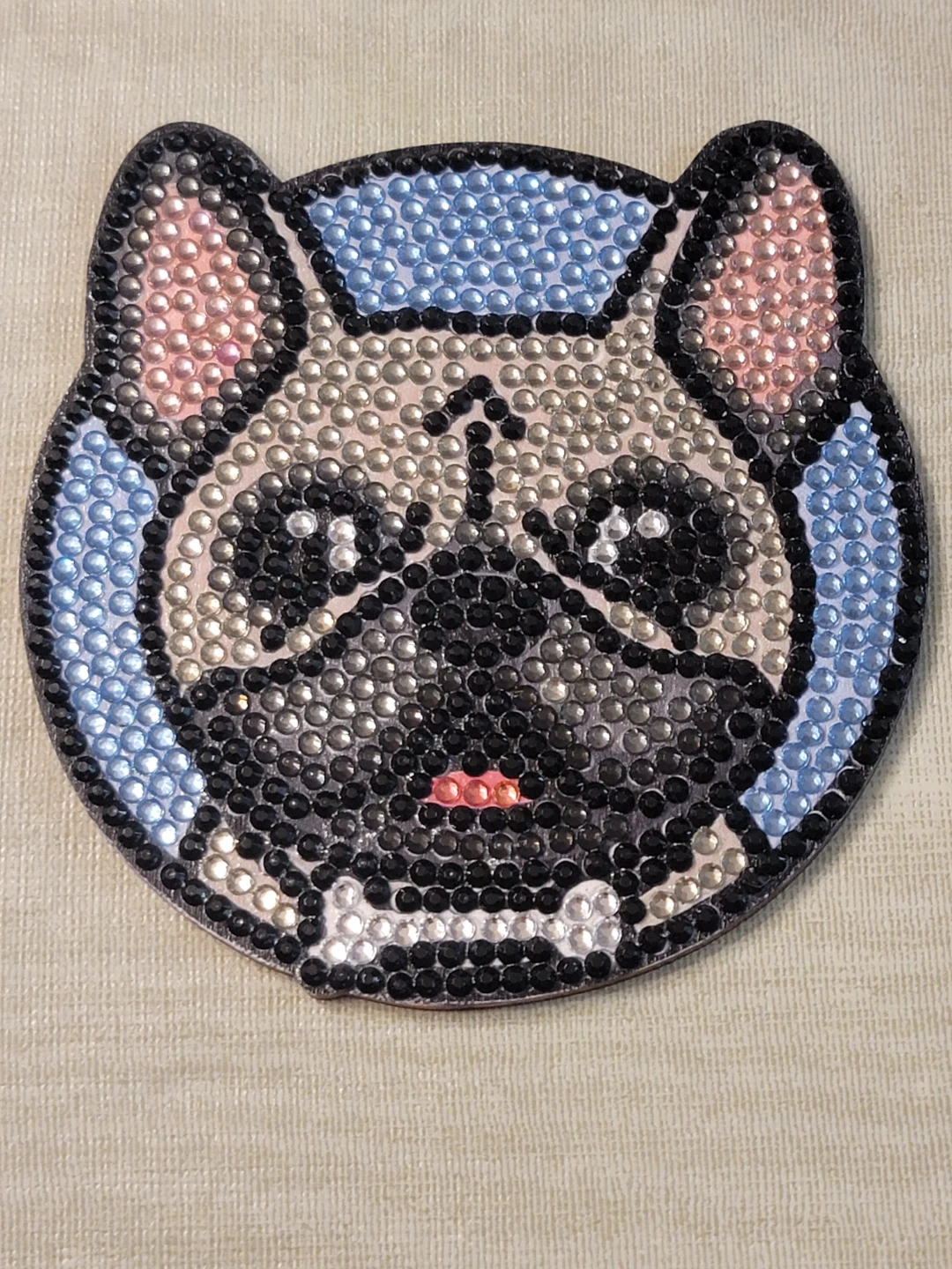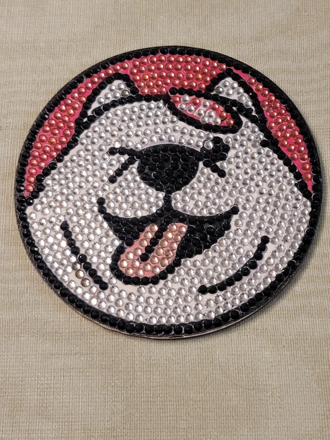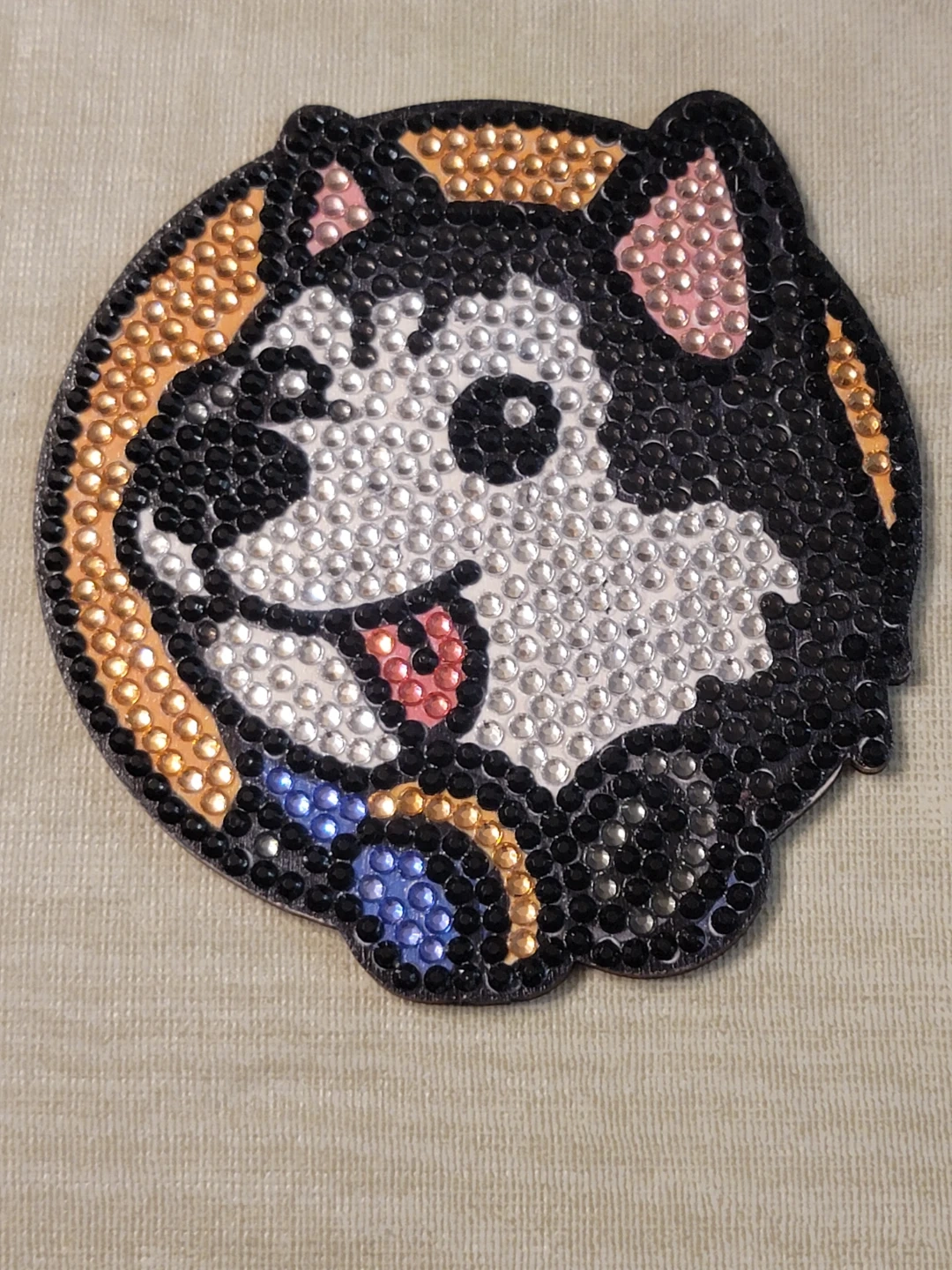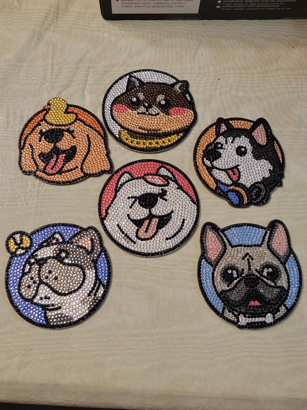 I have a set of adorable dog breed coasters. They are decorated with rhinestones and would be great for any dog lover! Price is for the set.
