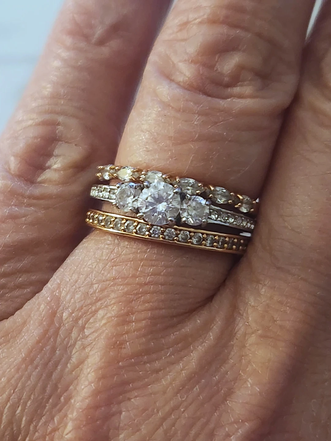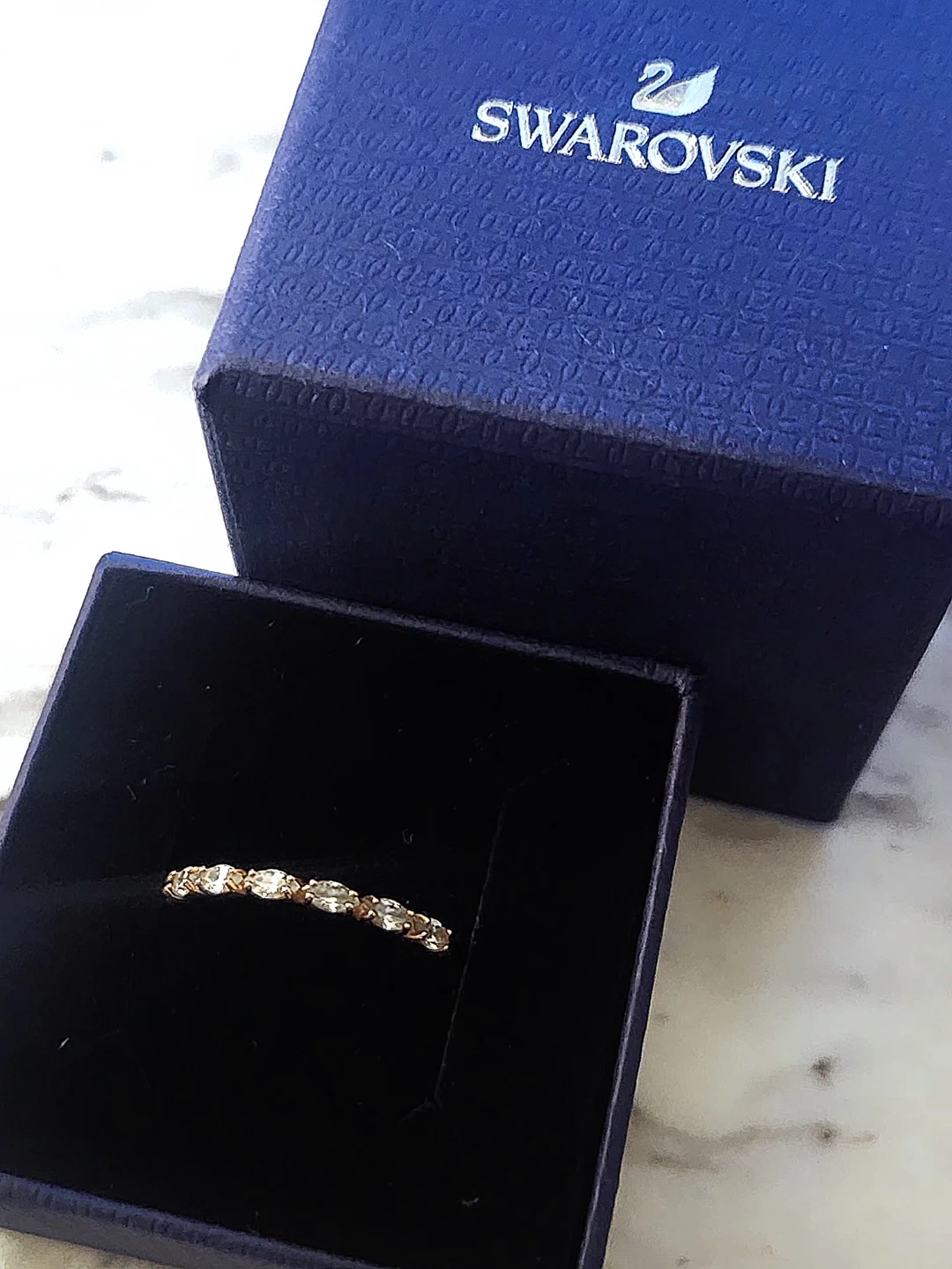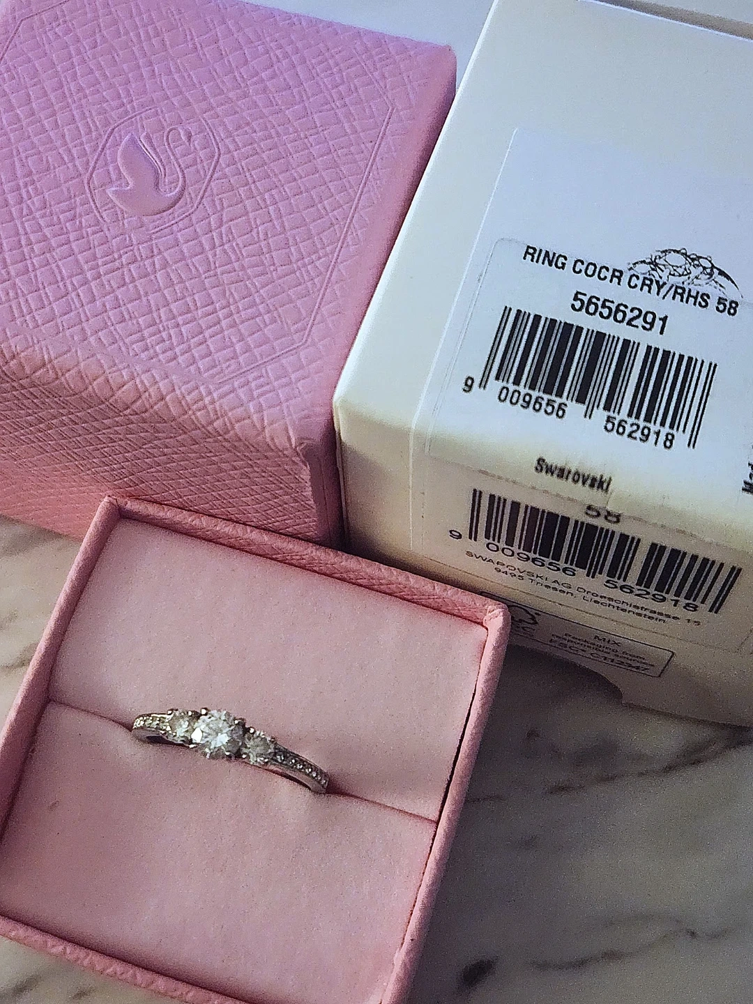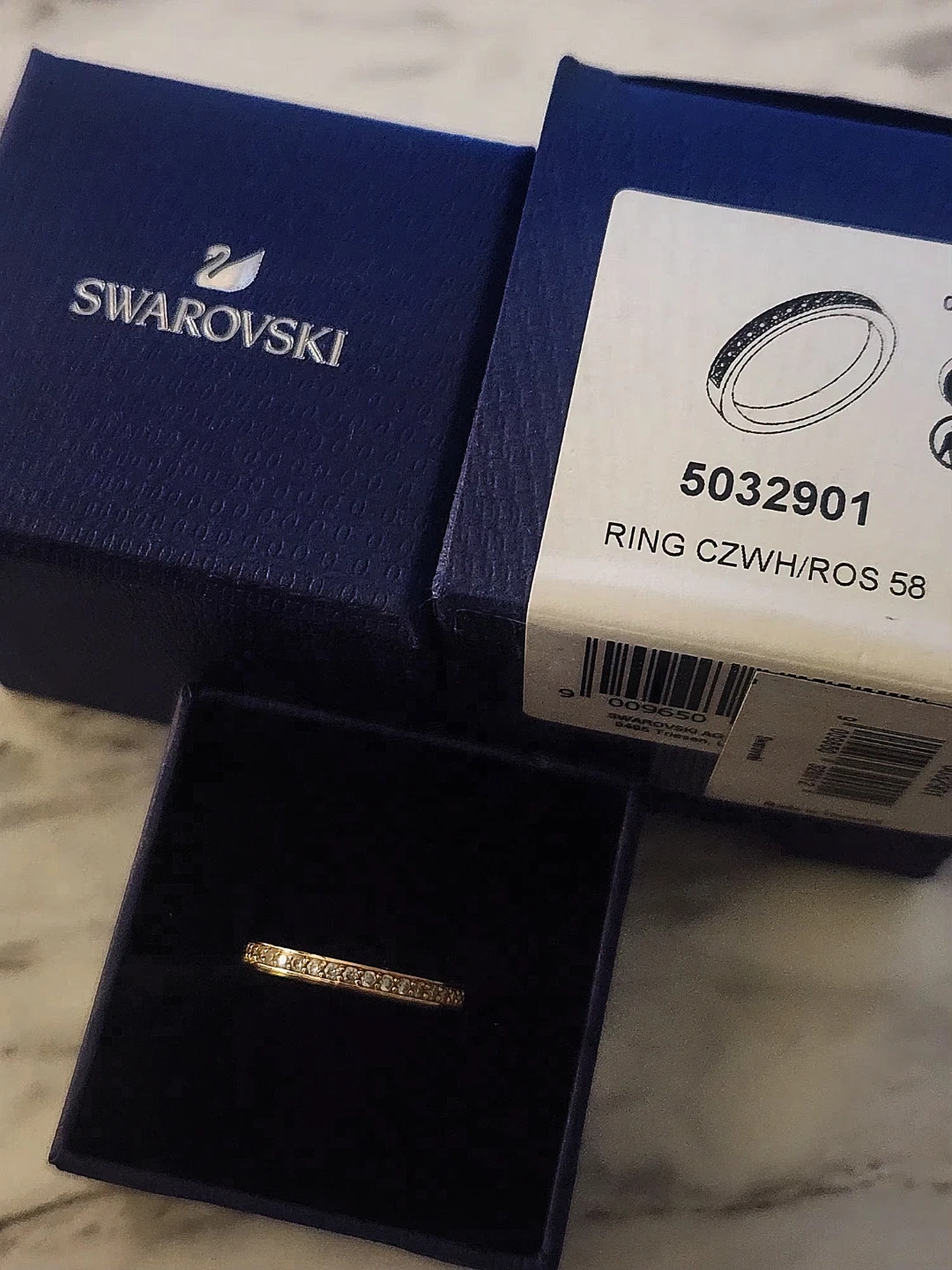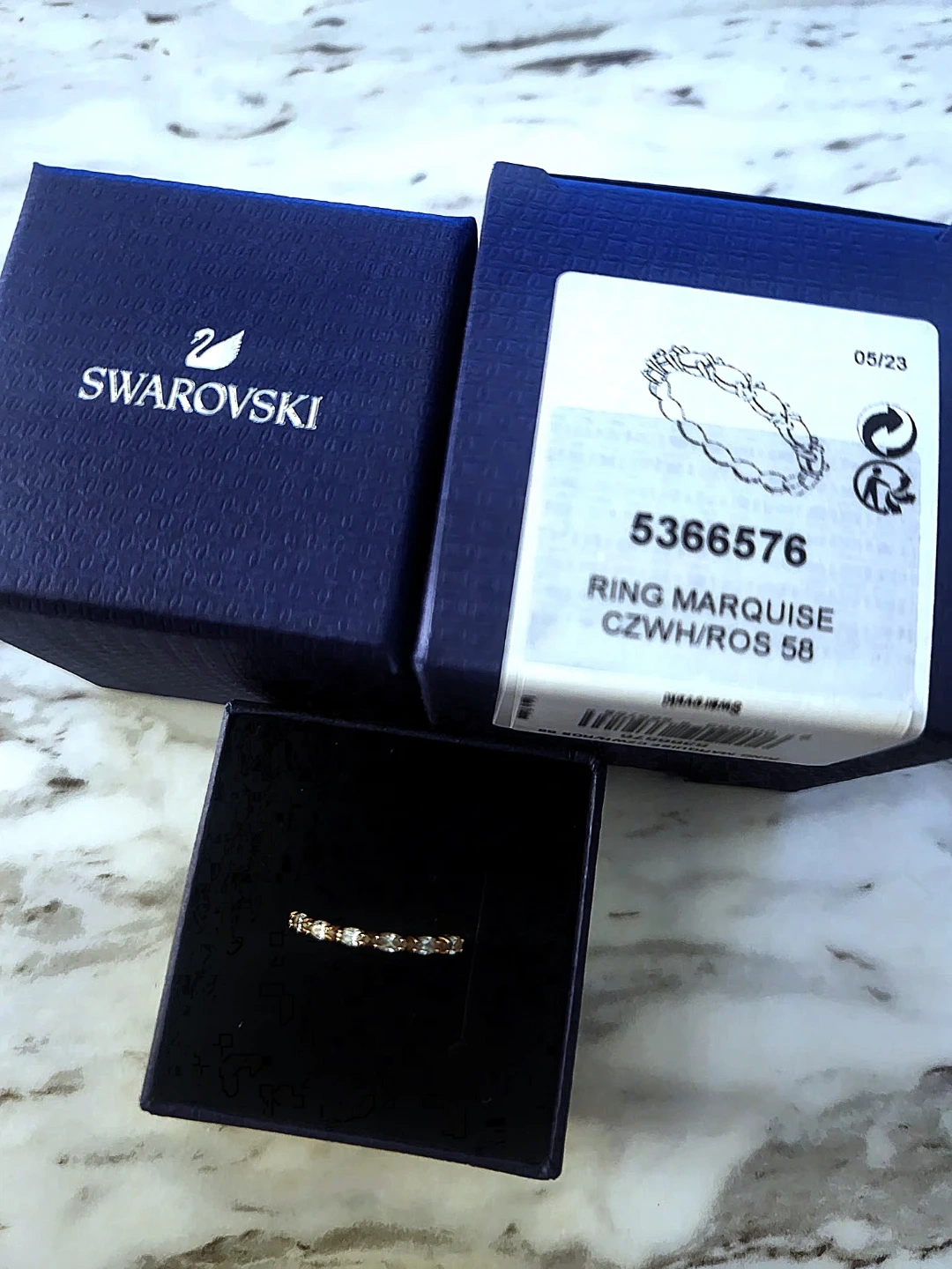Selling a set of 3 Swarovski Rings in size 58, like-new in box. Please see photos for model names. You can wear them separately, together as a trio, or with other rings. These retail for about $130 each. MY asking price of $200 is for ALL 3.