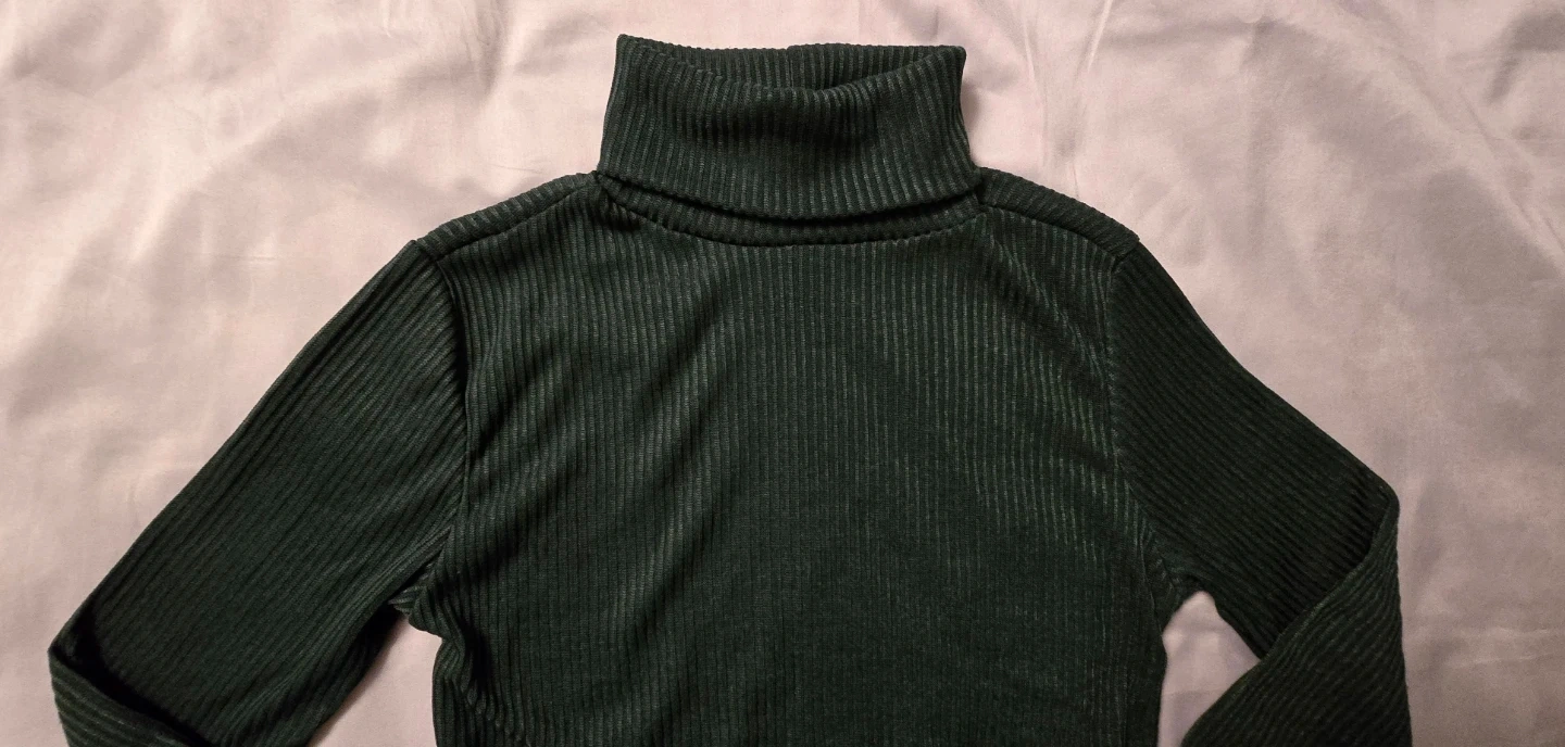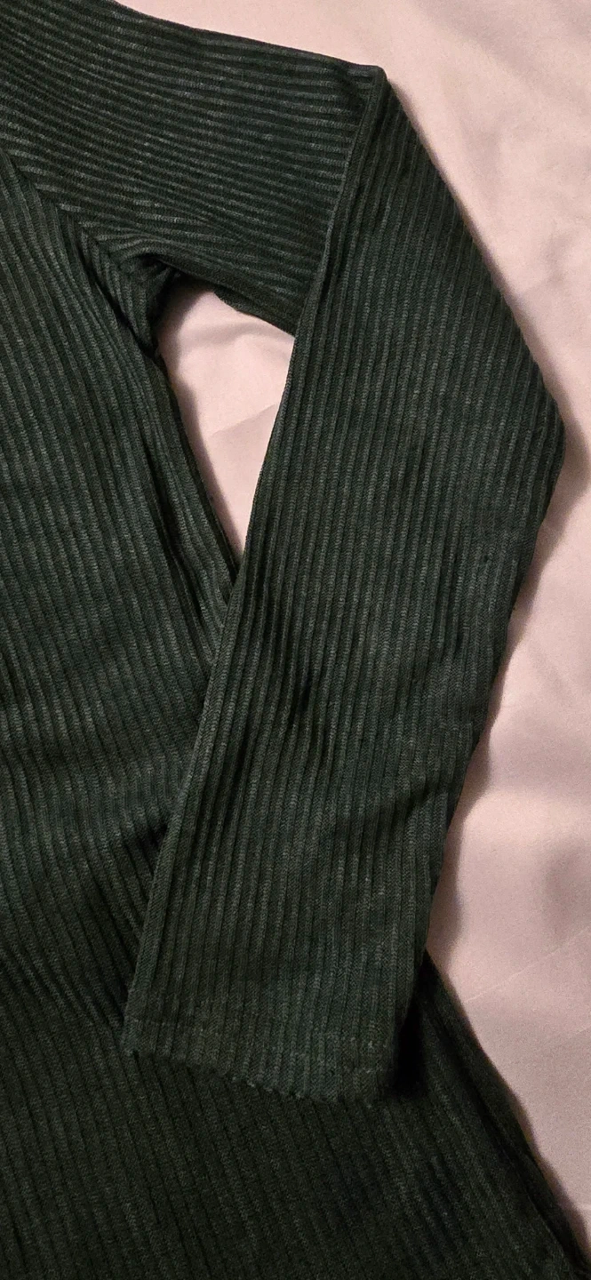 Selling a dressy dark green ribbed turtleneck top. It has a shimmer to it and it's in great condition... perfect for going out! The material is soft and comfortable, making it a cozy addition to your wardrobe! Can be worn around Christmas or St. Patrick's Day!