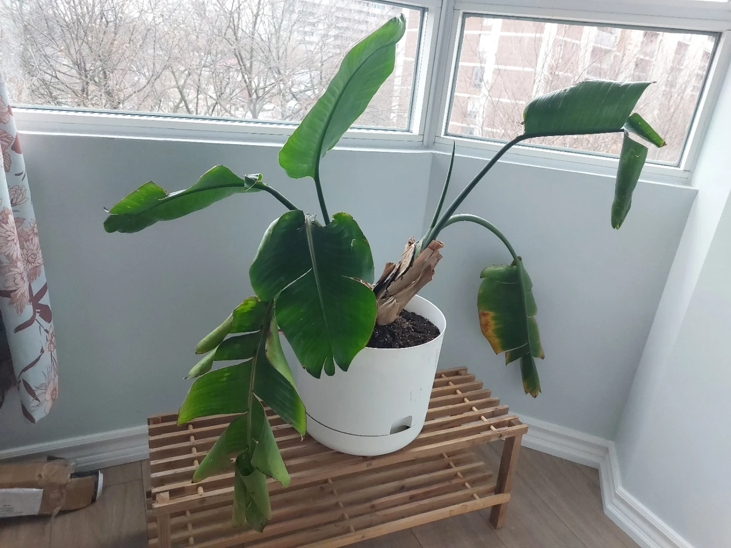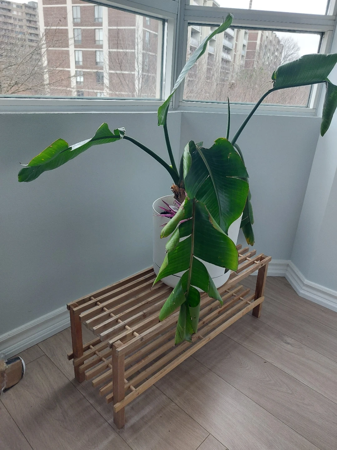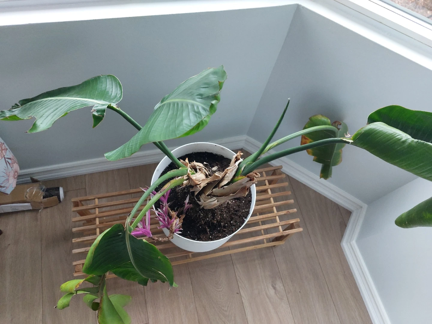 Just repotted Bird of Paradise plant needs a new home. Just unfurled a new leaf, but another one isn't doing too well. Tradescantia Rhoeo cutting just planted and included, but planter isn't. Will bag soil and all for buyer.