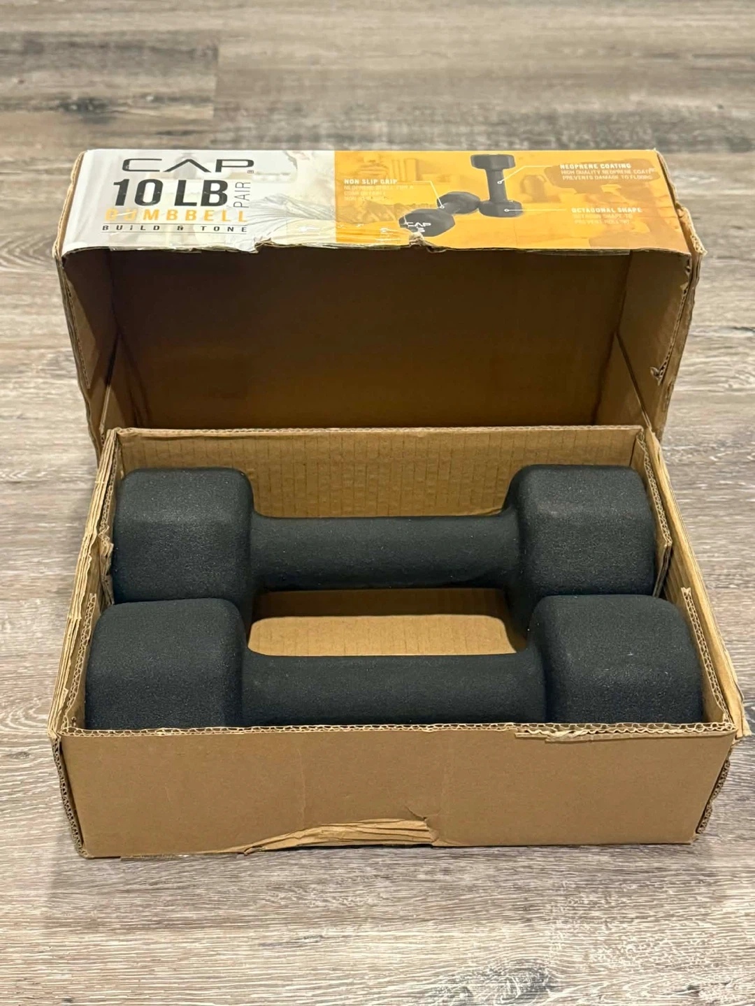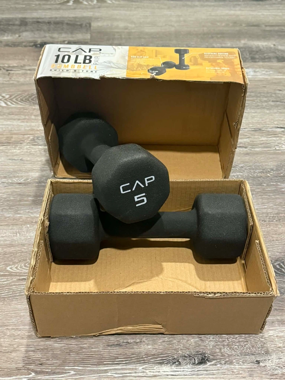 Selling a pair of CAP 10lb dumbbells, perfect for adding intensity to your workouts! They're in new unused condition and come in the original box. The neoprene coating provides a comfortable grip and prevents damage to floors. Great for sculpting and toning your body!