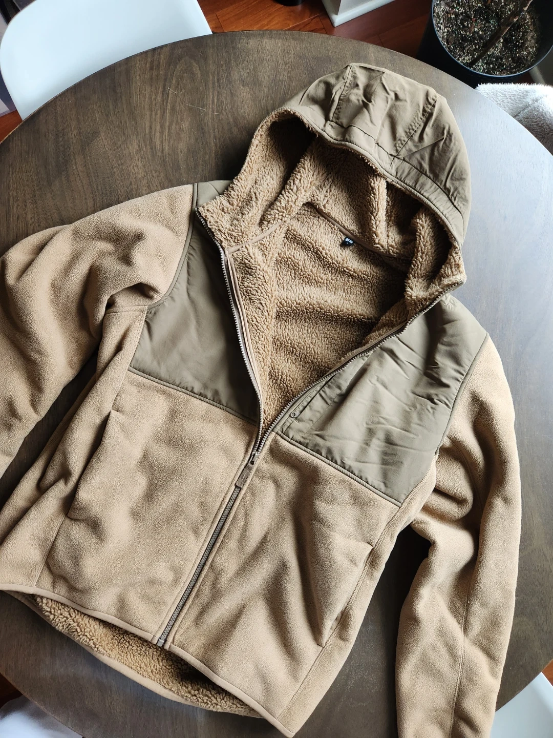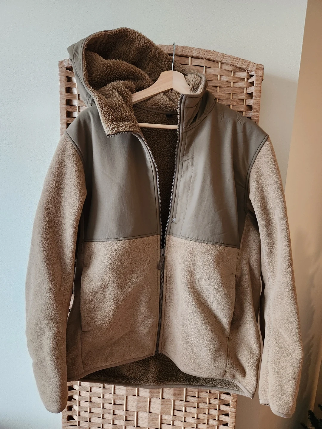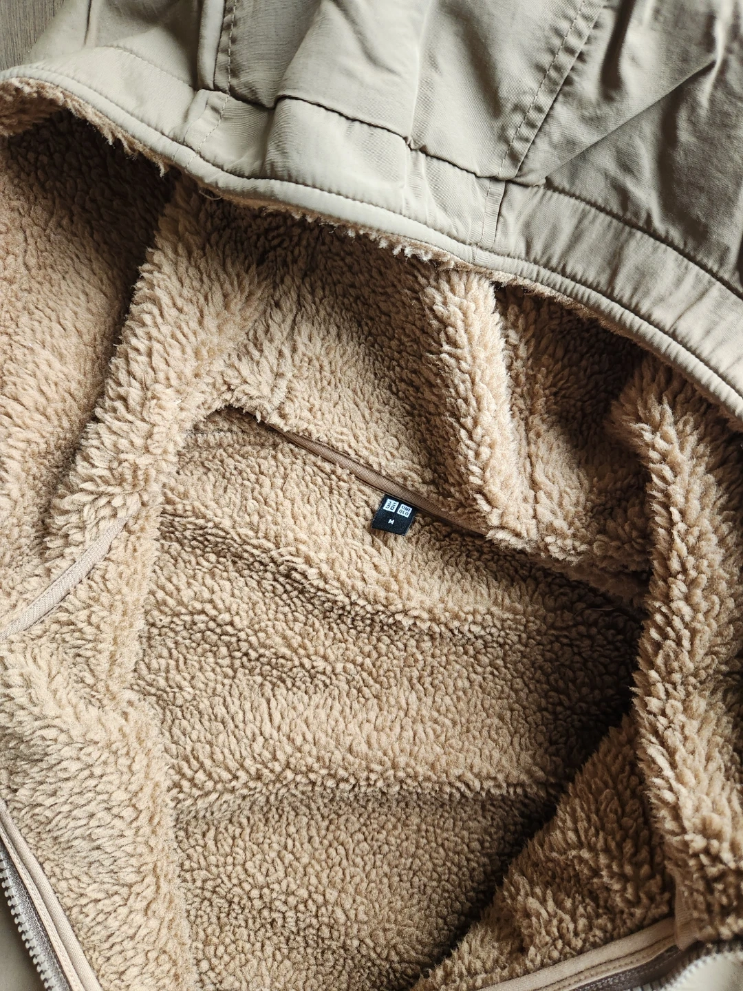 Cozy up in this Uniqlo fleece-lined hoodie! It's a size medium and features a full zip. The neutral colour is perfect for layering and keeping warm on chilly days. It is in excellent condition and ready for a new owner!