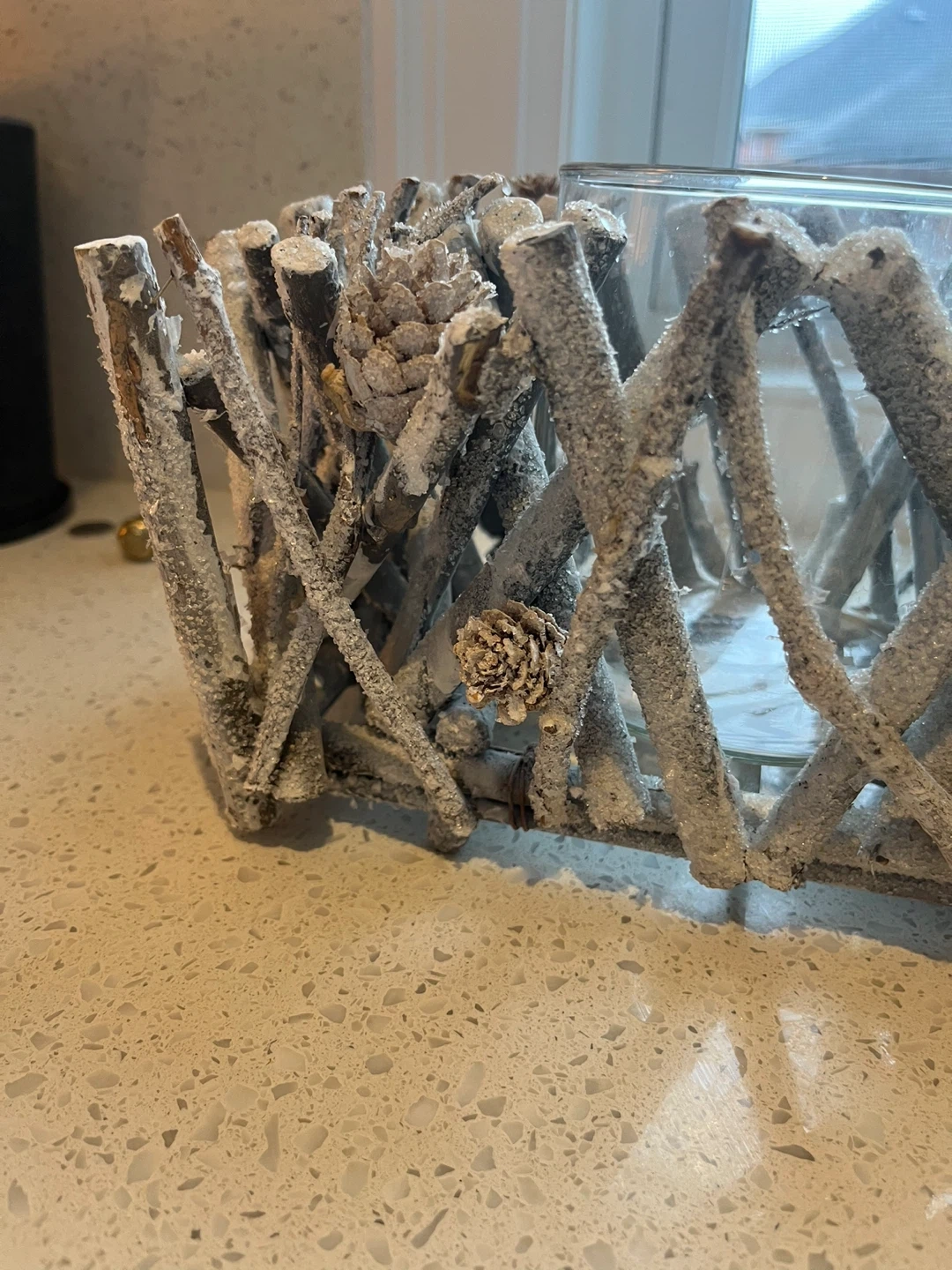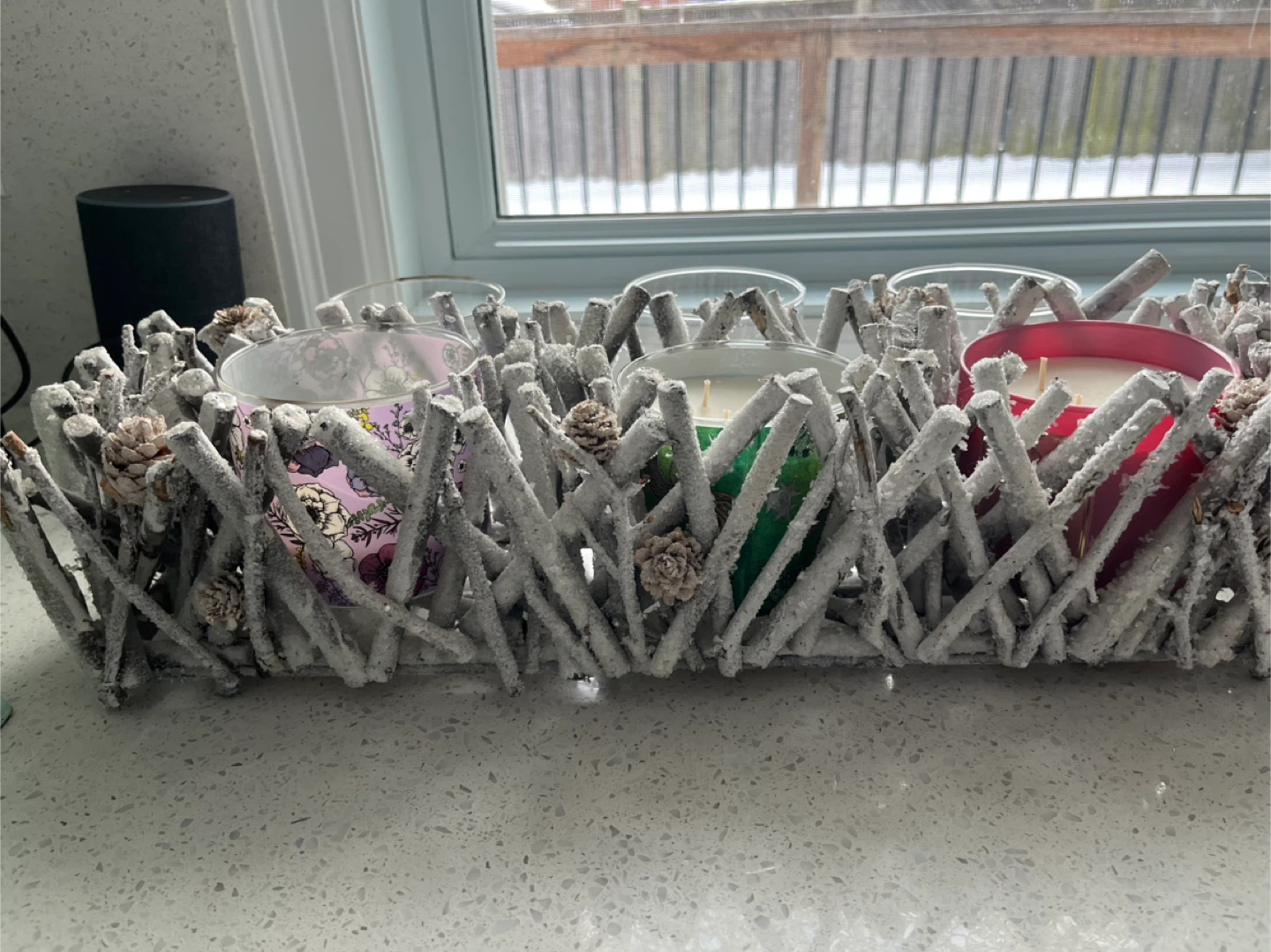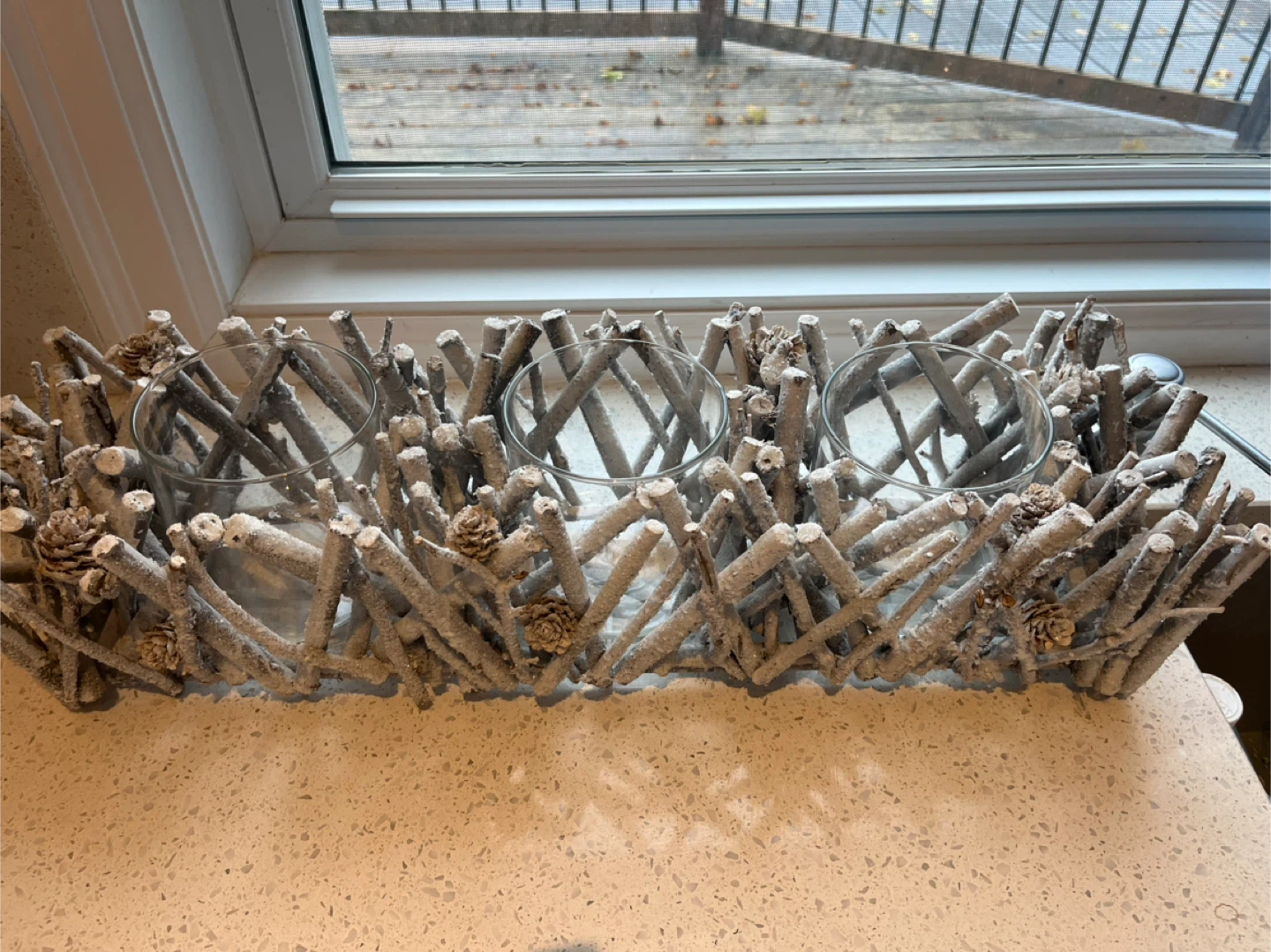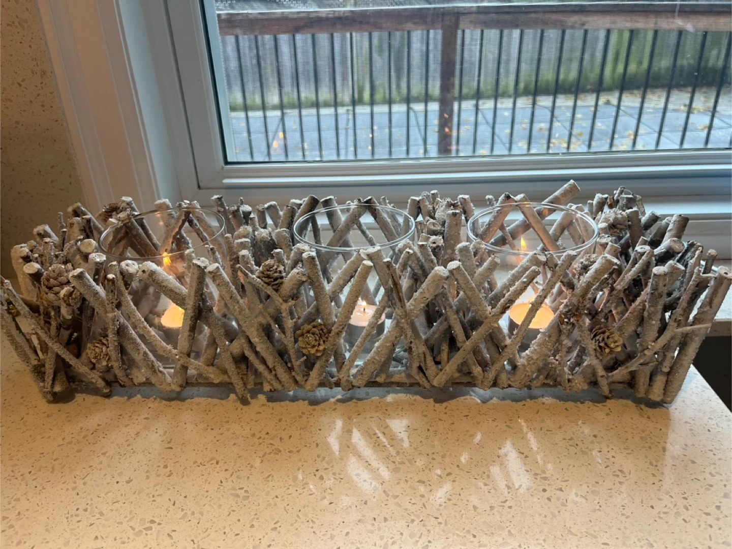 This is a large rustic candle holder. Great for mantle or centrepiece .