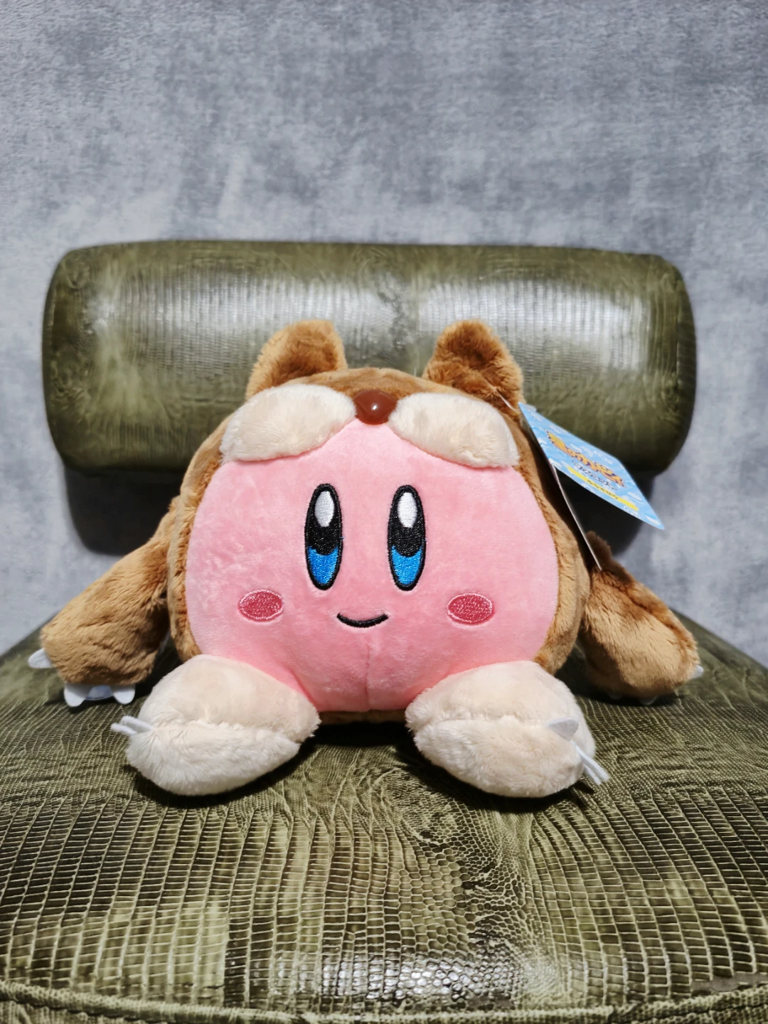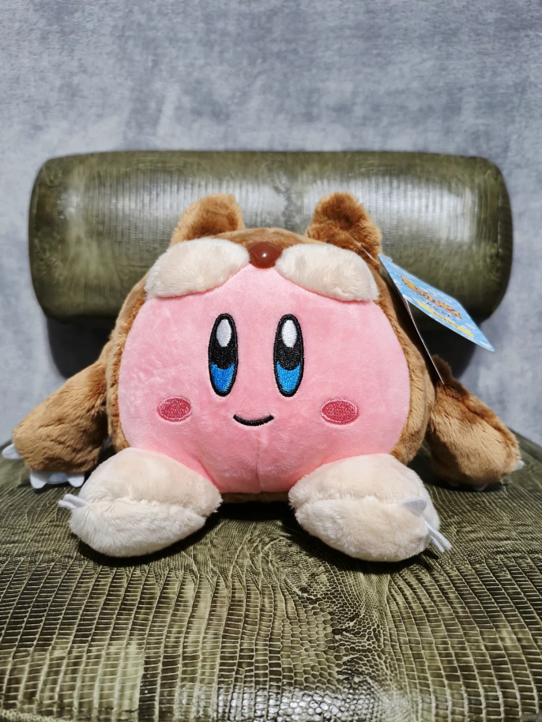 This plush is super soft and cuddly, perfect for Kirby fans of all ages. It features a pink face with brown accents and adorable details.