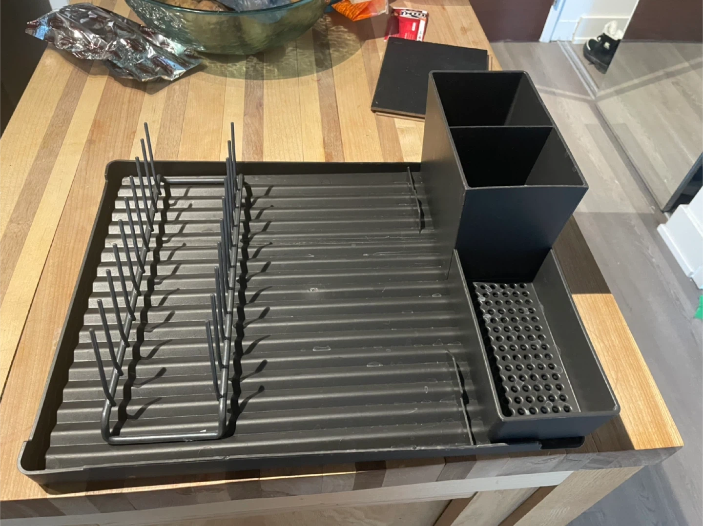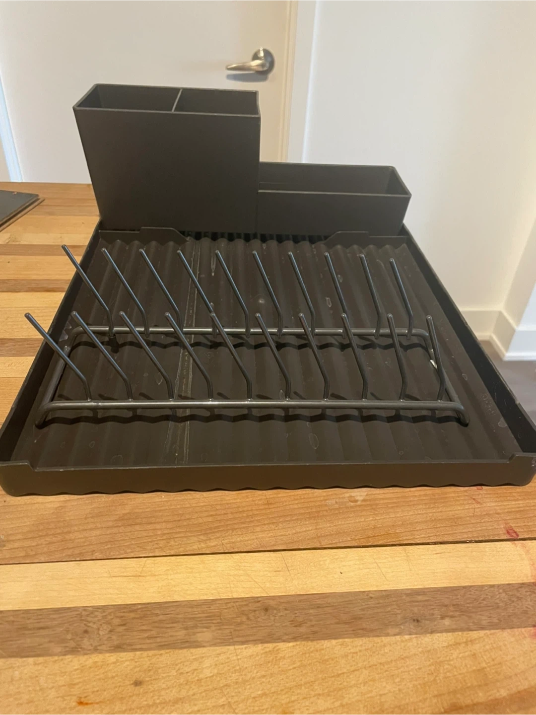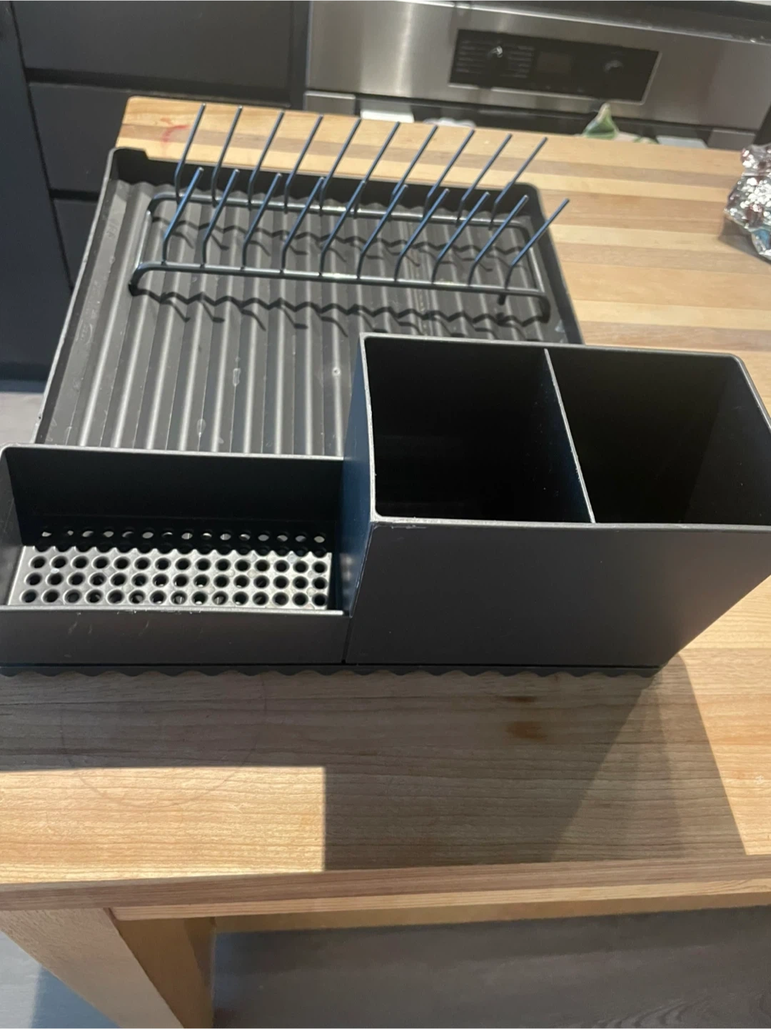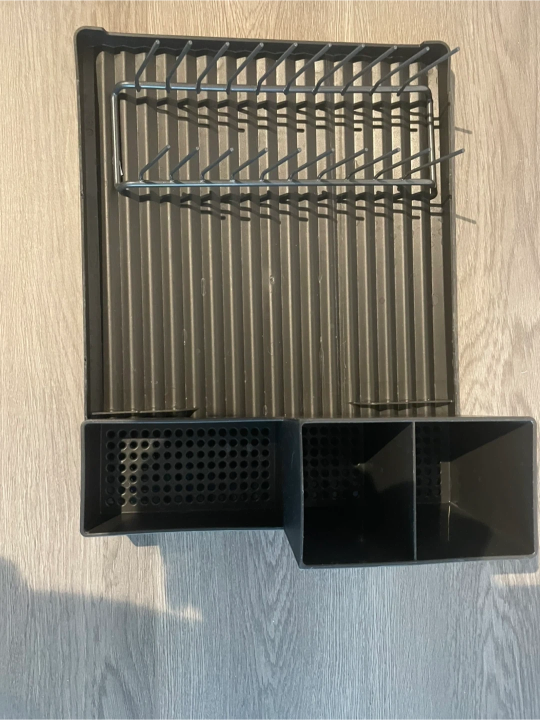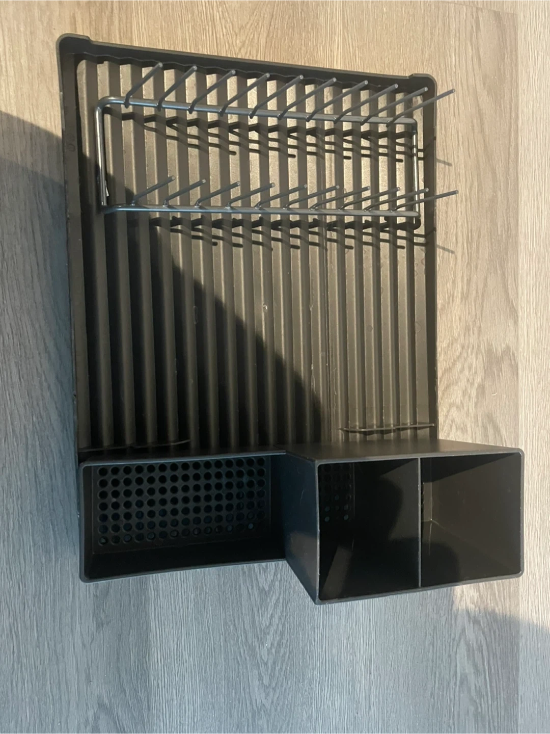 Selling a black dish drying rack. It's in great condition and ready for a new kitchen! Perfect for keeping your dishes organized and dry. Size : 15” x 12”