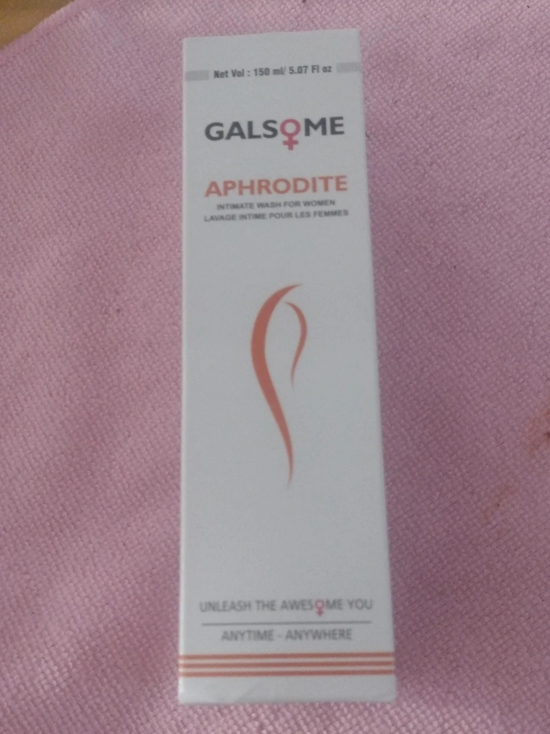 Selling a bottle of Galsome Aphrodite intimate wash for women. It contains 150 ml / 5.07 fl oz. It is designed to help you "Unleash the awesome you anytime - anywhere"