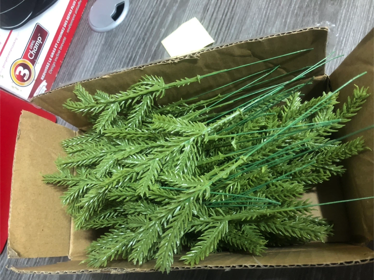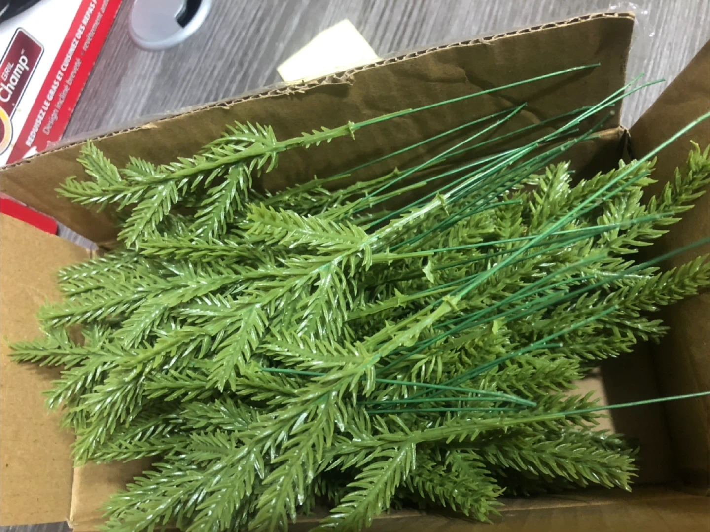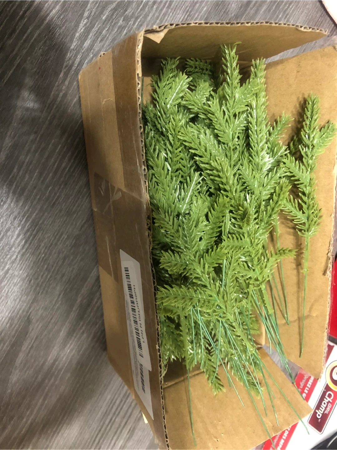 Selling a 50 pieces of artificial pine stems! They're perfect for adding a festive touch to your Christmas decorations. They come in a box, ready for your creative projects!